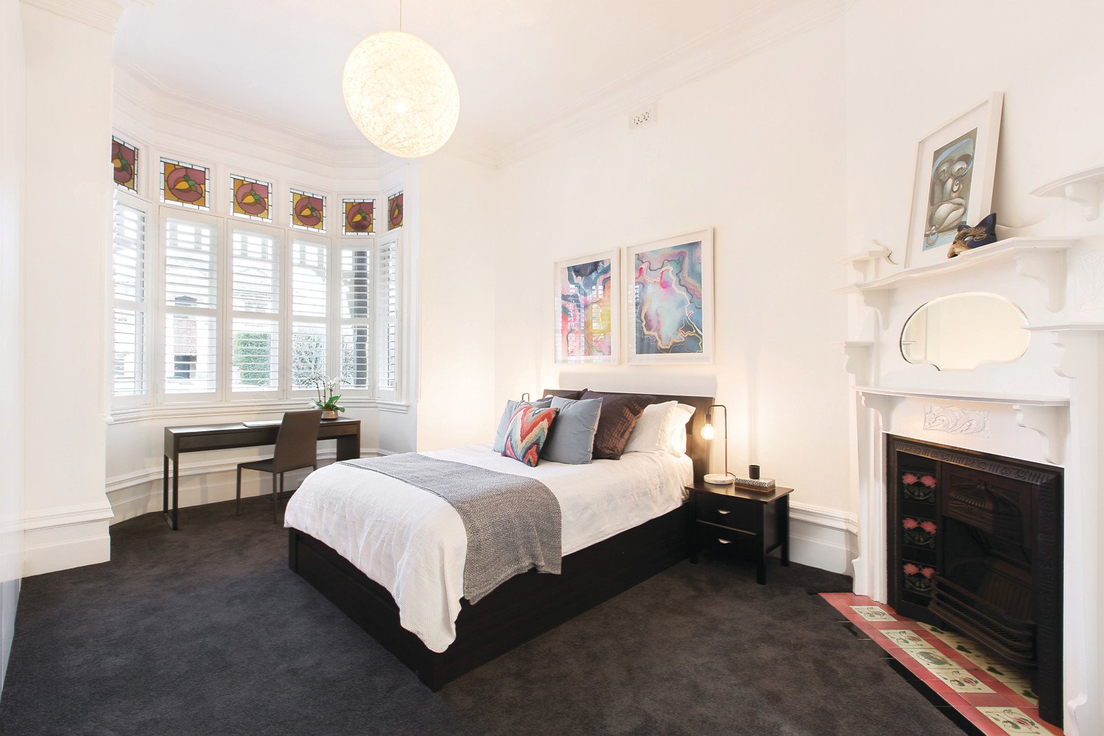 Elaborate 3.6m ceilings, Baltic pine floors and decorative fretwork feature through the extra wide entrance hall, which introduces the beautiful main bedroom appointed with a bay window, plantation shutters, an ornate fireplace, generous built in robes and a chic designer en-suite.