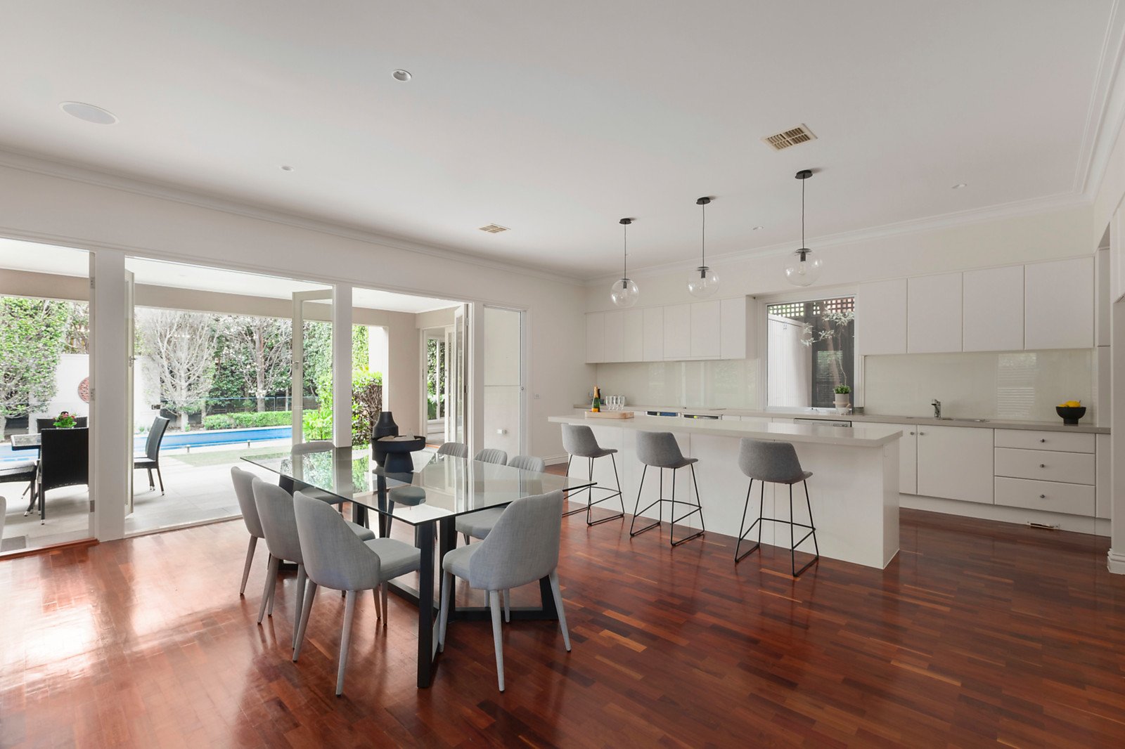 Impressive from every angle, this refined contemporary residence's stunning interior dimensions and magnificent garden and pool surrounds deliver the ultimate family environment, whether entertaining indoors or out, working from home or just relaxing.