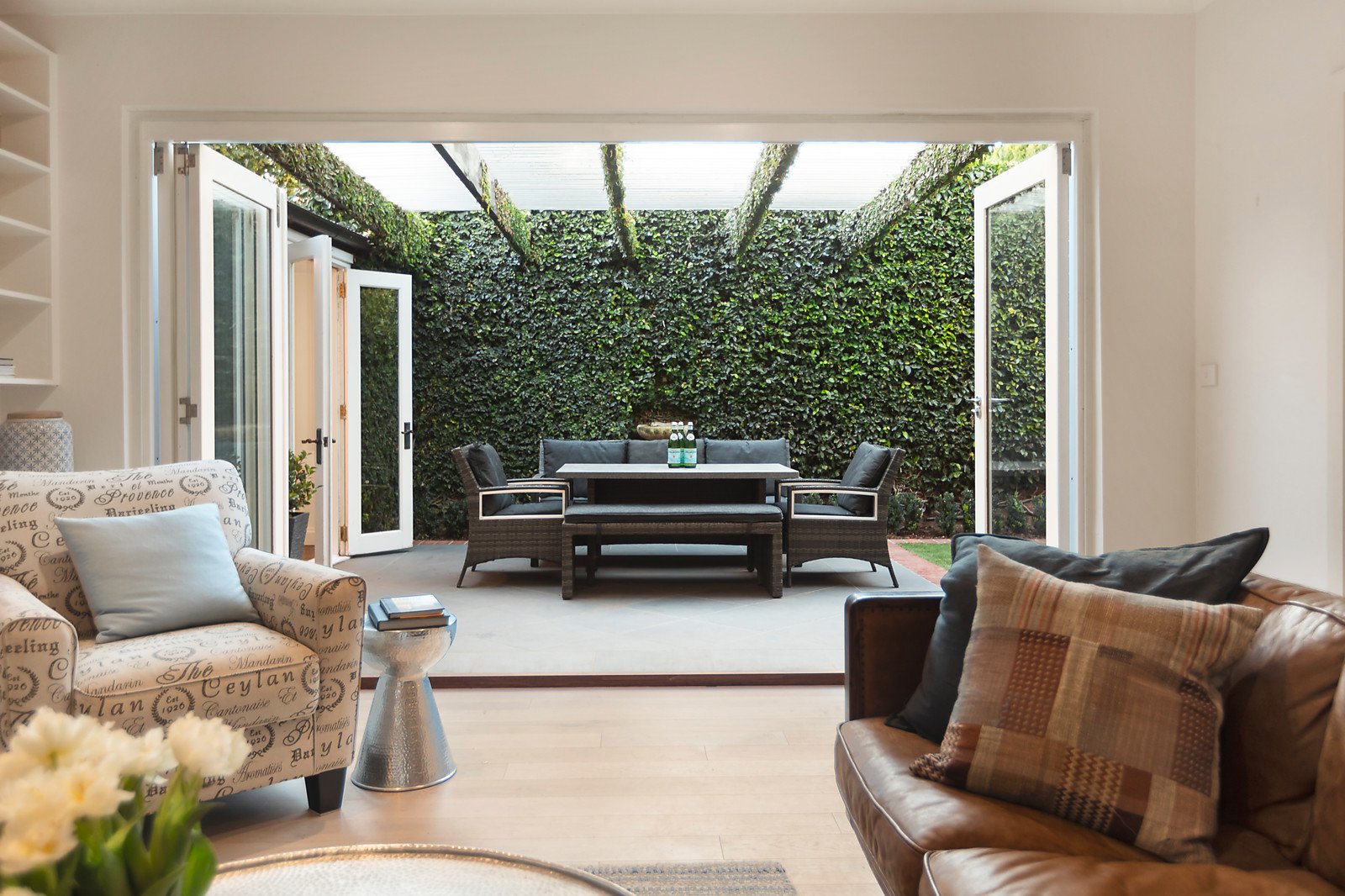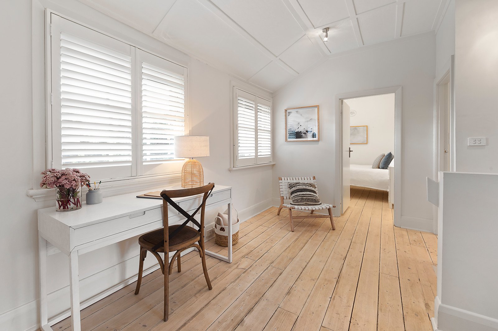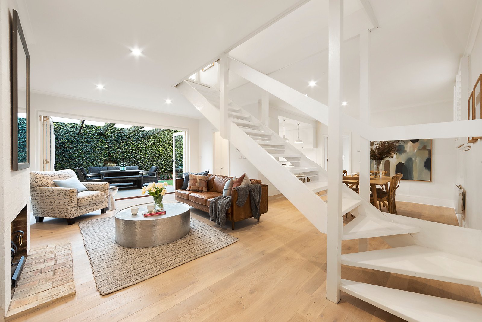 Limed oak floors and an abundance of natural light establish an instantly inviting ambience through the generous living and dining areas with an open fire and a separate gourmet kitchen appointed with stone benches. The living spaces open to an entirely private northwest garden oasis with a fabulous covered terrace and a freestanding studio/home office. The limed timber floors and plantation shutters continue through the sublime main bedroom with chic en suite and built in robe, a second bedroom with built in robe, a retreat and stylish bathroom.