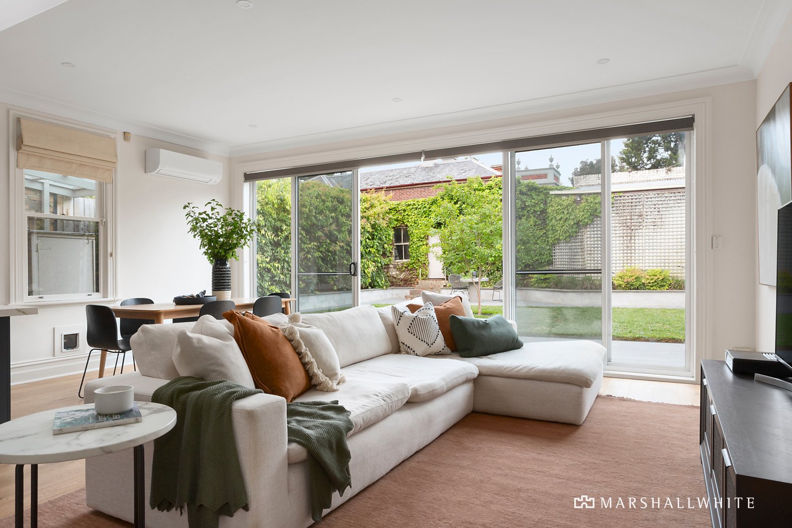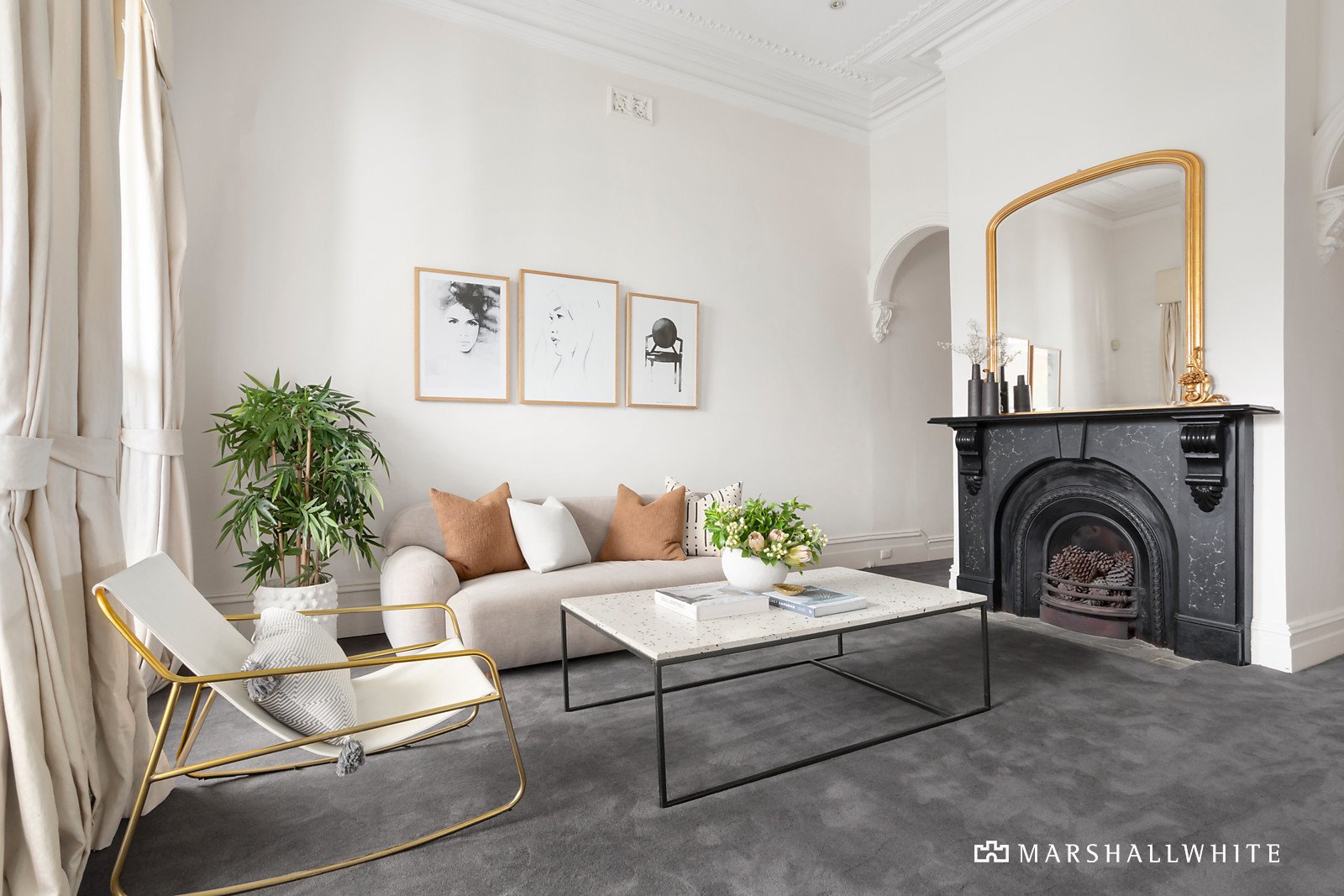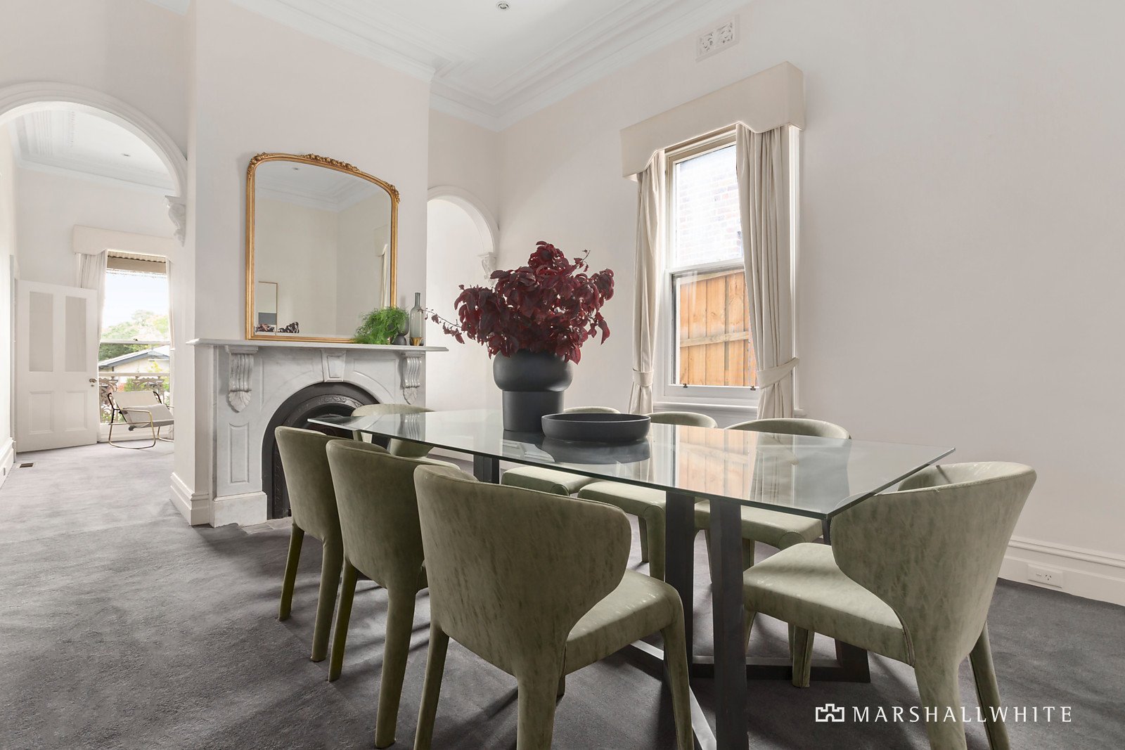 A glorious arched hallway featuring traditional high ceilings and refined oak floors introduces a gracious sitting room with open fire and a beautiful formal dining room with marble fireplace. Bathed in northern light, the expansive open plan living and dining room is served by a gourmet kitchen appointed with a premium Wolf oven, porcelain benches and a walk in pantry. Glass sliders extend the living out to a completely private leafy north-facing garden oasis with extensive bluestone paving and an undercover area. Two gorgeous double bedrooms with marble fireplaces and a stylish bathroom accompany the main bedroom with robes and an en suite.