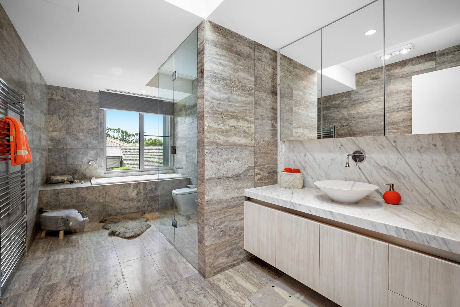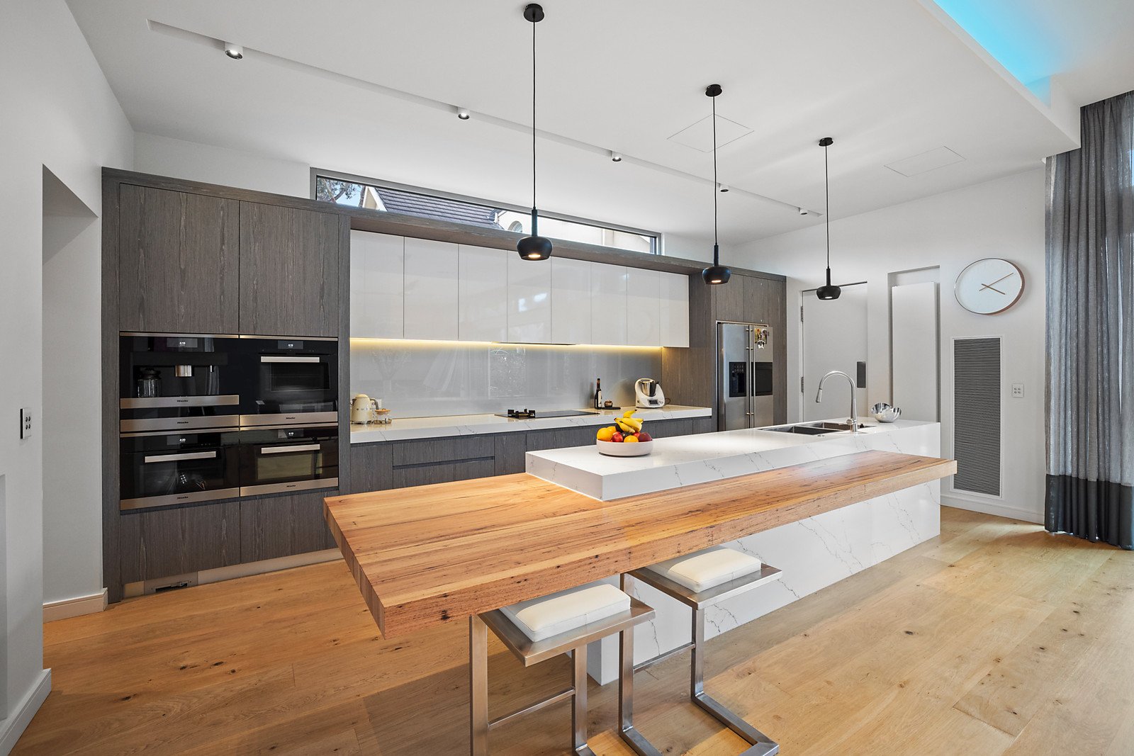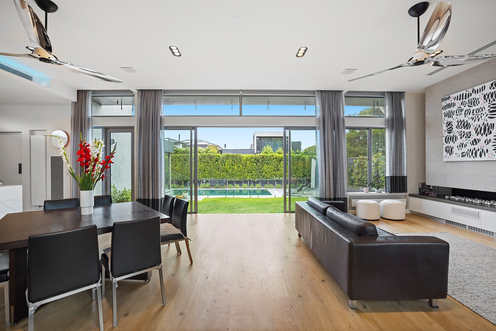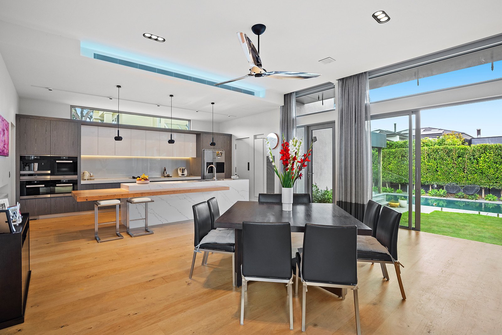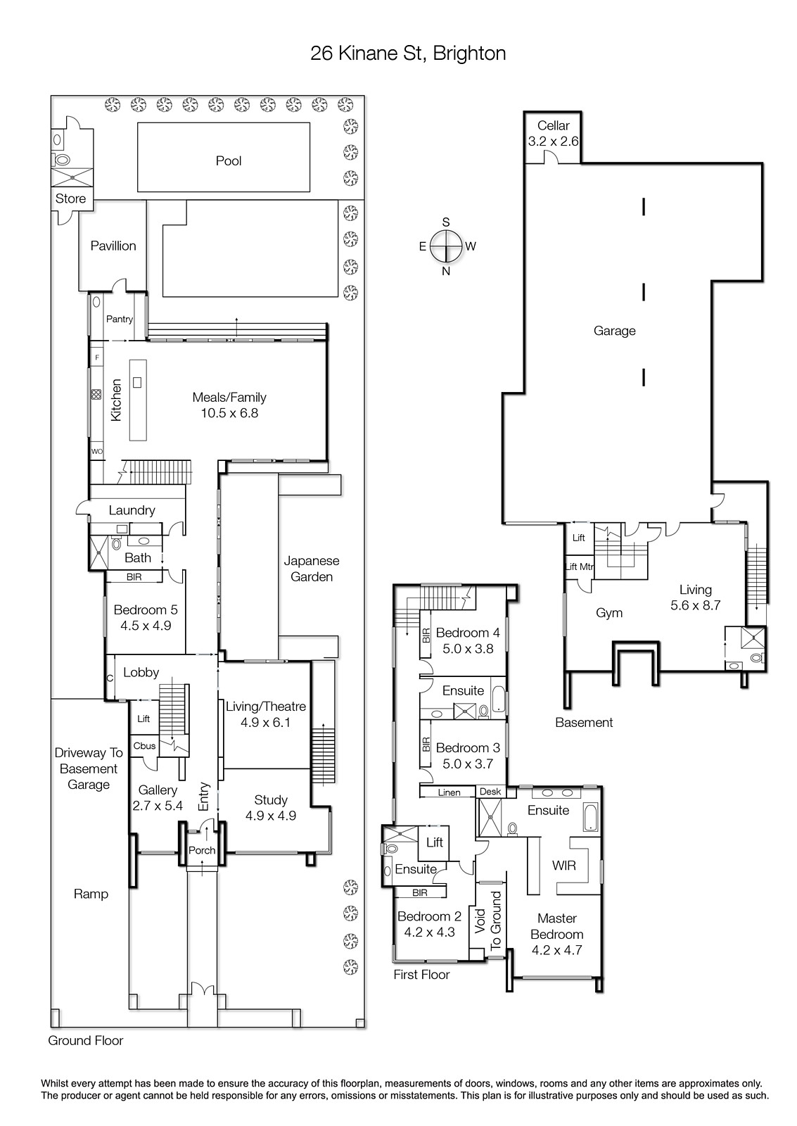 State-of-the-art luxury on a grand scale has created one of Brighton's most impressive homes, with three levels of exclusive style and the finest quality. Like-new and impeccably designed to the highest engineering standards, this builder's own home is magnificent with three oversized living zones, five bedrooms and a study, six premium bathrooms, an eight-car basement garage and gym, and resort-inspired gardens and a pool. The fitout is extraordinary and the refined interior design is sophisticated whilst being inviting. Living here is effortless thanks to the inclusion of a lift, app-operated home automation, self-cleaning windows, and a double-height entry foyer with a thermochromic glass roof. The heart of this home is a huge family room, perfect for entertaining and everyday enjoyment of beautiful garden views, a gas pebble fireplace, granite feature wall and stacking sliding doors on two walls. Everything you want in a gourmet kitchen and butler's pantry is here, with three Miele ovens and an integrated coffee machine, Asko induction and gas cooktop, and a home workstation. The parents' retreat is magnificent with a huge ensuite and dressing room, and all bathrooms are beautifully finished with marble, travertine and or limestone. The land of 956 square metres (approx) has allowed for the creation of a calming water garden, a mosaic-tiled pool, fan-cooled outdoor room and adjacent bathroom. Store your car collection in the huge basement garage, and love having a basement games room, wine cellar and storerooms. Exacting planning has included two suspended slabs, garbage and laundry chutes, hydronic heating and ducted air conditioning, surround-sound speakers and security cameras. There's even a ceiling-mounted Gessi tap in the ground-floor bathroom, precision-installed for splash-free use. Kinane Street has the beach at the top of the street, there's a choice of schools close by, and Church Street and Were Street Village shops are moments away.