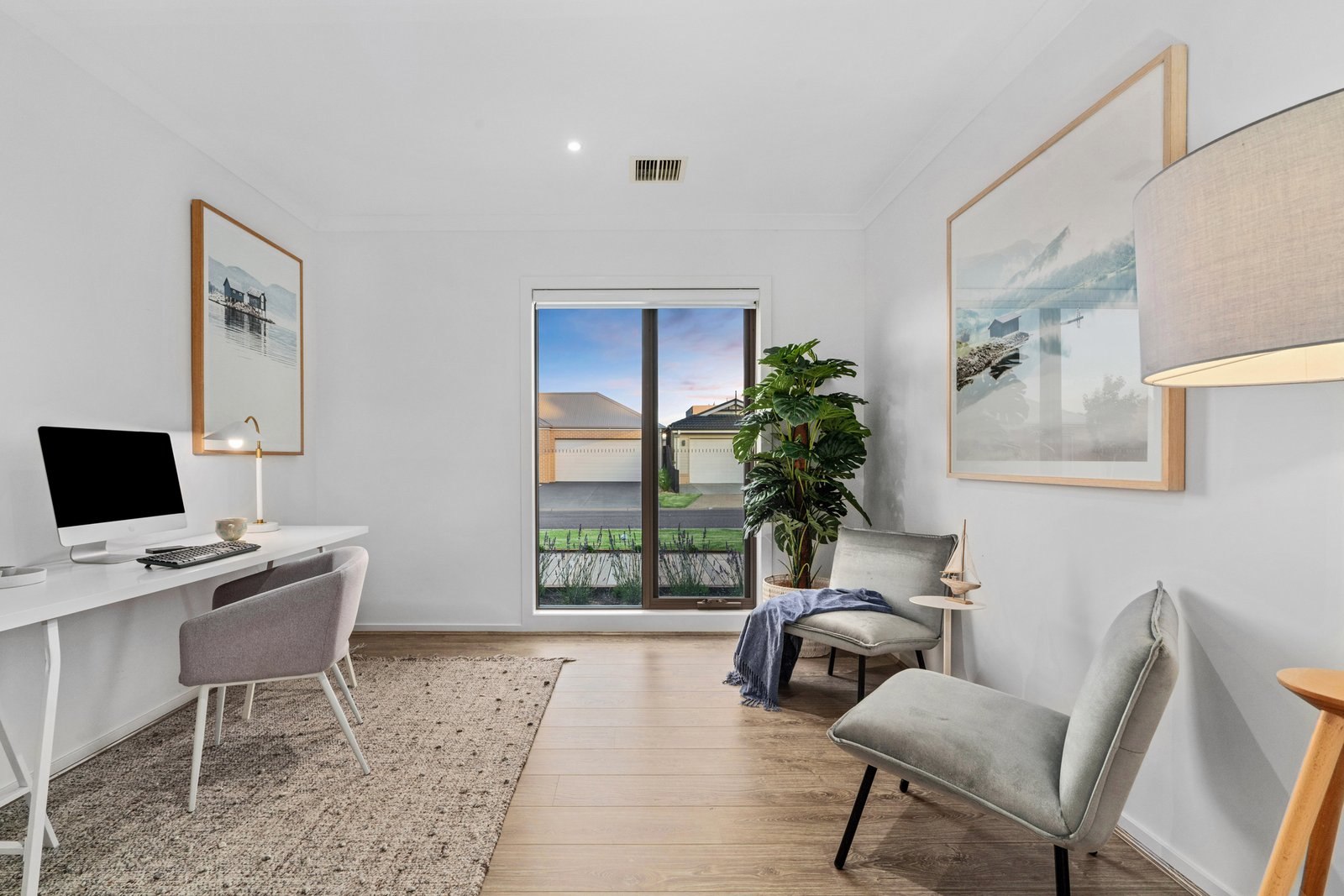 Gracing a 468 square metre (approx.) corner block, the double-storey custom-designed residence by Arden Homes is oriented to enjoy upper-level outlooks of the surrounding Peninsula peaks. Near-new in presentation, the 2015-built home features timber-laminate flooring in a beachy oak finish that flows through the northerly facing ground-level open-plan living space. Glass sliding doors open out to a private undercover alfresco dining and barbecue area, surrounded by lawns that wrap around to the front entrance deck. Defined by a long stone island bench with a diner section, the gleaming kitchen has Smeg appliances including a free-standing gas/electric cooker, all soft-close cabinetry and is complemented by a large walk-in pantry. Downstairs has a good-size study/home office and the spacious fifth bedroom which could also double as a theatre room or additional living space. A large laundry with external access, a powder room, and the access door to the double remote-operated garage complete the ground floor layout With sumptuous carpet underfoot, the upstairs rooms comprises a large living area, three bedrooms with built-in robes, the main bathroom with built-in tub, walk-in shower and stone vanities, plus a separate powder room, and the main bedroom suite with a walk-through mirrored-door robe and luxe ensuite with twin vanities and dual head walk-in shower.
