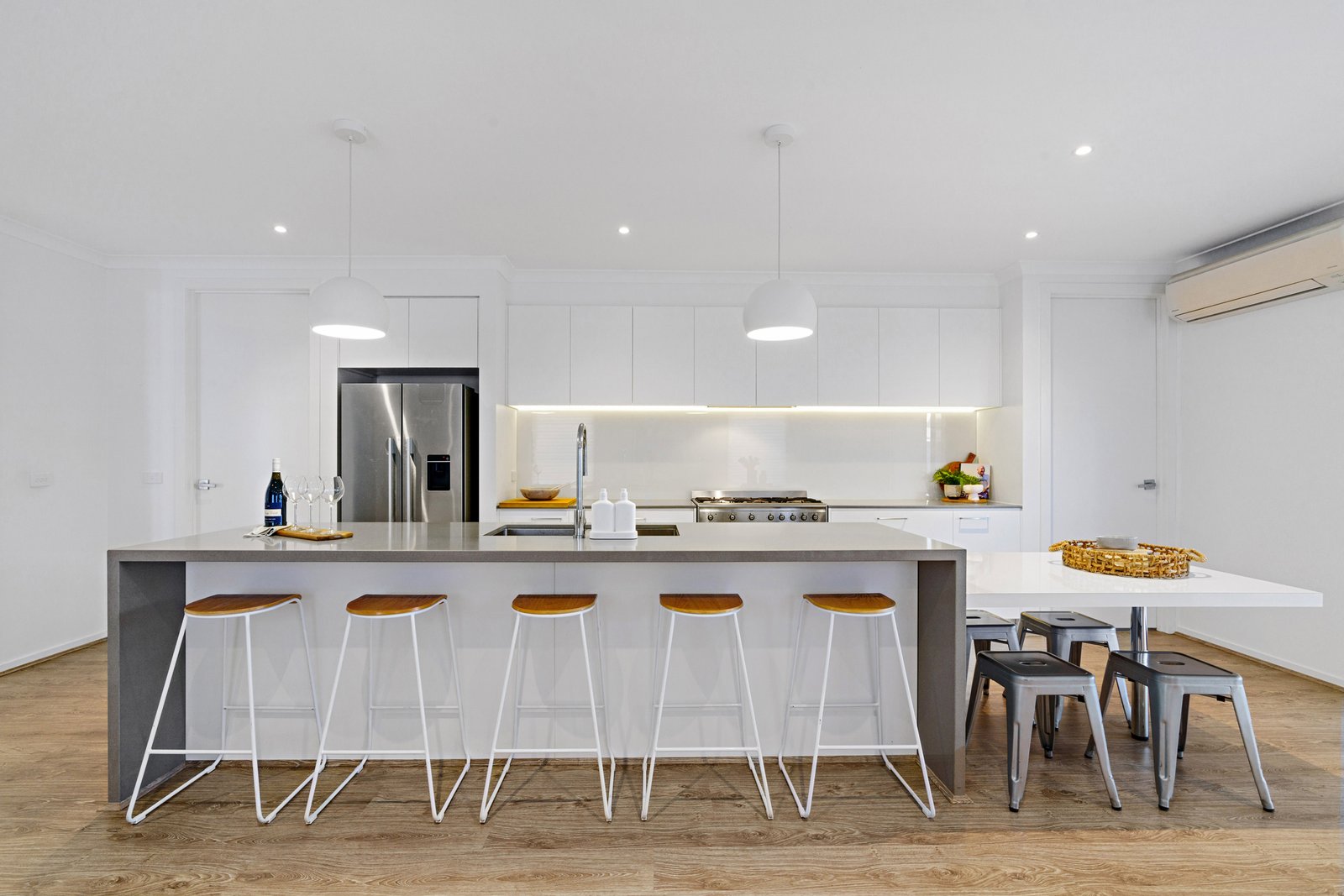 Idyllically located in tranquil seaside pocket bounded by Arthurs Seat and Mount Martha with the crystal clear waters of Safety Beach just moments away, this five-bedroom contemporary home is rich in coastal style and perfect for relaxed family living or holidaying.