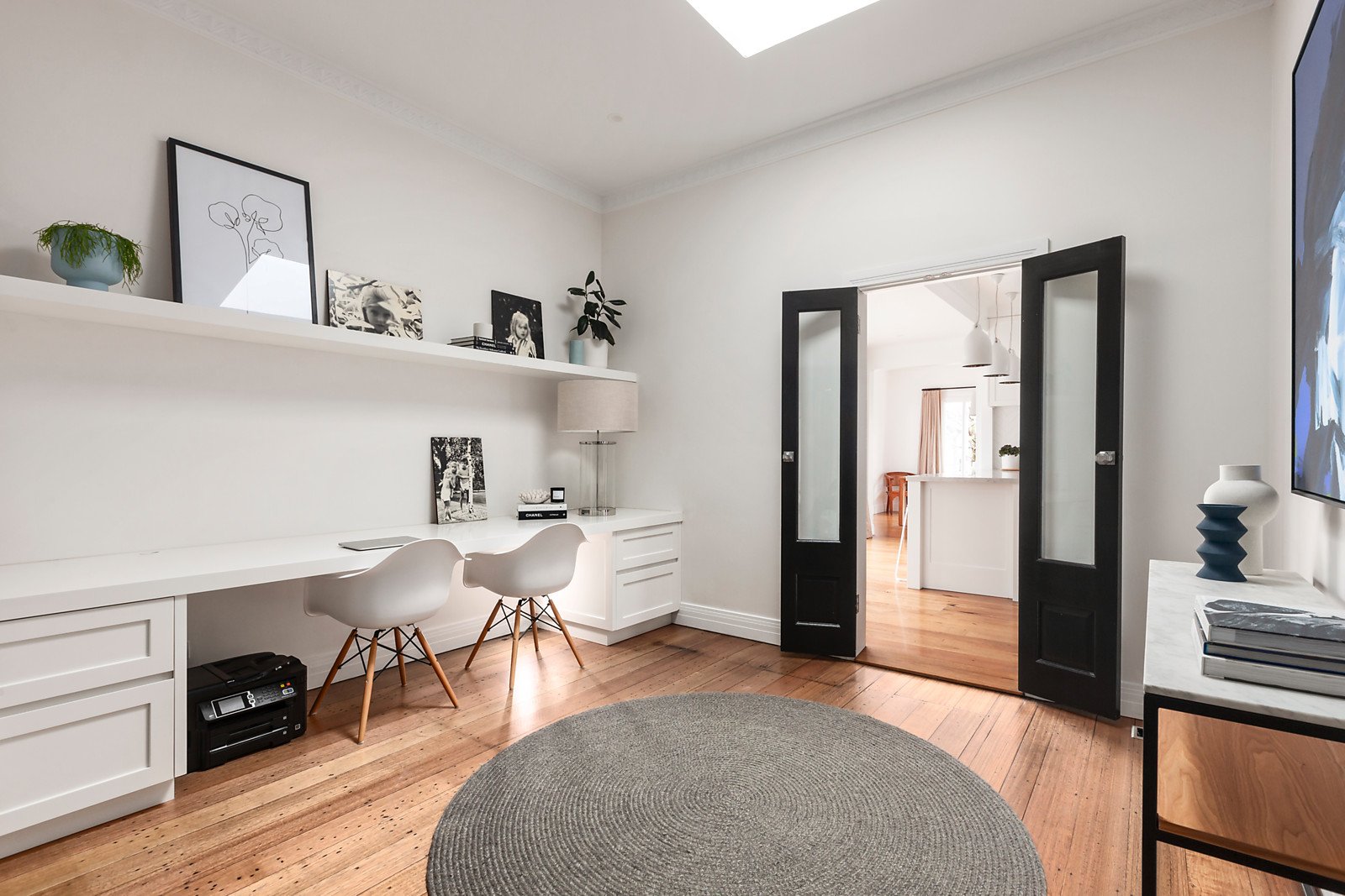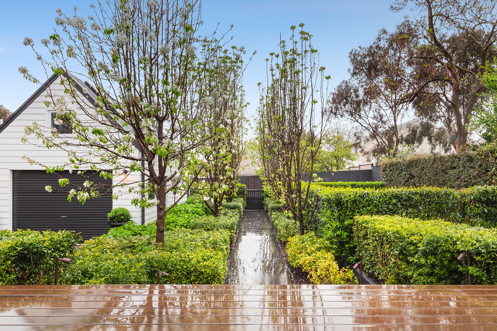 Renovated with peerless flair and reflecting Hamptons style themes, this totally captivating single level period residence is set within a spectacular deep garden landscaped by Inge Jabara and featured extensively in House and Garden. Beautiful, lush gardens beneath a majestic Sheoak are a wonderful prelude to the interior dimensions where timber floors and ornate ceilings feature through the wide entrance hall and fabulous fitted home office. Natural light streams through the gourmet kitchen boasting a 90cm Smeg oven and stone benches and the expansive living and dining room. The living areas extend out to a large, covered terrace and deck overlooking the deep botanic garden and garage with a spacious rumpus room/4th bedroom and powder-room in the loft above. The gorgeous main bedroom with walk in robe and lavish en suite is accompanied by two additional bedrooms with robes and a stylish bathroom. Nestled within a leafy streetscape just metres to Ferndale Park, Glen Iris and Burwood stations, Leo's Supermarket, cafes and schools, it includes plantation shutters, ducted heating, evaporative cooling, ceiling fans, laundry, irrigation, garden lighting and auto gates. Land size: 869sqm approx.