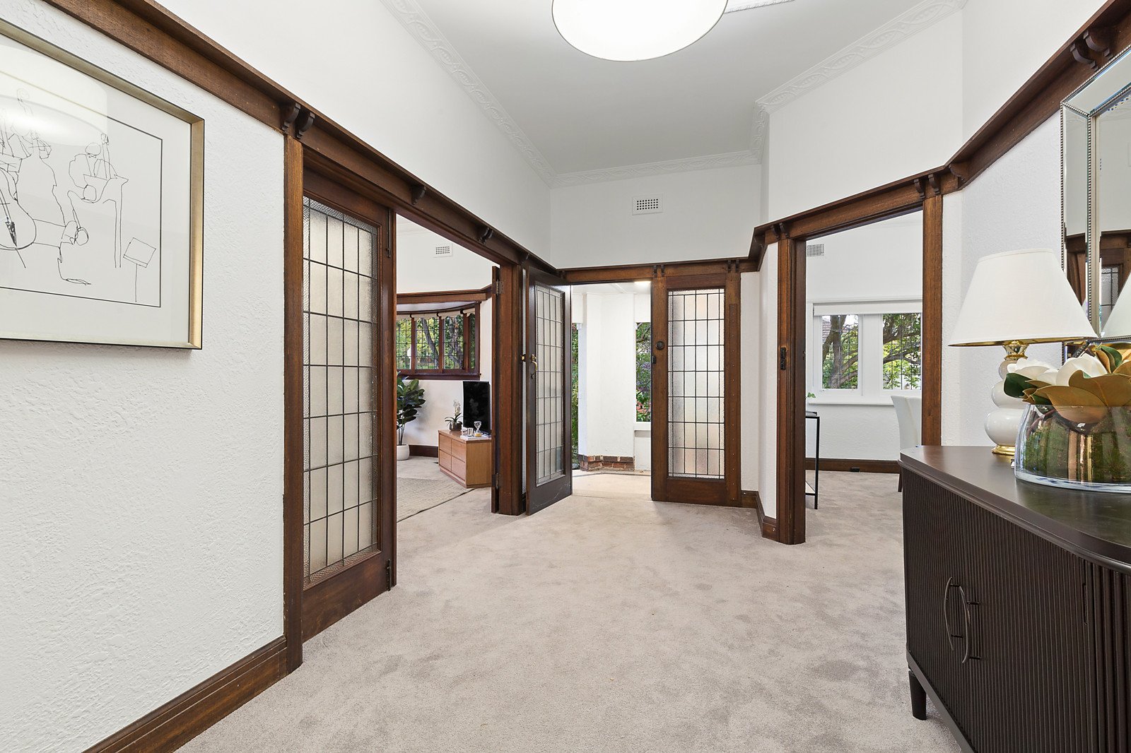 The classic façade exudes charm and is highlighted by a terrazzo porch preceding an inviting interior which features lovely period attributes including decorative ceilings, stained timber woodwork and lead-light glass typical of its era. A wide extremely spacious entrance hall flows to a north-facing sitting room with OFP and beautiful bay window, a separate dining room, three double bedrooms, period-style bathroom and modern timber kitchen with Bosch stainless steel stove, Asko dishwasher leading to a rear sunroom and large laundry; all overlooking an expansive garden, currently including a two-room bungalow with scope to convert into a studio, home office or playroom. Alternatively the garden offers loads of room for extending out and up if desired without compromising outdoor living space. Other features include ducted heating, R/C air conditioners (sitting room & main bedroom), single garage and off-street parking accessed from Hassett Avenue. Land size: 756sqm approx.