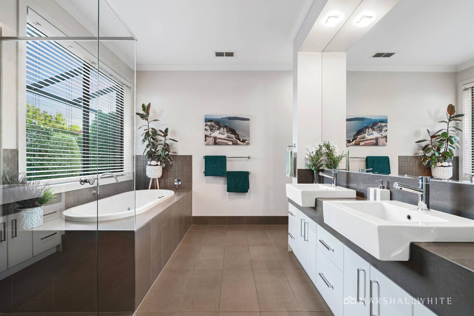 Distinguished by its award-winning architectural design and exceptional positioning on a quarter-acre corner block with dual street access in Mornington’s prized Summerfield precinct, this meticulously maintained four-bedroom brick family home will further captivate with superb low-maintenance landscaped gardens, an undercover alfresco entertaining zone, and solar-heated swimming pool.
