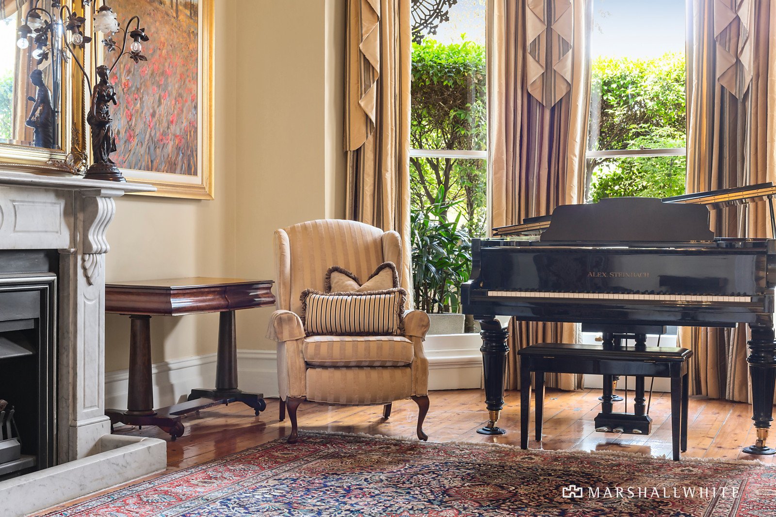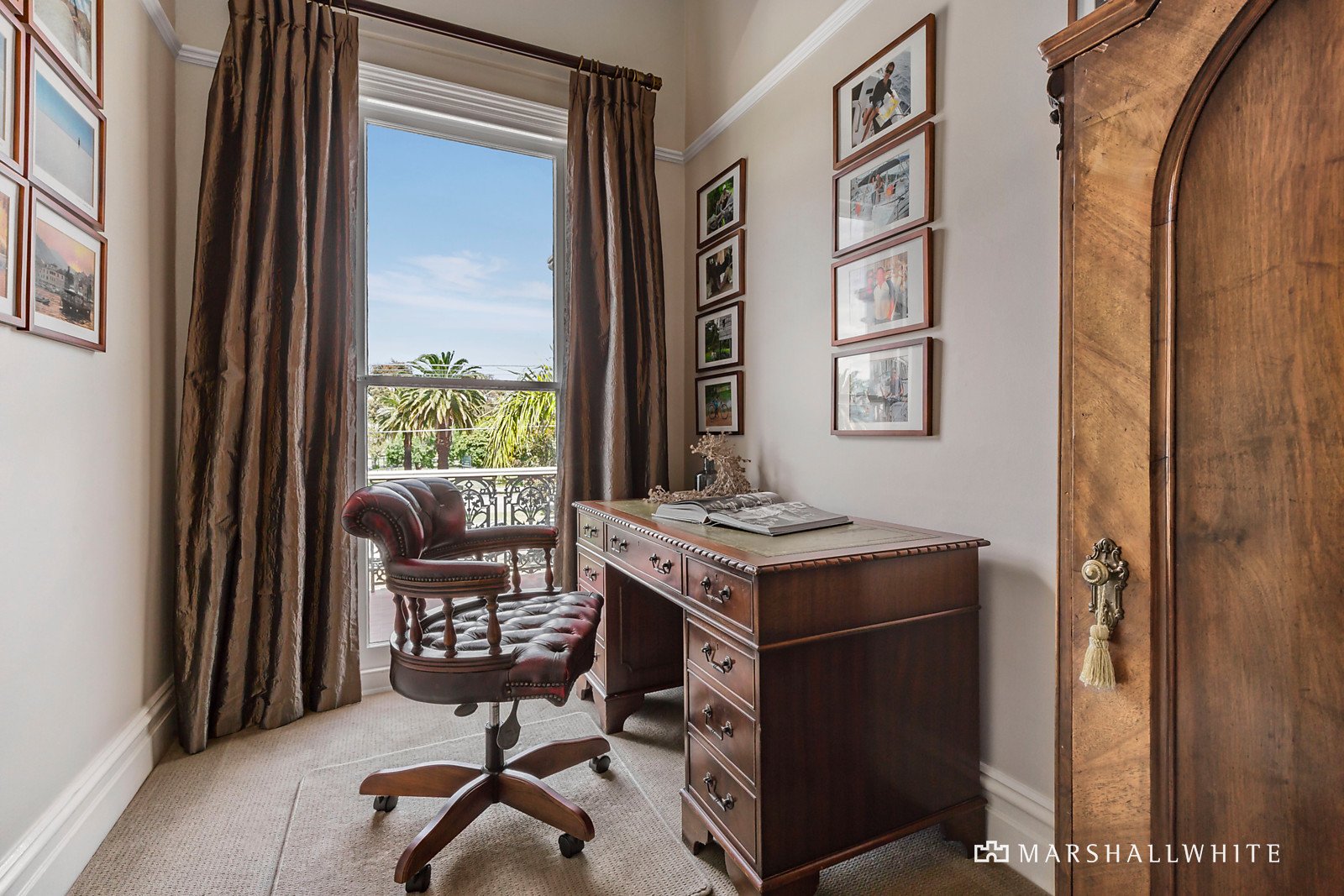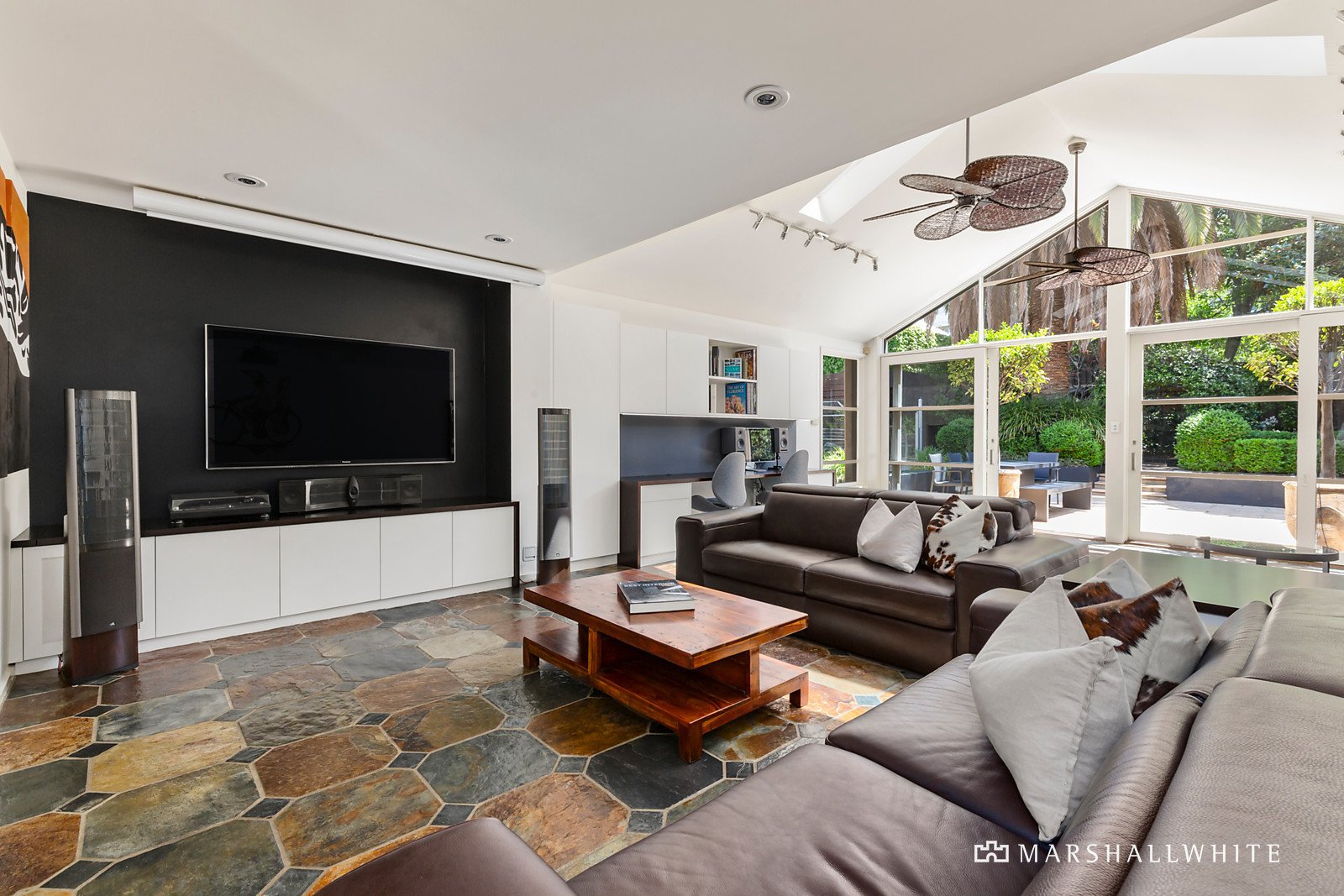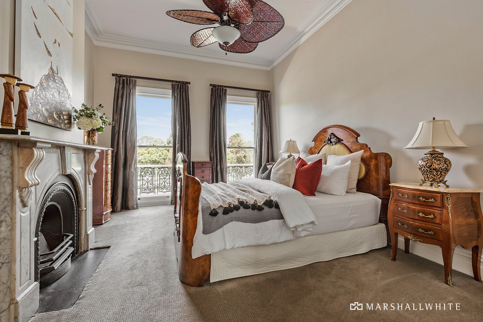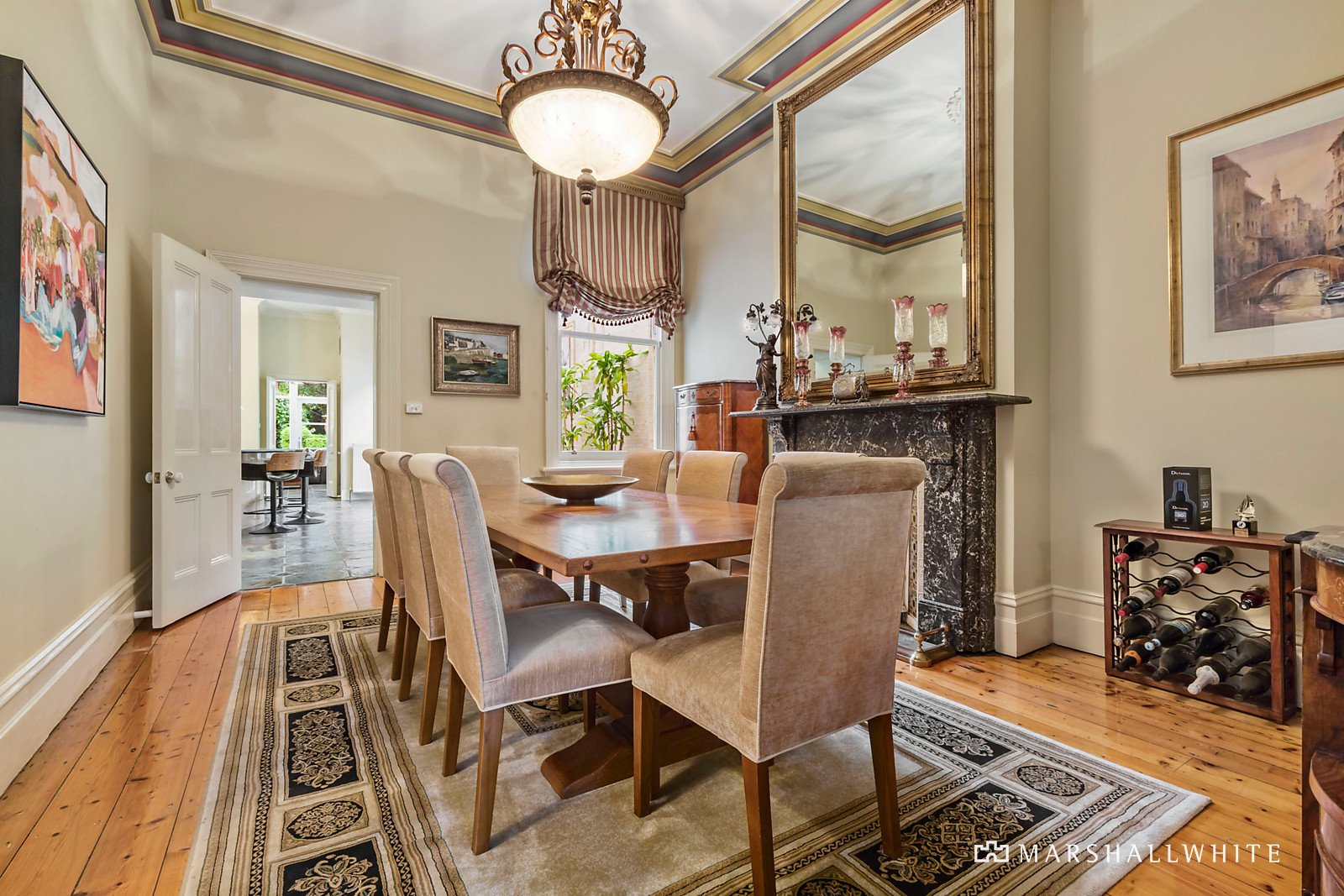 Glorious period detail including Baltic pine floors and ornate ceilings are displayed in the wide arched hall, gracious sitting room with a bay window and marble gas fire and the elegant formal dining room with a marble fireplace. The central gourmet kitchen boasting granite benches and Miele appliances overlooks a private courtyard with water feature. Beneath vaulted ceilings, the expansive and versatile living/family/media room with fitted home office, projector and screen opens to a large, paved terrace with BBQ kitchen, the 12 meter wide and deep private leafy north-facing garden, a picturesque swim jet spa pool and tandem garage accessed via Thomson Street. Upstairs, the beautiful main bedroom with a marble gas fire, walk in robe, marble en suite and home office opens to the full width balcony offering wonderful lake and park views. There are also two additional bedrooms, separate study/bedroom and a bathroom.