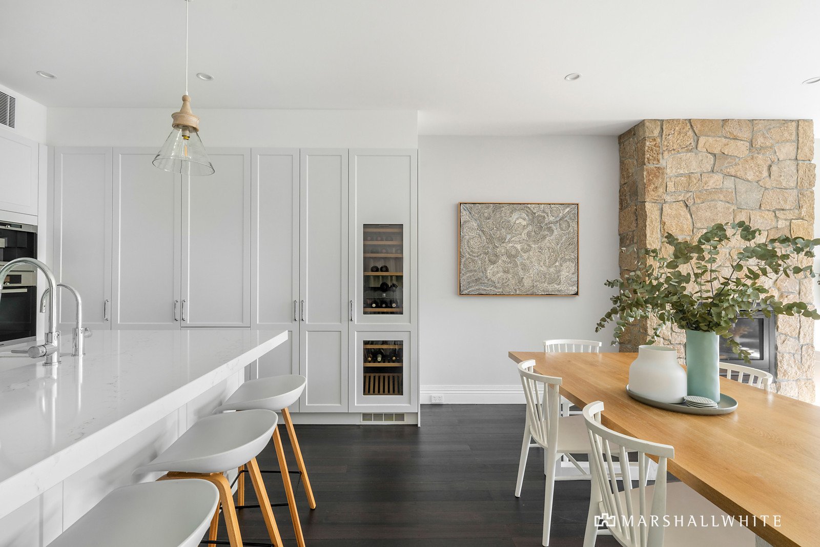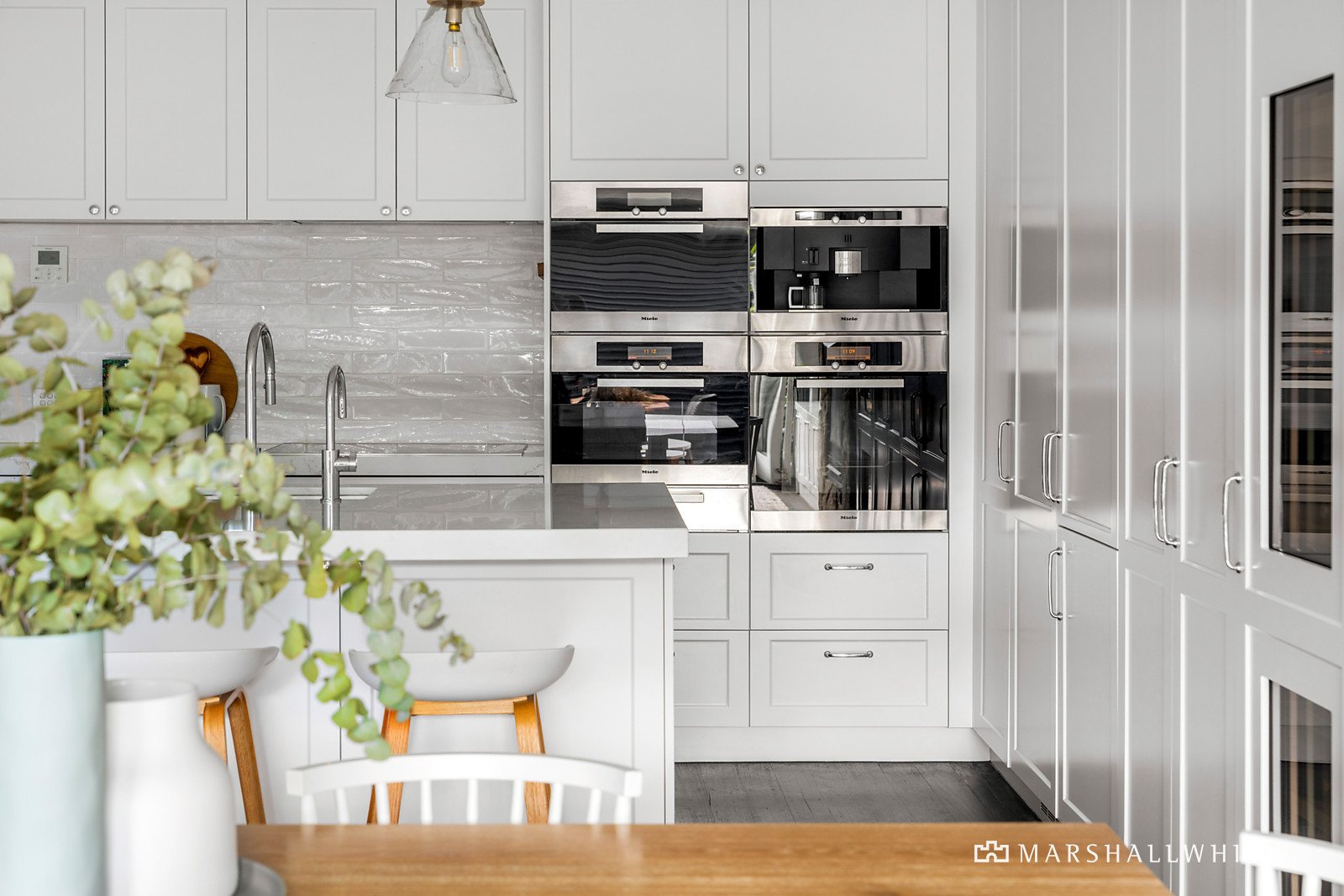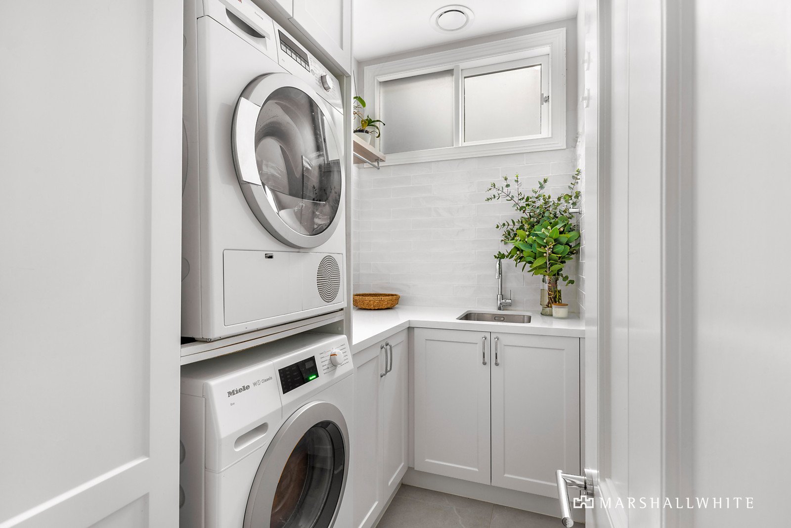 Greeted by a handsome Boom-era facade, the exceptionally transformed interior expands through a corbelled arch hallway into a magnificent contemporary domain, where everyday living and entertaining are enhanced with floor-to-ceiling bi-fold doors to an entirely private courtyard terrace. Open-plan living and dining is enriched by a spectacular gourmet kitchen with sleek stone benchtops, hosting an integrated Miele appliance suite, an integrated Liebherr fridge/freezer and wine fridge, and a Zip Tap.