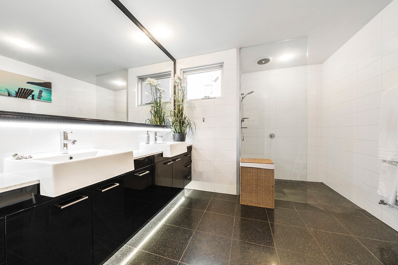 The versatile and generously proportioned accommodation features a beautiful main bedroom with north balcony, built in robe and chic ensuite and a ground floor, extra large bedroom also with walk in robe and stylish ensuite. In addition there is a third bedroom/study, central bathroom and a fabulous fourth double bedroom with built in robe and study nook opening to a private tropical courtyard with swing chair.