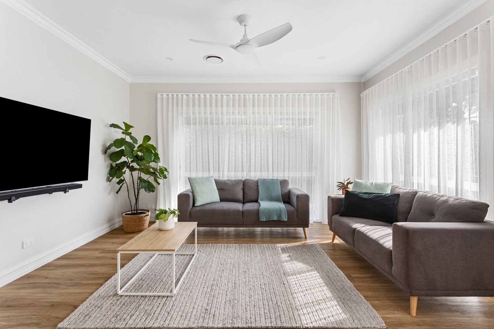 Privately and securely set behind a high brick wall, the freshly painted rendered brick home is surrounded by a lush north-easterly facing lawn, established garden borders, and crazy-paved alfresco terraces. The light-filled living room introduces the newly renovated coastal-inspired features including vinyl plank timber-look flooring, sheer S-fold curtains and rattan pendants above the stone-topped island bench that defines the gourmet kitchen equipped with a Smeg oven, gas cooktop, an Electrolux dishwasher and plumbing available for fridge. Newly custom-built, the large double pantry has plenty of storage space, as does the matching stone laundry with external access.