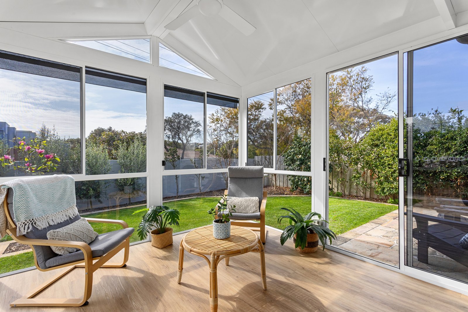 Extending towards the north-easterly orientation is the conservatory-like sunroom that connects to the garden, while automated awnings make it a wonderful all-season second living or entertaining space. Newly carpeted, the three bedrooms all have built-in robes and ceiling fans while the spacious, zoned main bedroom has a shower ensuite. Both the main bathroom with a designer tub, and the ensuite have been luxuriously renovated with floor-to-ceiling tiling, under-floor heating, luxe vanities and tapware, and are lit by skylights. Additional highlights include gas ducted heating and refrigerated air conditioning, security screen doors, a wrap-around paved alfresco area with pergola, garden shed, outdoor shower, rooftop solar panels, and a remote-operated garage.