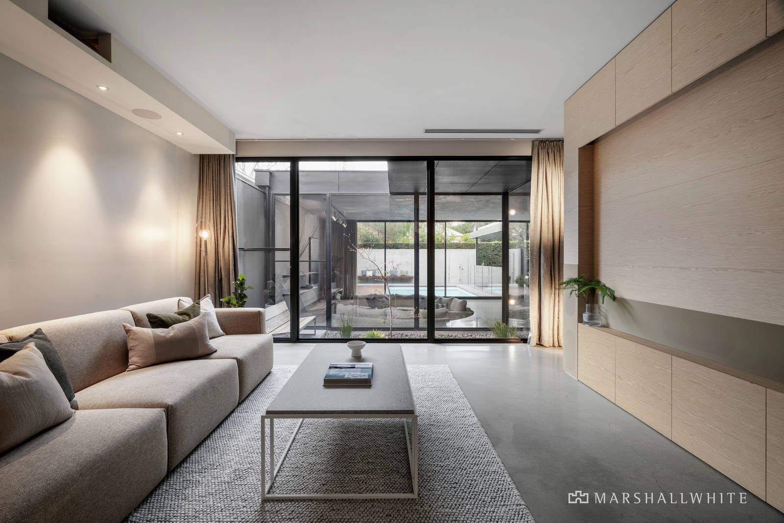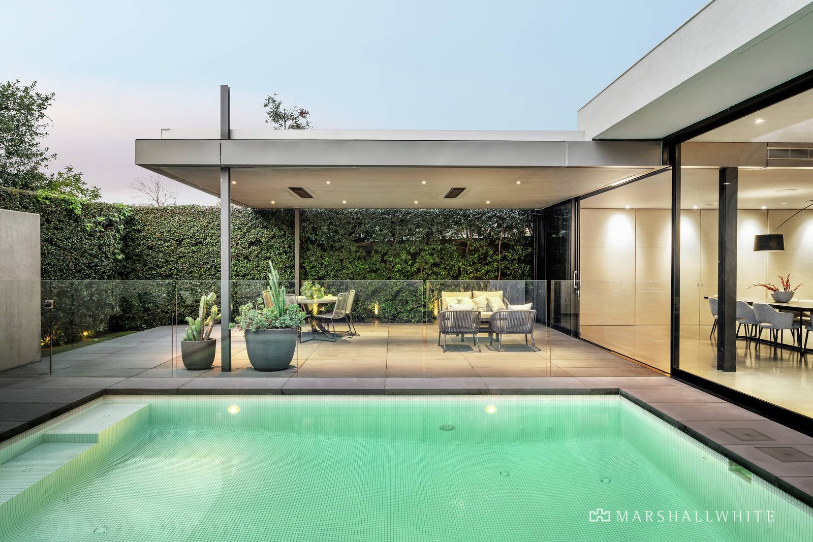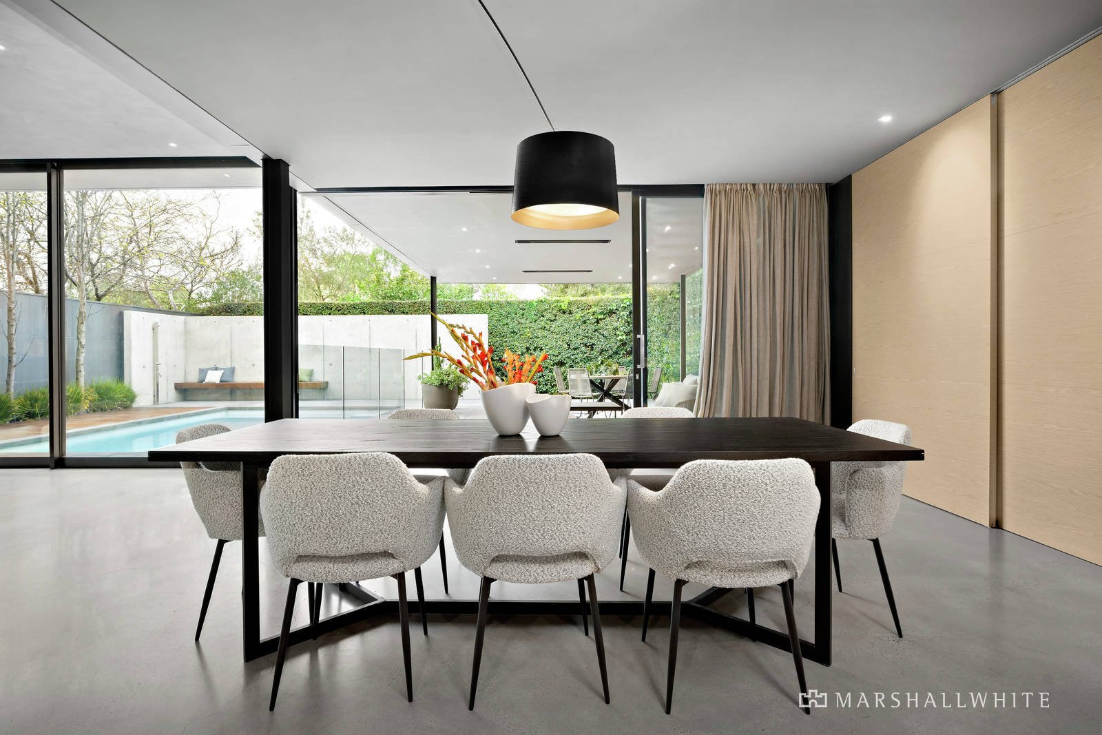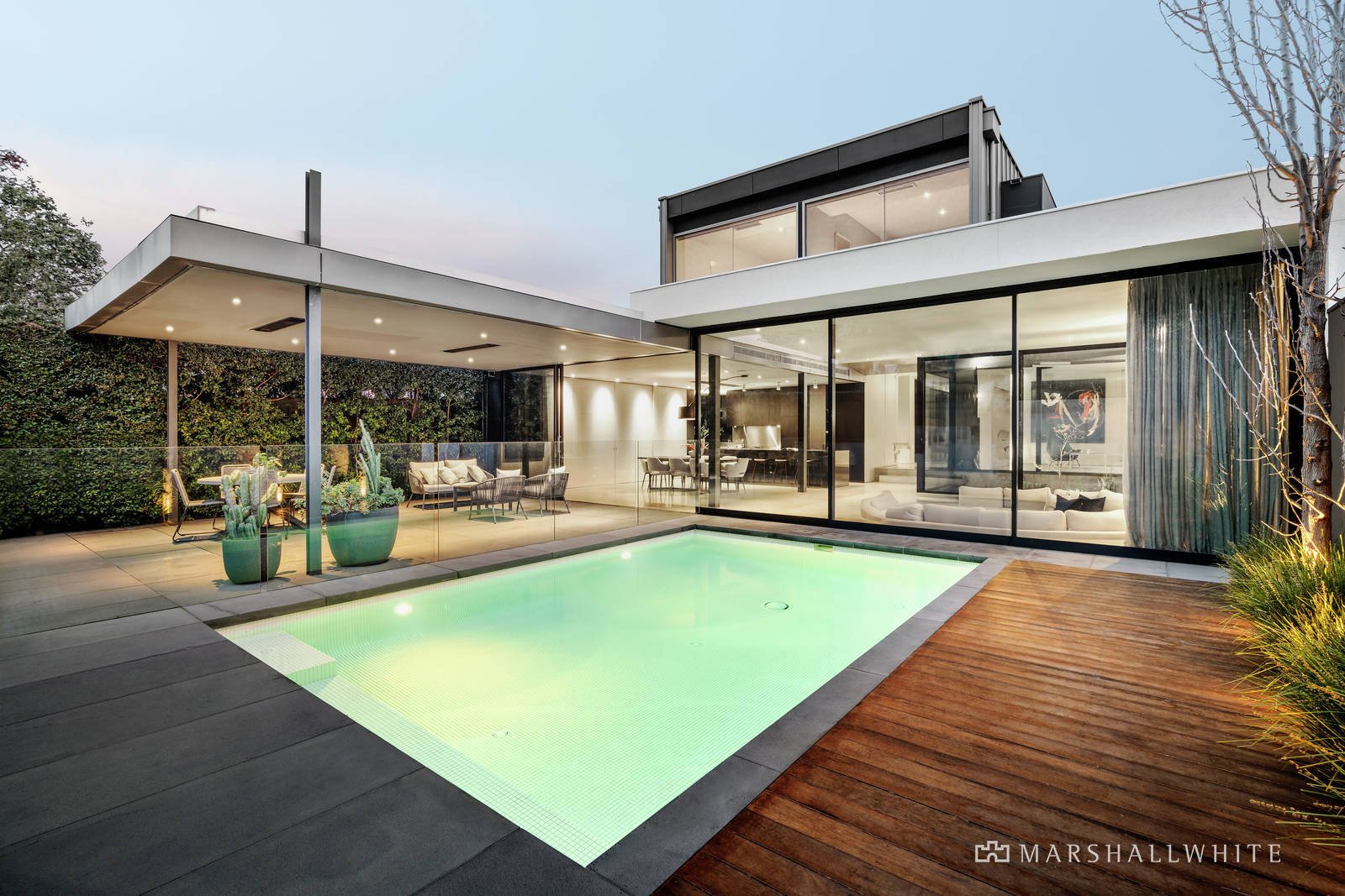 Streamlined luxury brings resort-inspired perfection to a sought-after location, minutes from Haileybury, St Leonard's College and Were Street Village shops and cafes. Richard Kerr Architecture and Chelsea Hing Interiors won three Bayside Built Environment Awards for this four-bedroom hideaway, where pool views, contemplative gardens and year-round greenery are calming and precision-crafted. It deserves its accolades, with the family room featuring a sumptuous sunken lounge, the dining room with a hidden cocktail bar, bespoke cabinetry and Foscarini lighting, and the gourmet kitchen with concealed Gaggenau ovens, Miele cooktop and dishwasher, and stainless steel and stone benches. Work from home in the big study or use it as a luxe lounge, there's a media room/ground-floor fourth bedroom option, and a main bedroom suite like no other. It's a sleek space with a curved wall encasing the bedroom and sitting area, a round skylight bringing sunshine and sky views into the ultra-luxe alba and nero marquina marble ensuite, and both walk-in and built-in wardrobes. Considered use of concrete, glass, timber and glass is a winning combination, with hydronically heated concrete floors, huge windows, oak veneer joinery, and steel pillars. Outside is where the resort vibe rules. Sit by the self-cleaning pool on the north-facing deck, swim in salt-chlorinated water, and find a shady spot to dine outdoors on the big undercover terrace. Exceptional planning underpins every aspect of this celebrated home. Gaze out to a series of private courtyard spaces and look within at the quality that comes from having a dedicated study nook, Corian and marble bathroom, curved walls, ducted air conditioning, a remote-control car gate, security system, and storerooms. A landmark home ready for everyday enjoyment and unforgettable entertaining.