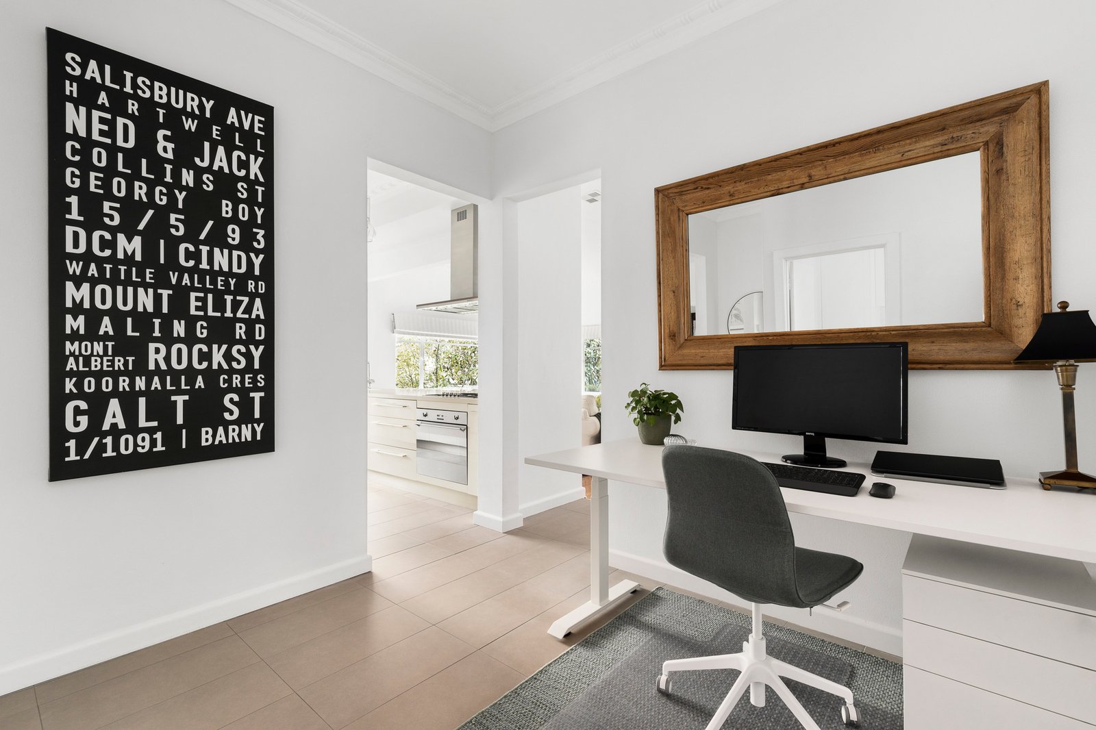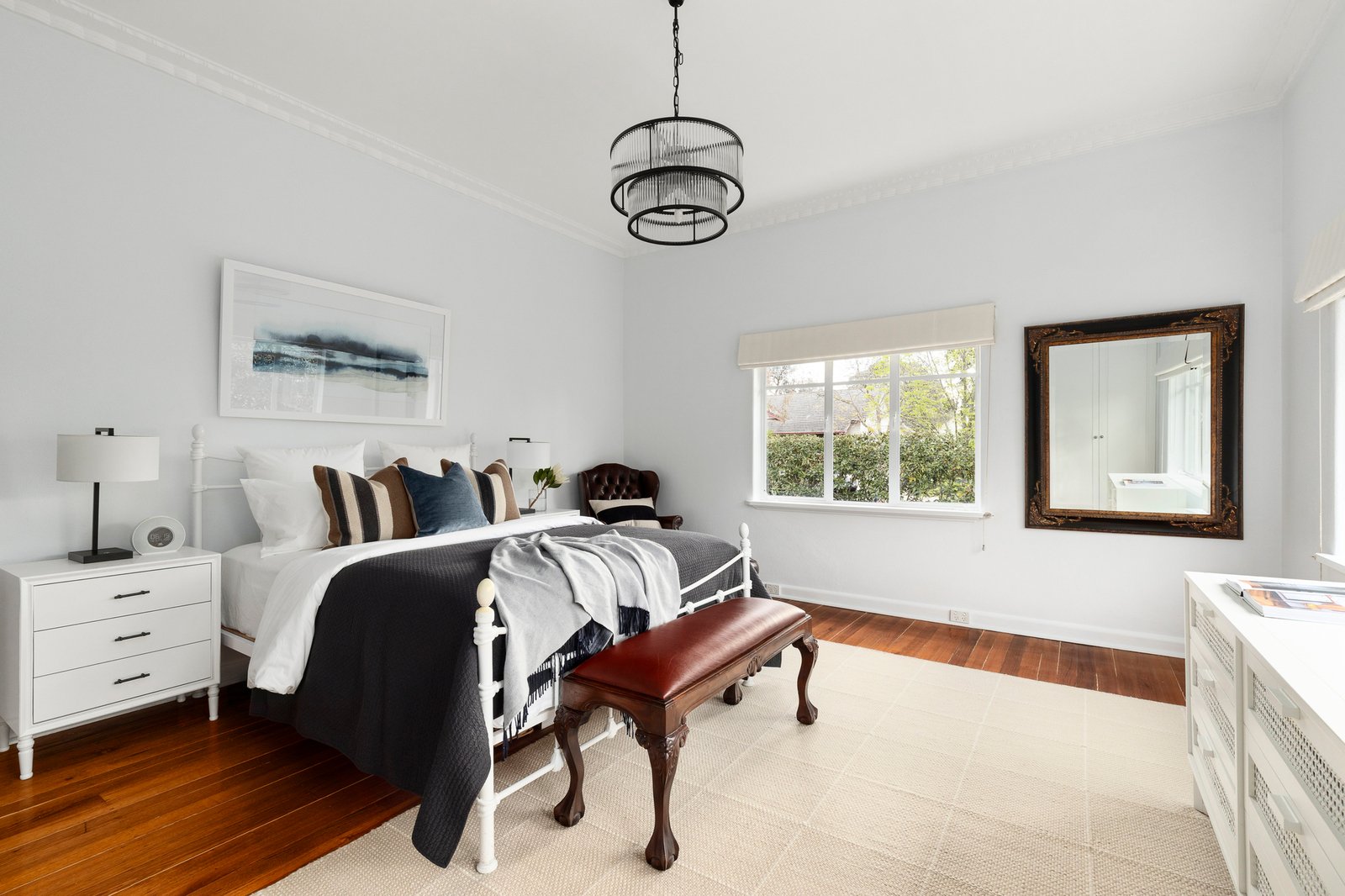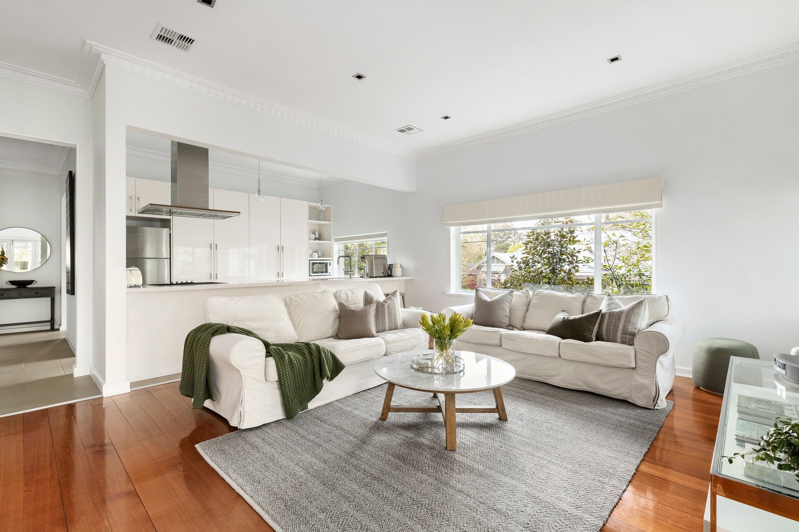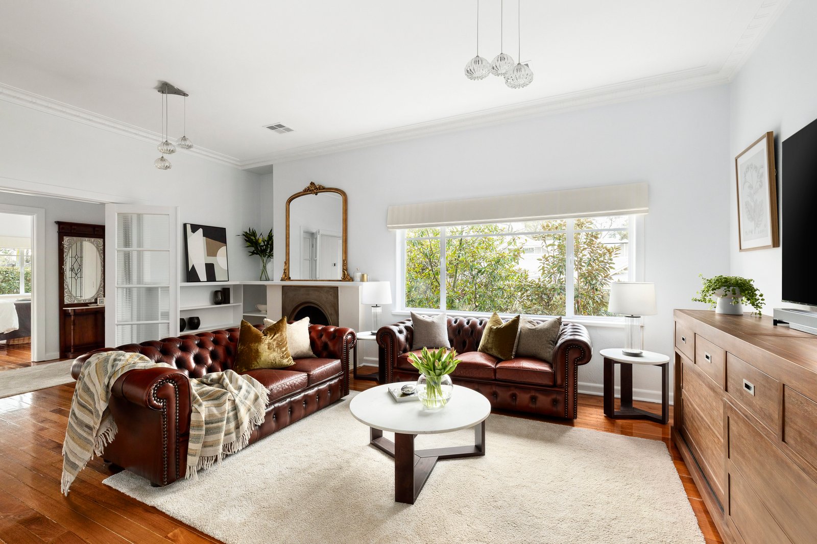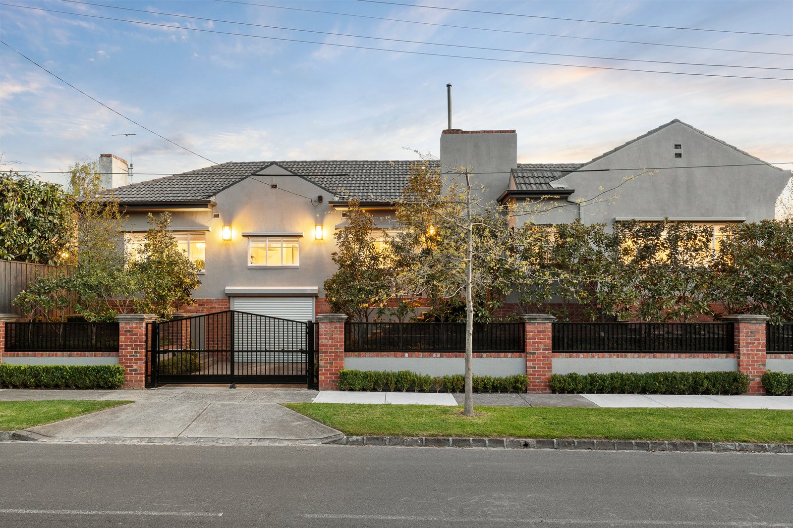 Framed by lush, leafy gardens, the entrance hall featuring timber floors flows through to a generous formal sitting room with an open fire, high ceiling and original metal windows. The superb gourmet kitchen appointed with stone benches and Miele/Smeg appliances and the expansive open plan living and dining room open through bi-fold doors to an exceptionally spacious undercover al fresco deck with heaters providing year-round comfort. Capturing wonderful northern light, the captivating private garden is bordered by magnificent Magnolia hedges. The three double bedrooms with built in robes and a home office are accompanied by two stylish bathrooms.