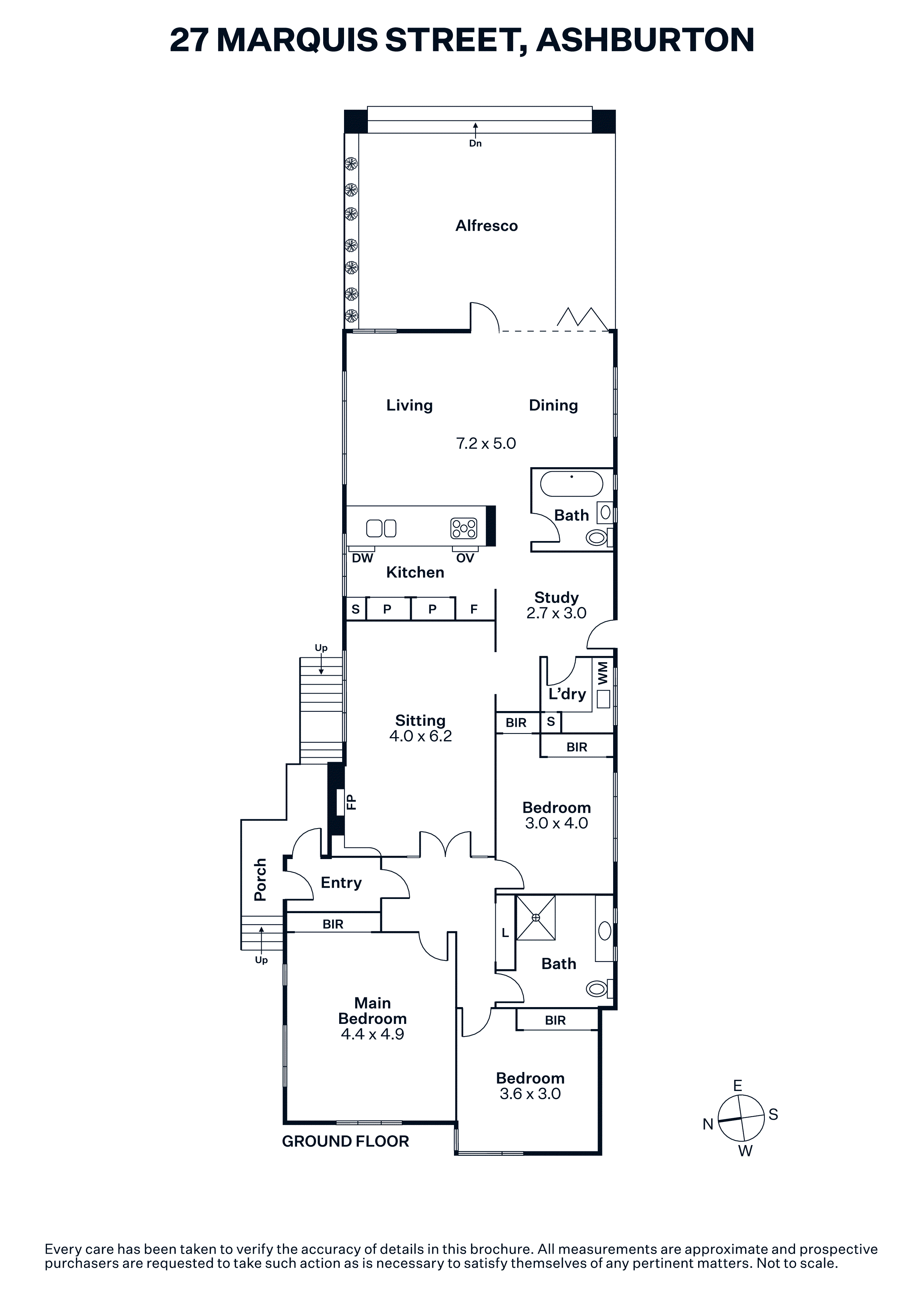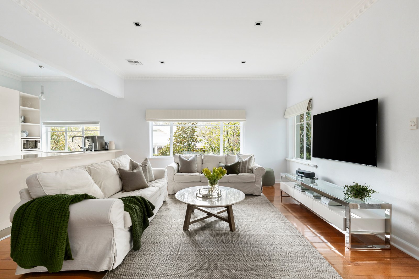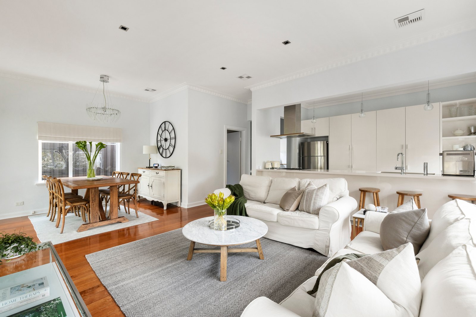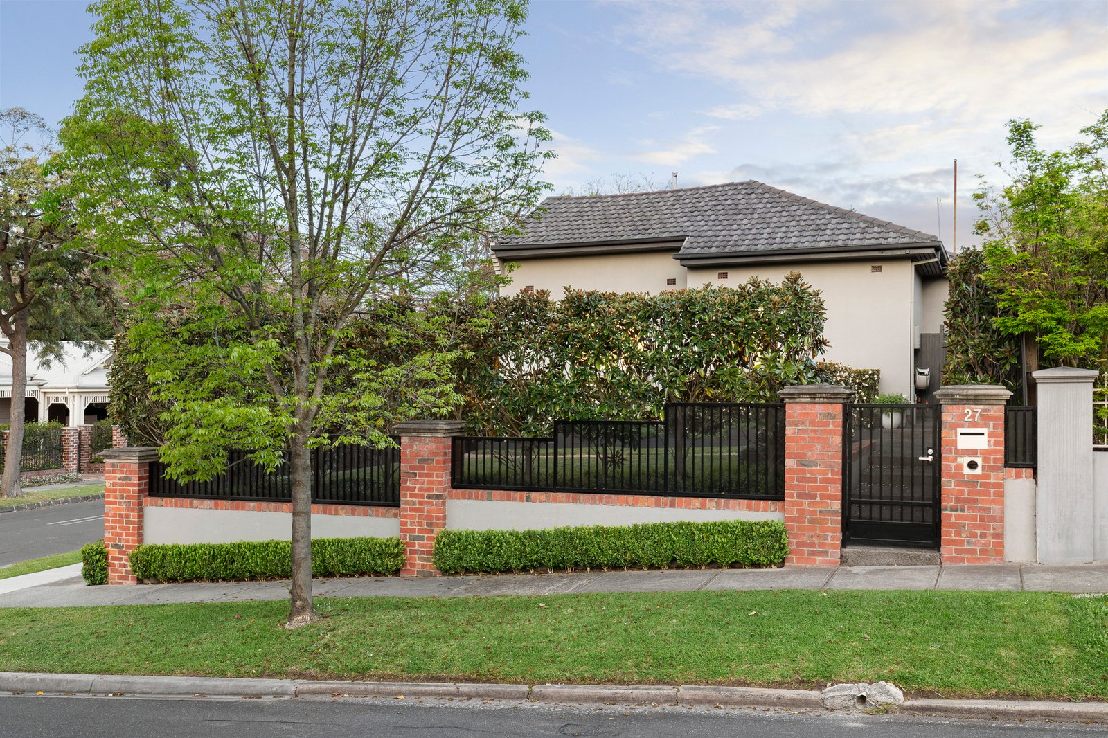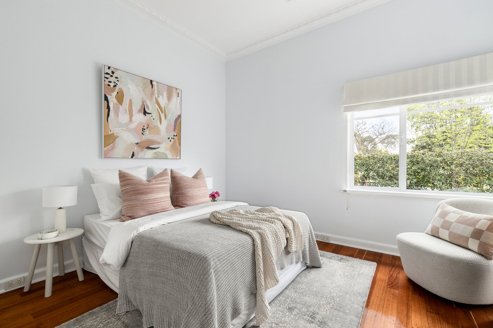 Framed by lush, leafy gardens, the entrance hall featuring timber floors flows through to a generous formal sitting room with an open fire, high ceiling and original metal windows. The superb gourmet kitchen appointed with stone benches and Miele/Smeg appliances and the expansive open plan living and dining room open through bi-fold doors to an exceptionally spacious undercover al fresco deck with heaters providing year-round comfort. Capturing wonderful northern light, the captivating private garden is bordered by magnificent Magnolia hedges. The three double bedrooms with built in robes and a home office are accompanied by two stylish bathrooms.
