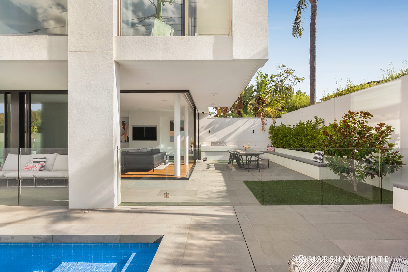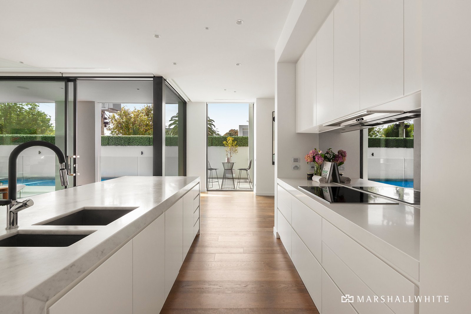 Make effortless entertaining a reality, as sliding doors open to reveal a spectacular north west facing pool and alfresco din-ing zone. Full of natural light, open plan living features a gorgeous gas fireplace, and a state of the art kitchen is both ele-gantly finished and incredibly practical. A suite of Miele and Liebherr appliances, walk in pantry, concealed bar and striking Cararra Lux marble island are a few of the features on offer.