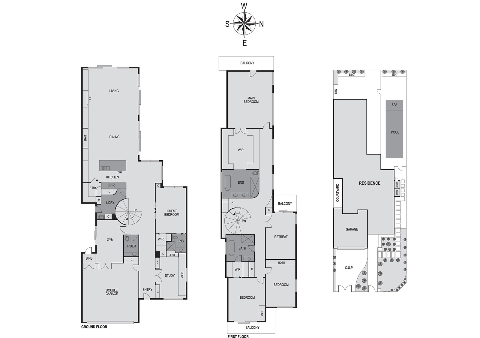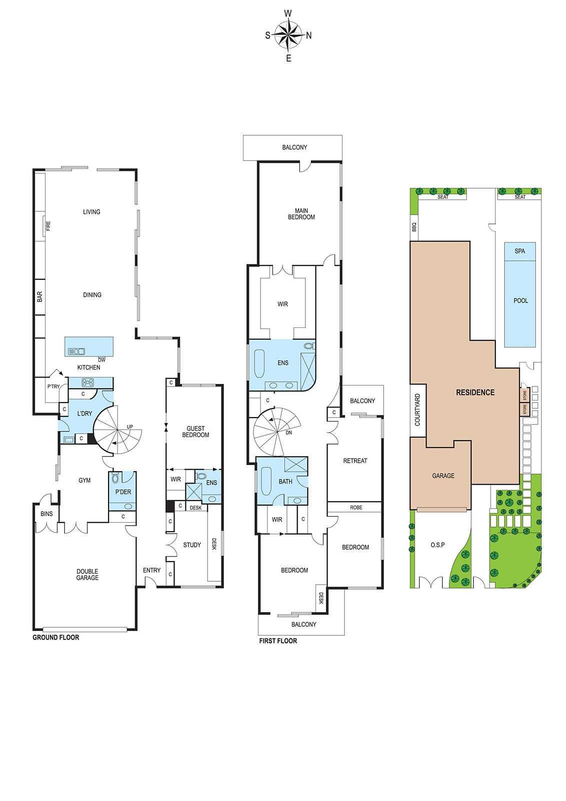 A grand spiral staircase and circular skylight lead to the first floor where a central retreat provides flexibility, and three beautifully sized bedrooms include the luxurious ensuite main with twin walk in robes and balcony.