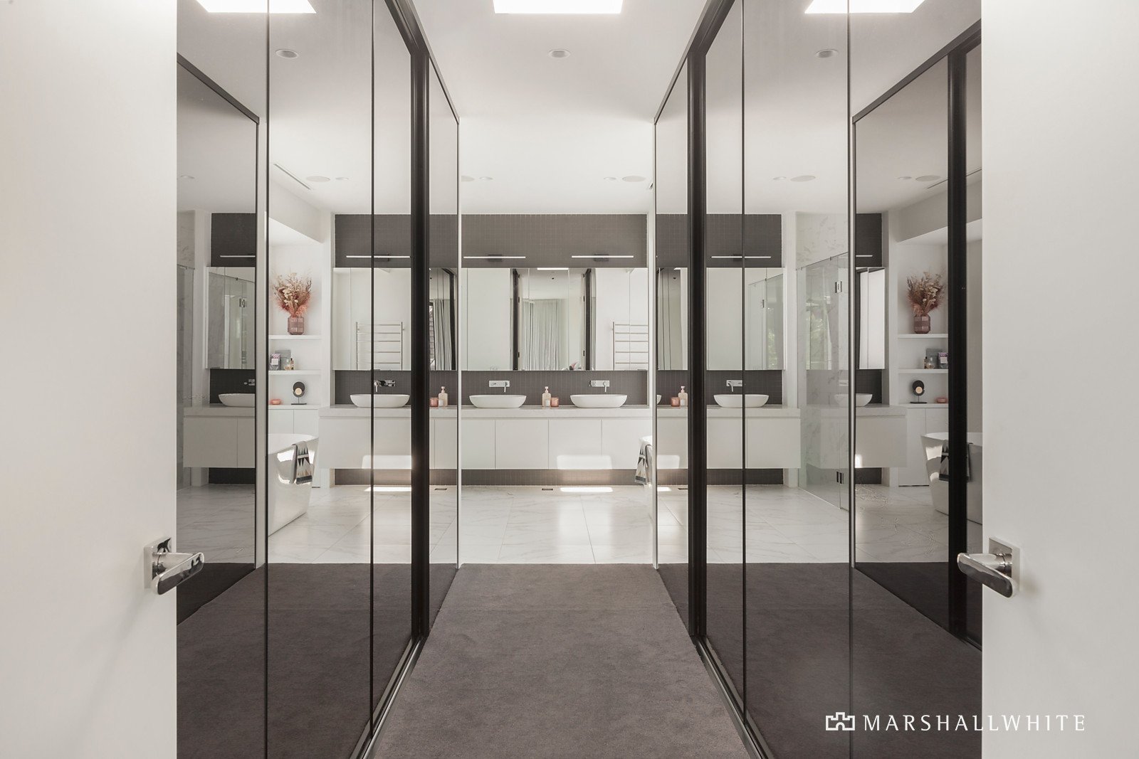 Architectural design by Martin Friedrich Architects sets a new benchmark in luxury living. Enter through the grand blue-stone entrance and keyless pivot door and be impressed by high ceilings, stylish oak timber floors and floor to ceiling win-dows. High end finishes feature throughout, creating a truly memorable home well suited to a range of ages and stages.