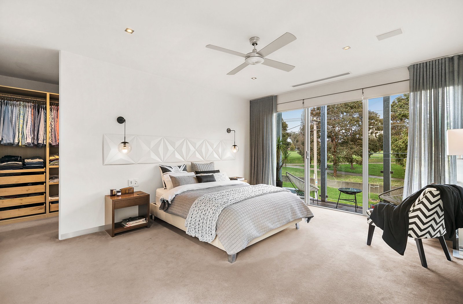 Upstairs, the stunning main bedroom commands picturesque park views from a wide balcony and comprises a lavish en suite, custom-fitted dressing room and private northwest sun-terrace. Further down the hall, the upper level contains two additional bedrooms with built in robes, a luxurious third bathroom with spa bath and separate laundry.
