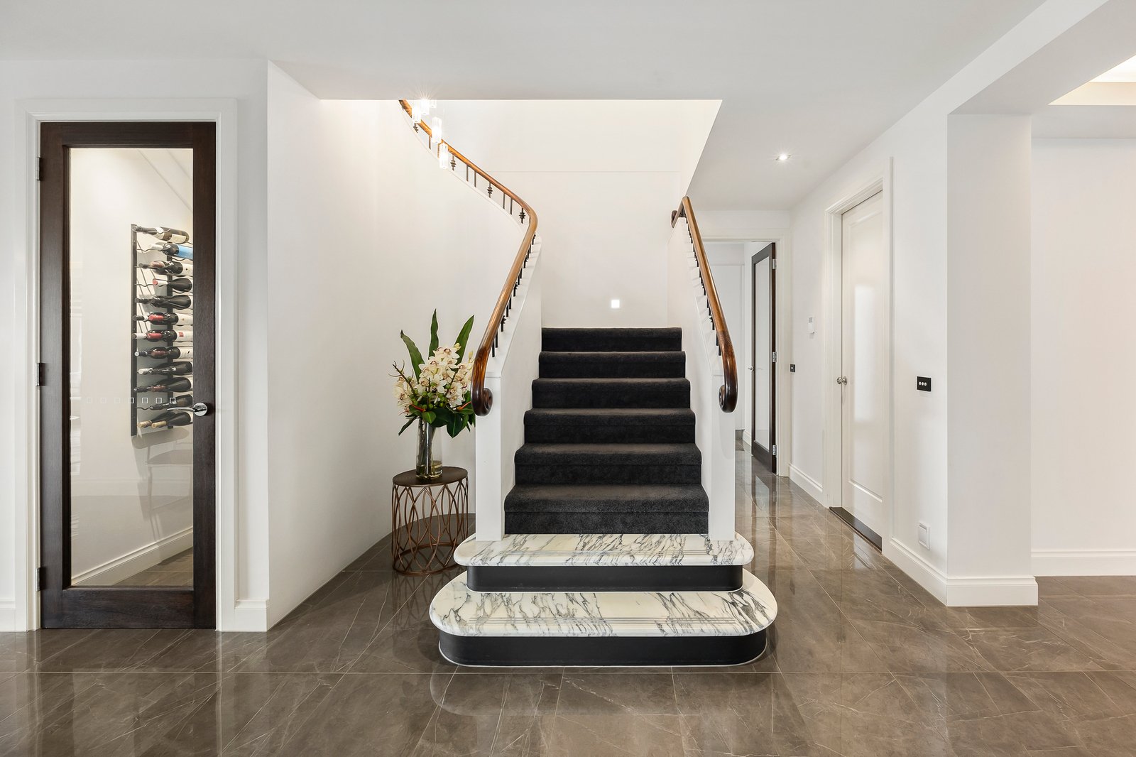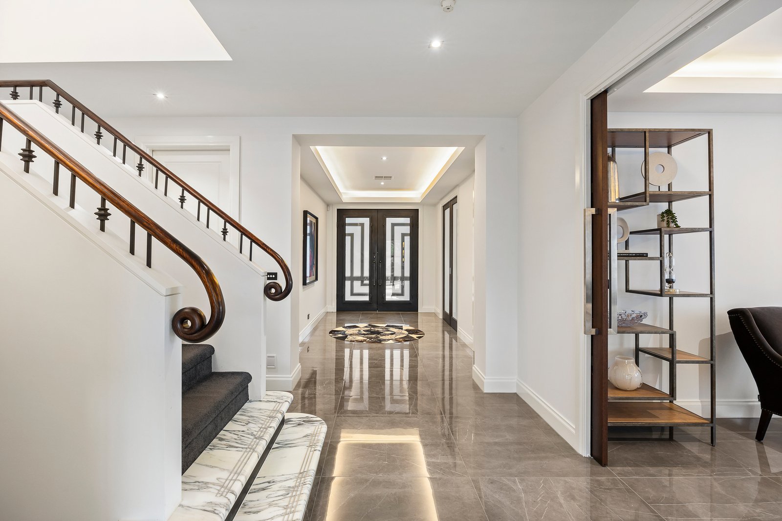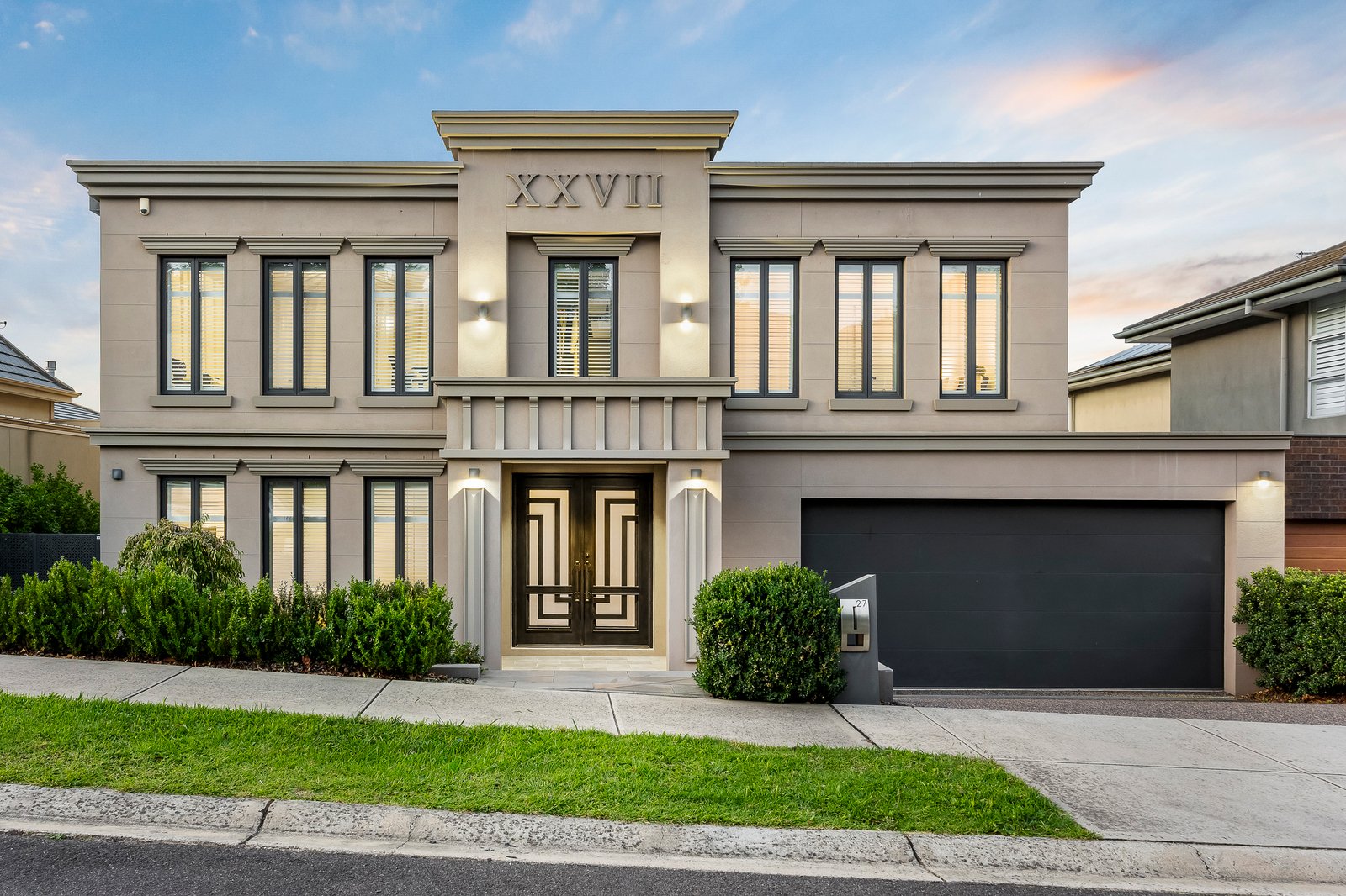 Commanding an immediate sense of grandeur with its majestic Neo-Classical facade adorned with the Roman numerals 'XXVII', this breathtaking home sets a new benchmark for luxury living in Doncaster East. Showcasing an uncompromising commitment to quality and cutting-edge design, the estate is an architectural triumph of scale, light, and sophistication. From the imposing geometric iron doors to the Italian porcelain floors and a magnificent curved central stairwell featuring marble steps and a statement chandelier, every detail of this home exudes prestige.