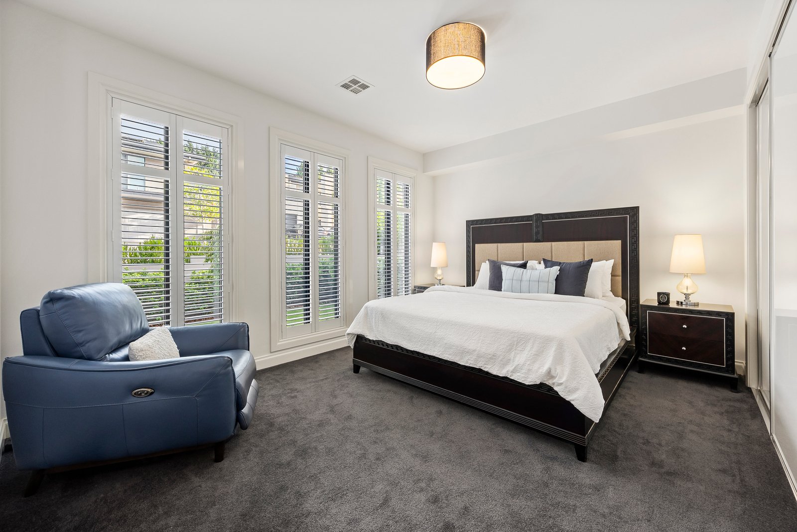 Entertaining is effortless as the living space spills out to an enclosed all-seasons balcony and alfresco area, complete with a built-in Electrolux gas BBQ, side burner, beverage fridge, and Condor rangehood. Below this level lies a highly versatile, expansive lower rumpus room featuring a stone-topped Artusi kitchenette and a wash closet, making this the perfect area for a secluded optional sixth bedroom, home gym, or entertainment room. The backyard is a quiet, easy-care retreat with low-maintenance turf, while the double auto garage offers convenient glass-door access to a side deck.