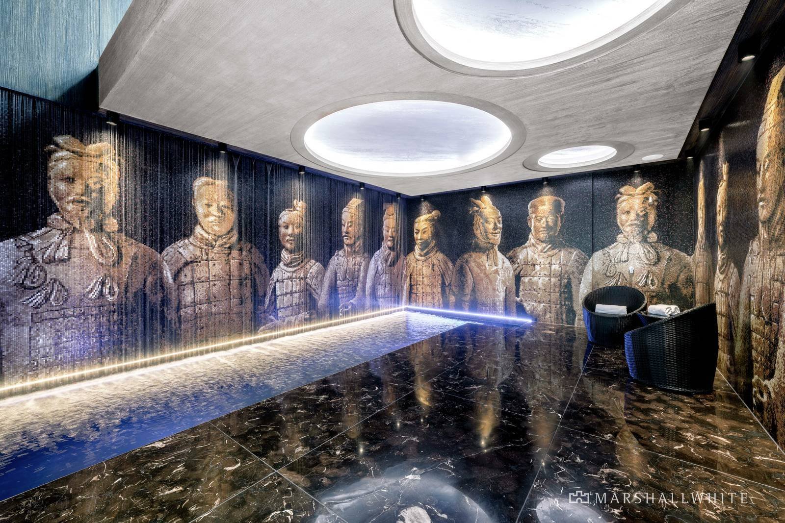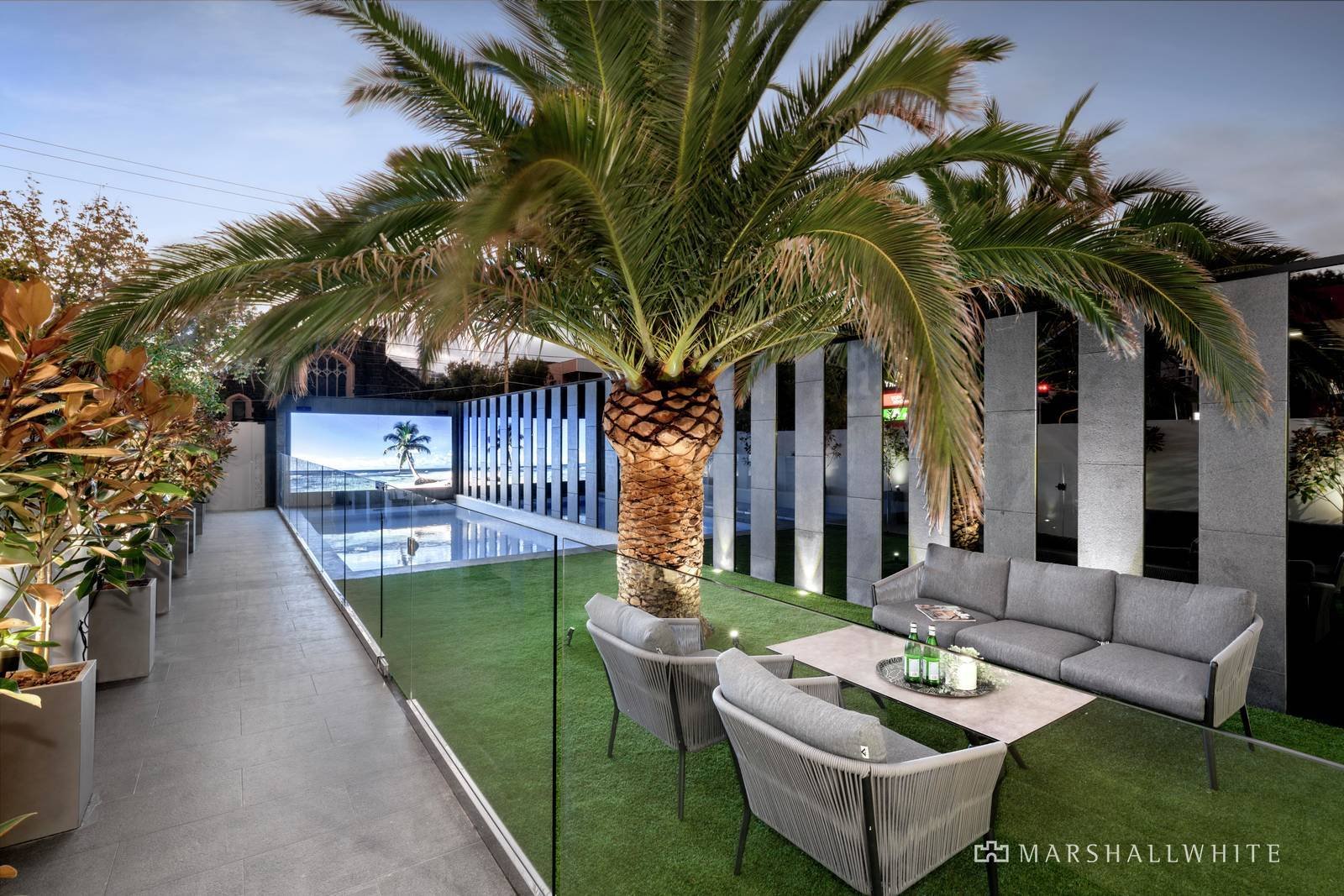 The imposing grandeur of this brand new impeccably built South Yarra residence belies the true detail and irreplaceable quality of what is found behind the entrance. Complete with two pools, one outdoor surrounded by palm trees at one end and one of the largest available outdoor televisions at the other. The other, an indoor 'grotto' style pool in the basement which is complimented by a full gym studio and powder room and home office.