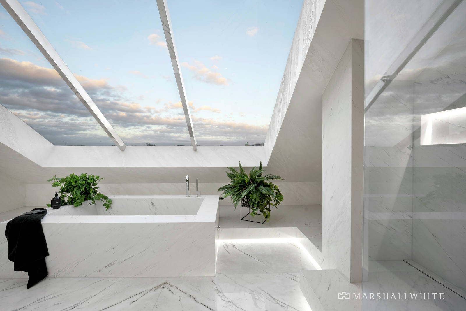 Living areas are flooded with natural north western light, every surface uncovers the meticulous detail that has gone into the property. Venetian render, marble walls, bespoke Gaggenau filled kitchen and custom floors throughout.