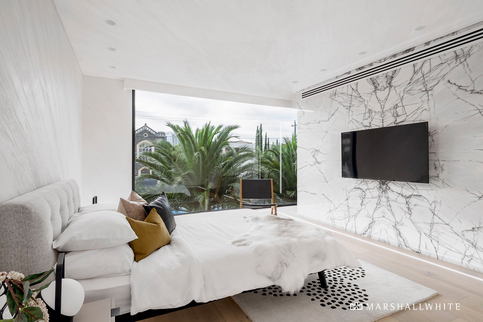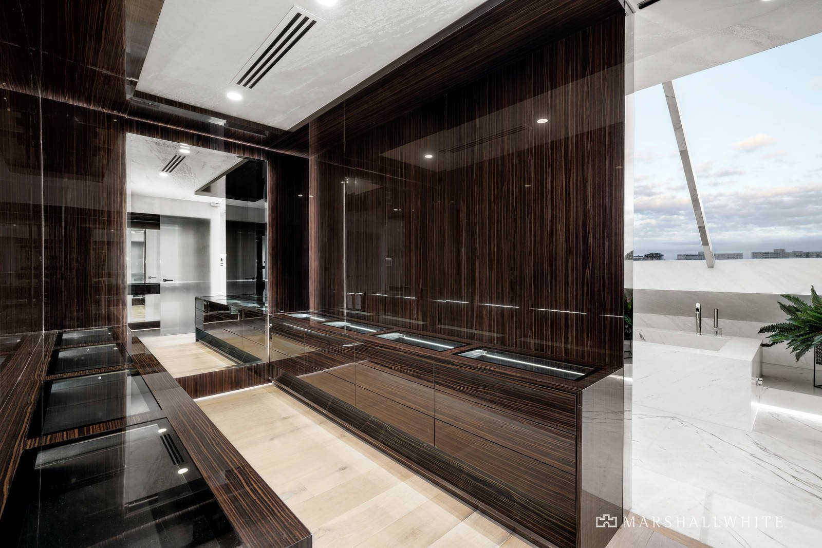 3 full sized bedrooms with palatial walk in robes come with incredibly proportioned ensuites, the main suite offering jaw dropping finishes from cabinetry to flooring to custom lighting and marble stone work and views back over the CBD.