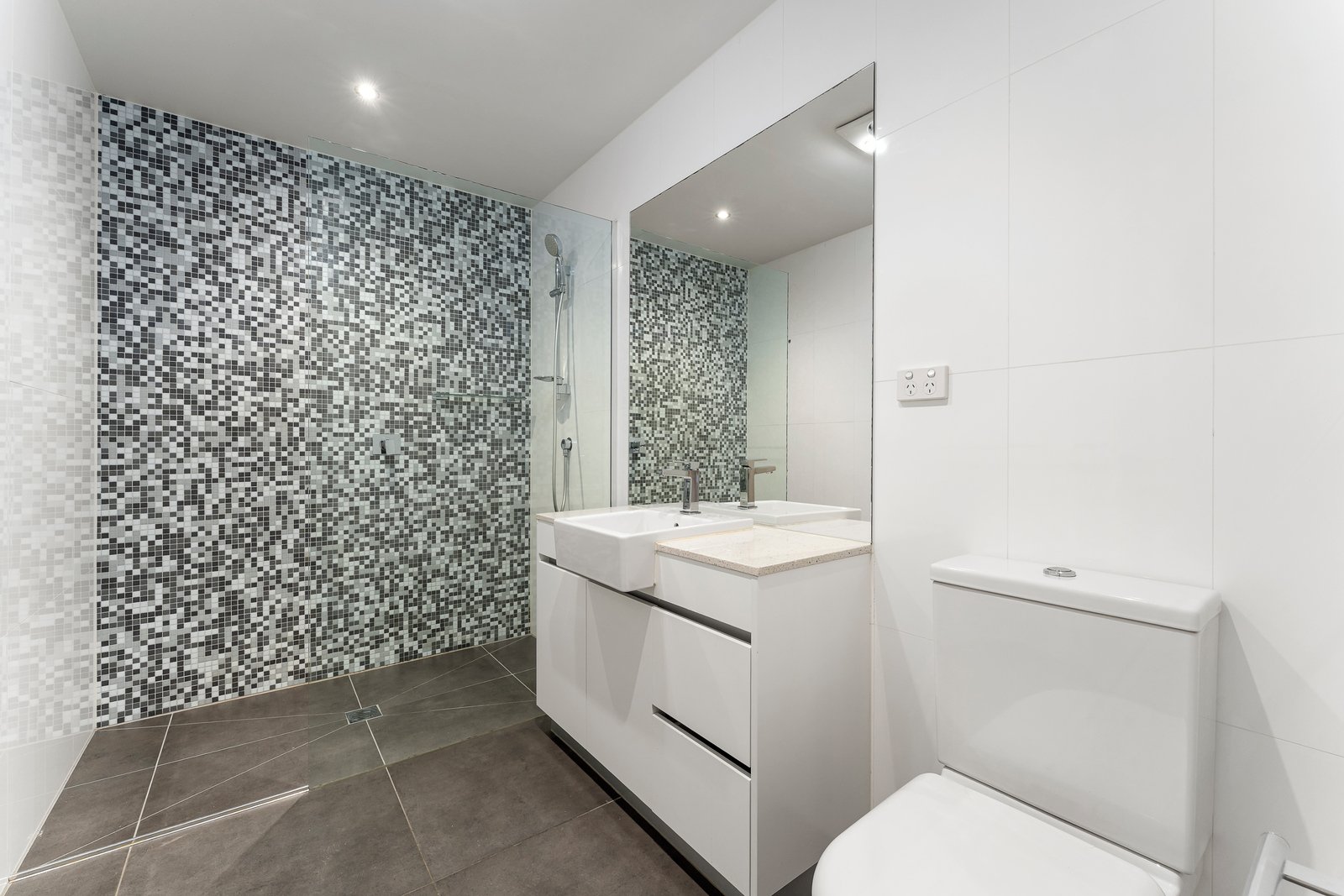 Accommodation is both generous and adaptable, comprising three well-proportioned bedrooms, all include built-in robes and air conditioning. Two stylish bathrooms are appointed with floor-to-ceiling tiles, walk-in showers, and contemporary finishes, complemented by a conveniently located powder room.