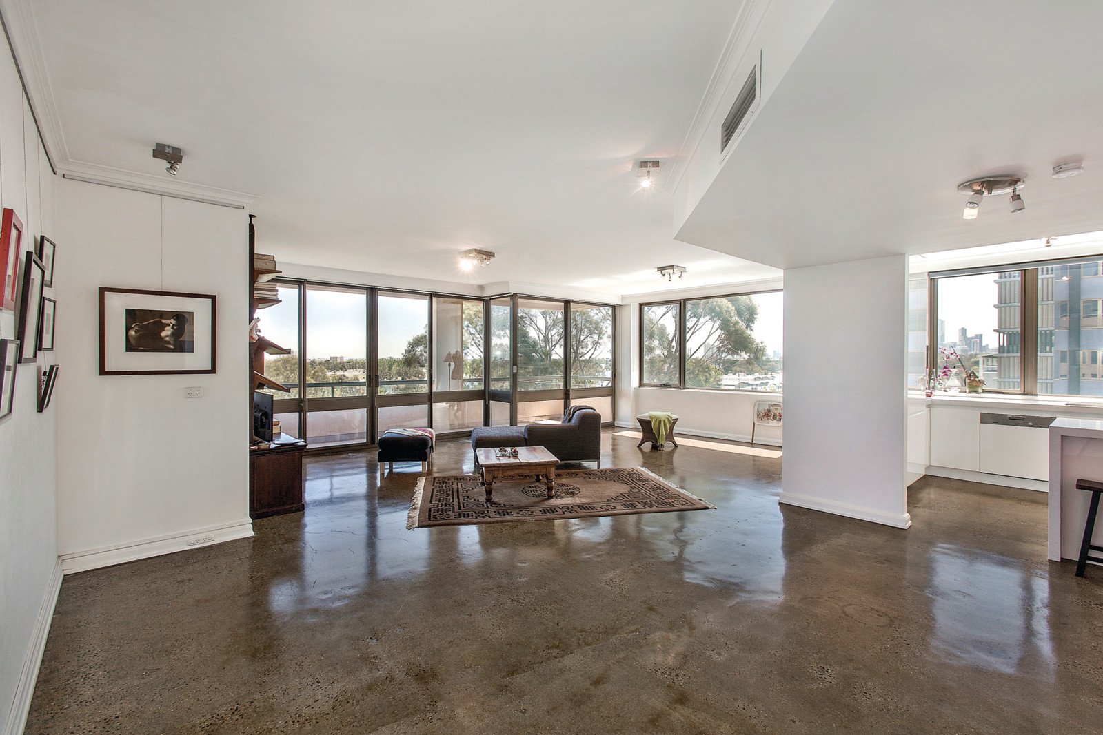 Defined by superb positioning, spectacular city and bay vistas accompany the impressively appointed spaces of this beautifully bright and airy, oversized, sixth-floor apartment. A vast open lounge/dining plus balcony offers breathtaking panoramic views while stunning polished concrete floors lead through to a sleek kitchen equipped with stylish stone bench tops and induction cooking. Two bright bedrooms bathe in northern sunshine including a generous master complete with mirrored walk-in-robe and elegantly appointed ensuite deliver desirable accommodation. A similarly stylish main bathroom featuring sophisticated stone bench tops and a seductive soaker bath reflects the quality of the fit out. A stunning study space with inbuilt stone-topped desk provides the option of a third bedroom, completing this enticing property. Secure car space and excellent proximity to public transport, parks and the city ensures enjoyment.