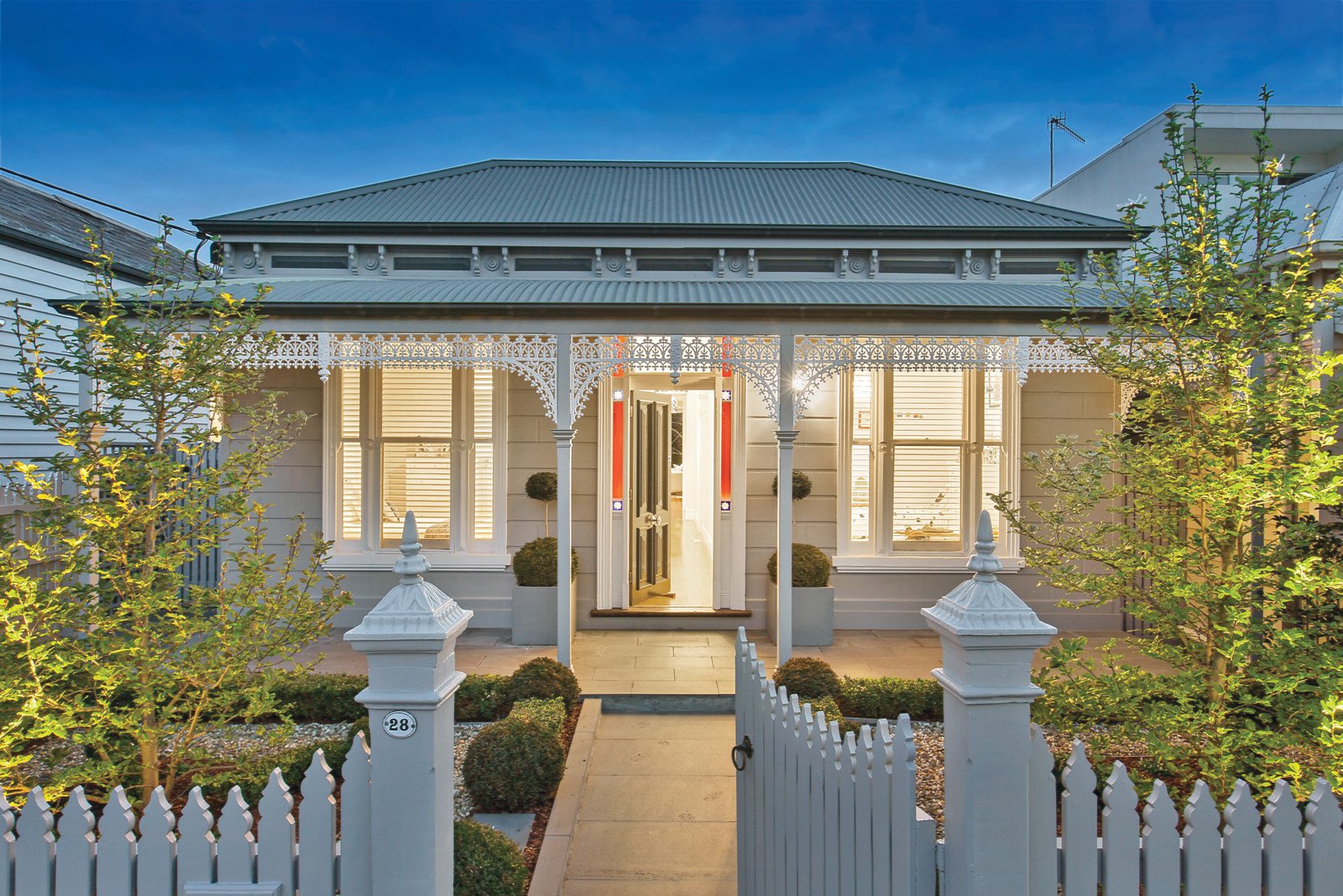 Gorgeous from the outset - this picture perfect double-fronted family home is framed by a pair of Ballerina Magnolia trees and introduced by a picket fence, low-maintenance bluestone paved and box hedge lined garden plus an iron lacework verandah. The instantly appealing interior has been colour coordinated to provide a very stylish ambience featuring ceiling roses and a central, Baltic Pine arched hallway flanking four bedrooms (two with BIRs), main with a sparkling ensuite plus a superb family bathroom, and a separate laundry. A generous family living and dining room is highlighted by floor-to-ceiling glass sliding doors and sleek CaesarStone kitchen equipped with stainless steel appliances and island bench, opening to a covered deck and private rear garden lined with a magnificent Maple and four Silver Birch trees. Other features include ducted heating & refrigerated cooling, solar panels/rebate, attic & garden storage, garden lighting, and remote off-street parking with rear street access.