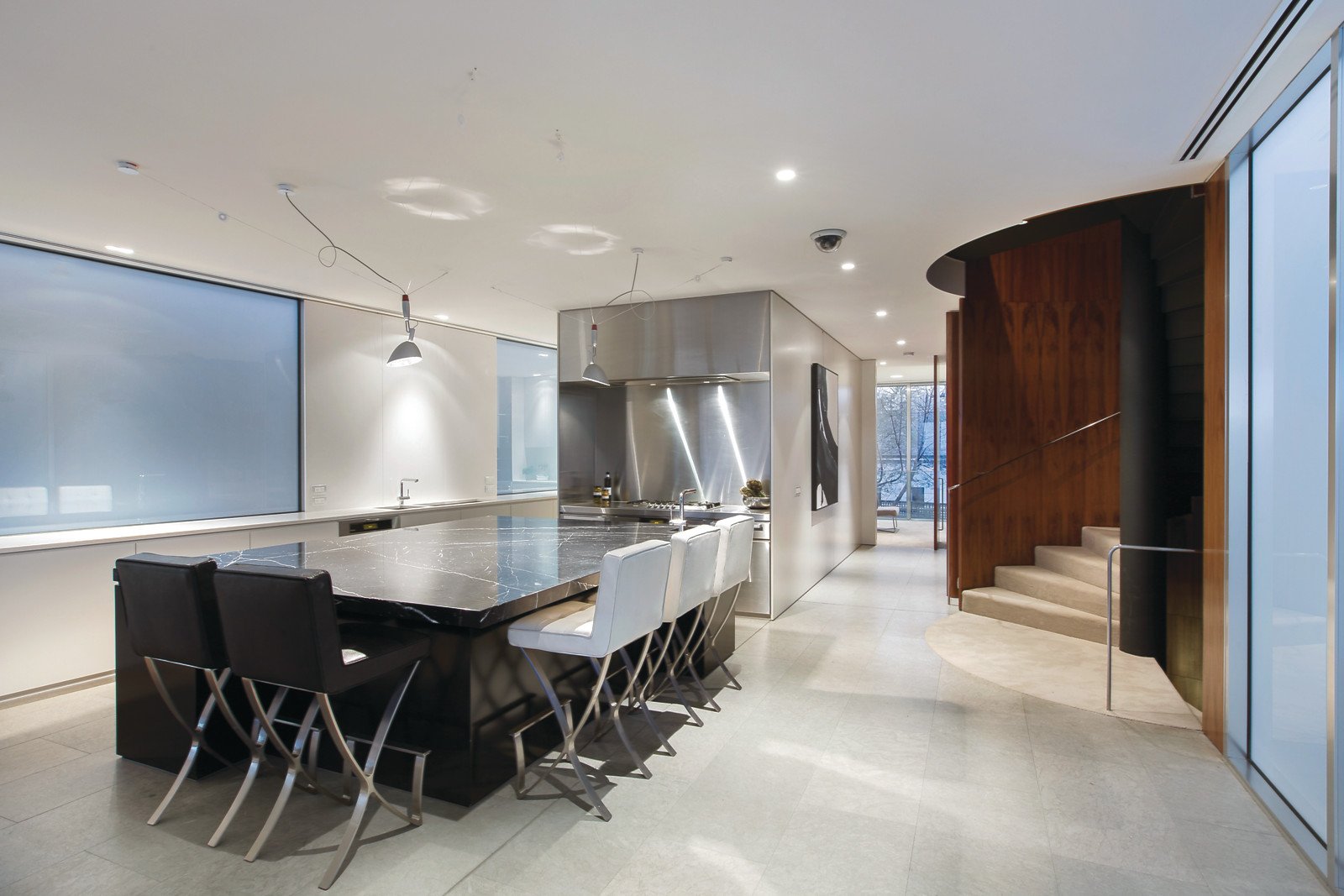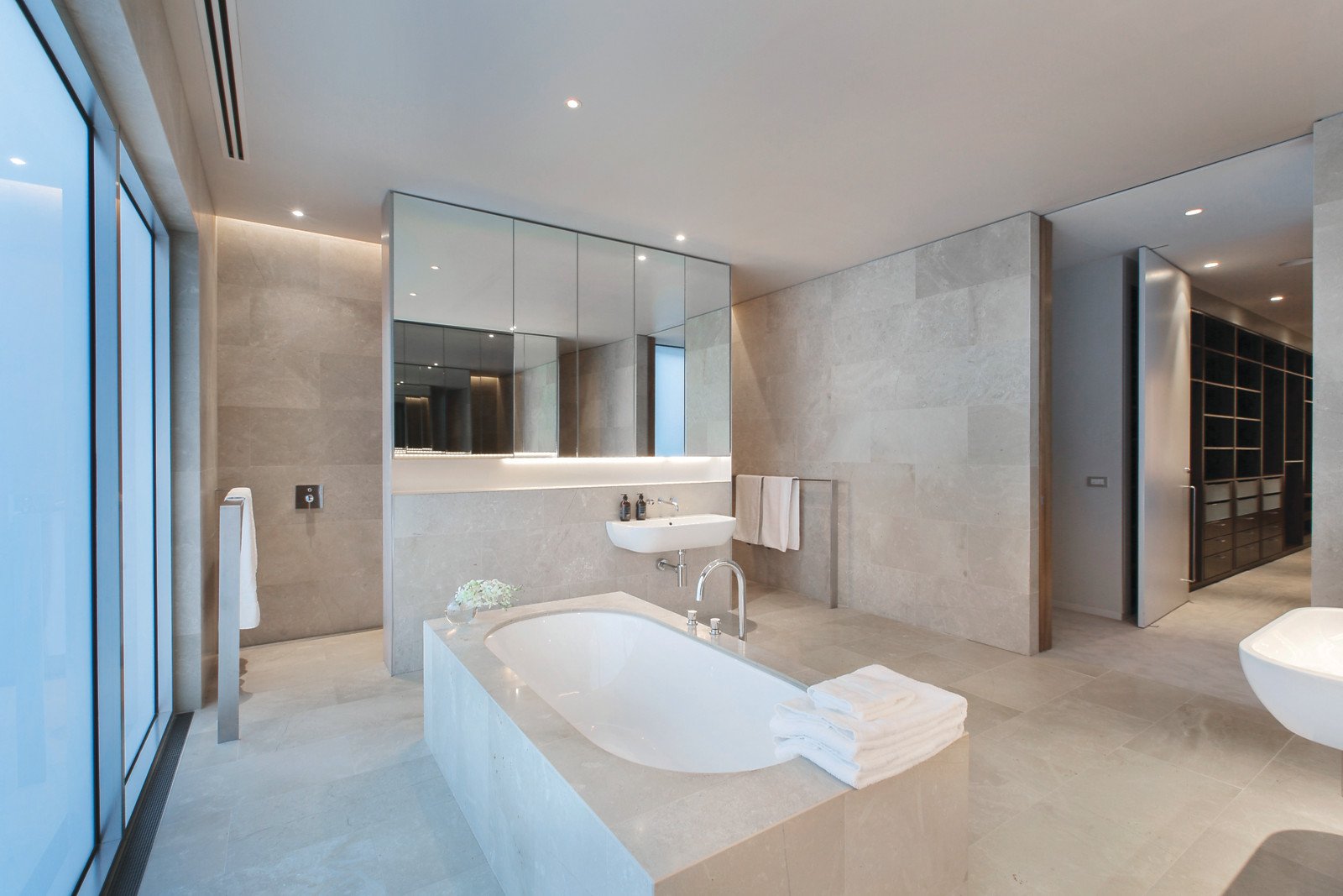 Stunning contemporary residence (by Carr Design) in a suitably spectacular context - the brilliance of this exceptional home is matched only by the beauty of its setting overlooking the bay, moments from St Kilda Marina, between the beach and Renfrey Reserve. Sublime upstairs living and dining areas featuring a full width balcony that sees the water and far beyond are accompanied by a kitchen equipped with Sicilian marble surfaces, Miele appliances, a huge butler's pantry and a separate, temperature controlled wine room. Two bedrooms and a superb bathroom share dynamic downstairs spaces with a rear projection, surround sound home cinema while upstairs dual studies contributes an further accommodation flexibility. A main bedroom with its own mesmerizing balcony bay views, probably the best fitted out dressing room in Port Phillip and flawless travertine bathroom occupies the entire top floor of this unforgettable home. Lift access to all levels, ducted heating/cooling, a north facing outdoor retreat and parking for up to three cars featuring turntable convenience and remote control access from Blessington Street are amongst the further attractions of this landmark address. Heated flooring, luggage room and video security are only some of the many, many features included in this spectacular modern masterpiece.