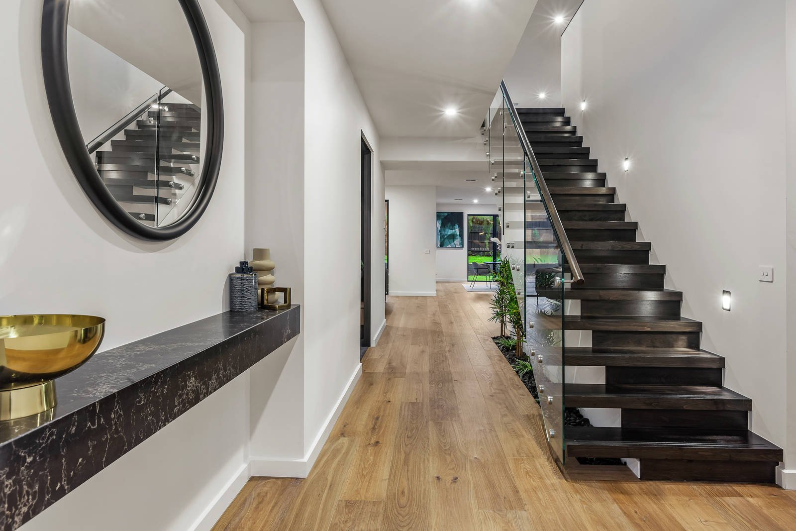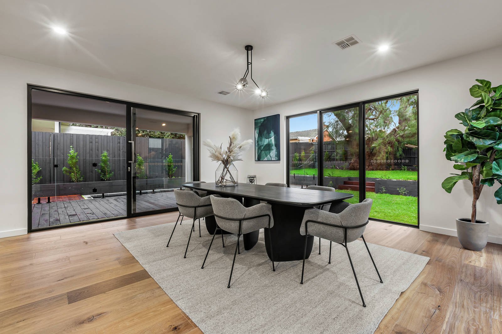 Experience a new level of luxury indulgence in a prime Brighton East location, with everything you want in a grand-scale home. Two levels of Carter Grange quality and family-focused spaces feature three living zones, five bedrooms and a study retreat, the ultimate gourmet kitchen and butler's pantry, idyllic outdoor living and a pool. You'll love this sought-after Gardenvale Primary School-zoned address, with Landcox Park one block away, Bay Street's cafes, shops and train station close by, and a neighborhood cafe around the corner. The streamlined façade is a fine introduction to this contemporary oasis. Choose from a high-end ground-floor or upstairs parents' retreat, and enjoy having a large family room with views out to the pool, garden and undercover deck, a cinema room/lounge, and upstairs kids' zone. Three bedrooms have sumptuous ensuites with black tapware, matte and gloss tiles, and a luxe look. Family living is so much easier with four bathrooms, a mud room next to the garage, two Miele ovens, a Miele dishwasher and additional sink in the butler's pantry, and a home workstation in the kitchen. Two bedrooms have huge walk-in wardrobes, and there's plenty of integrated storage in this well-planned home. Enjoy al fresco dining on the deck, admire the decades-old sprawling peppercorn tree, and appreciate having established landscaping. Inspection is a must to appreciate every feature, including French oak floors, a freestanding bath, stone benches in wet areas, Villeroy & Boch basins, floating cabinetry, double garage with a rear roller-door, and a remote-control gate for secure off-street parking.