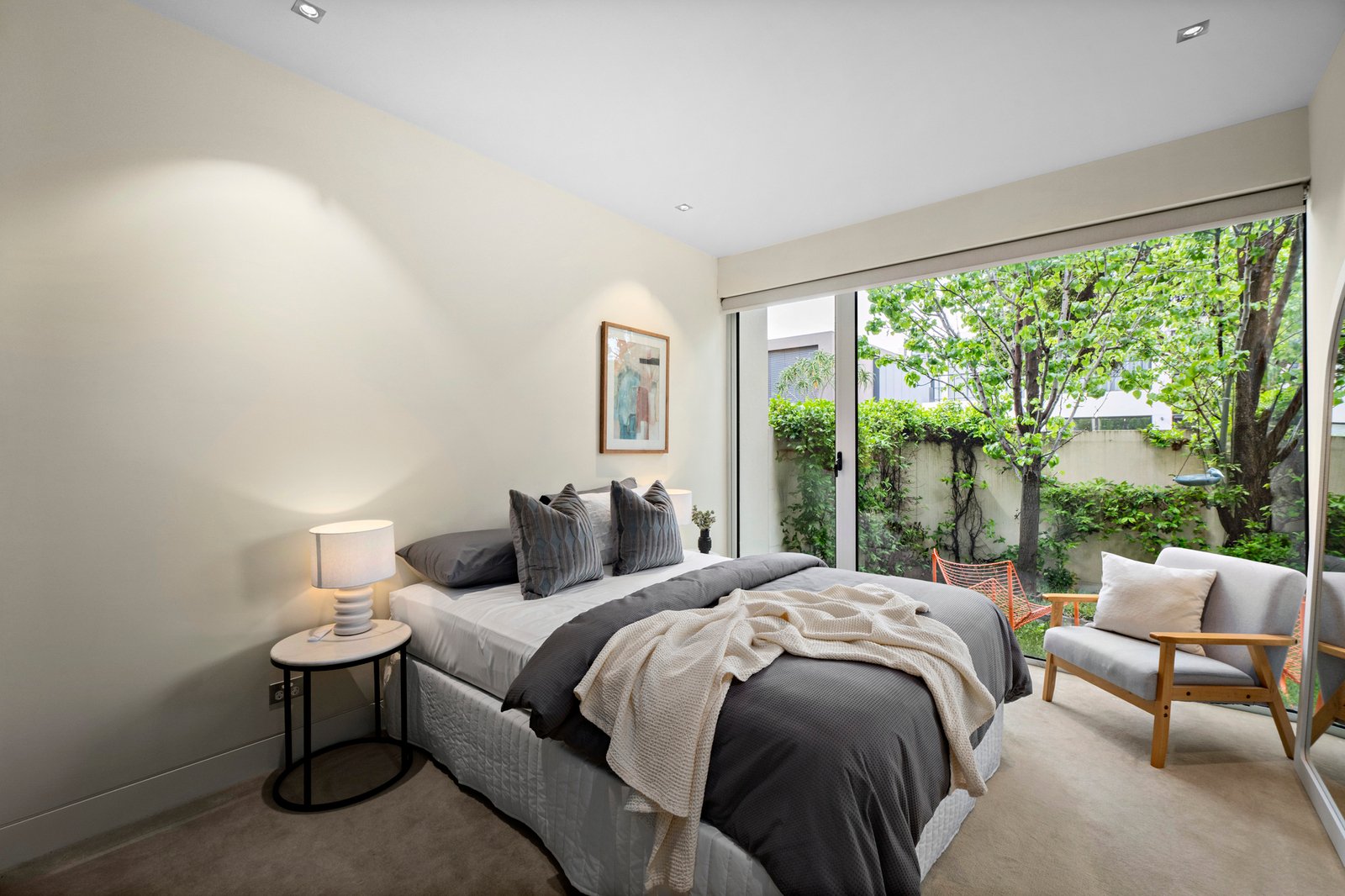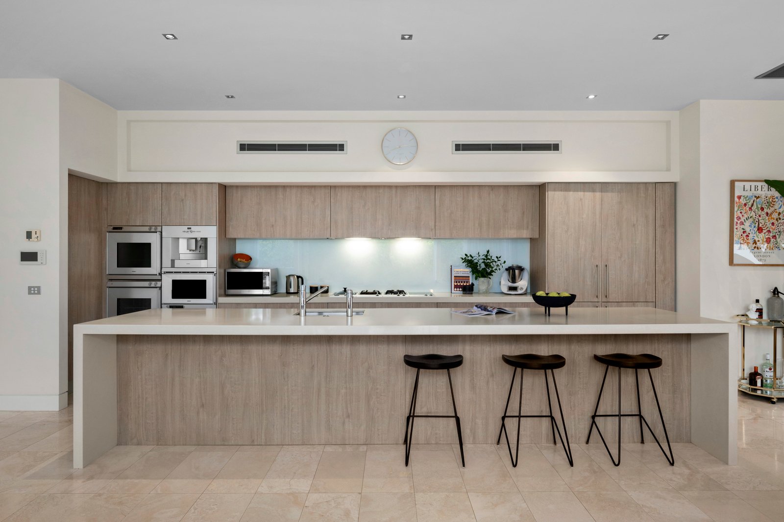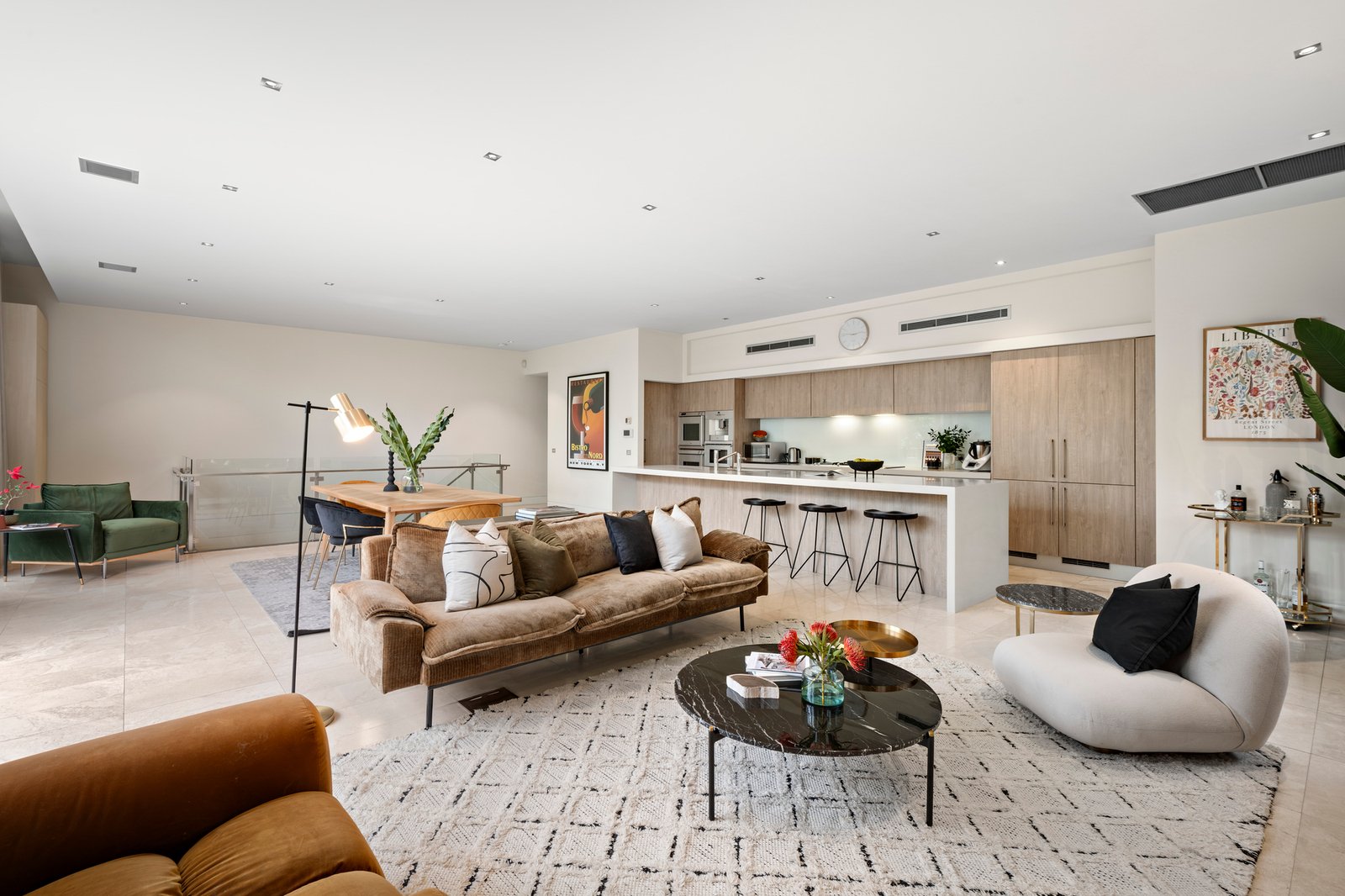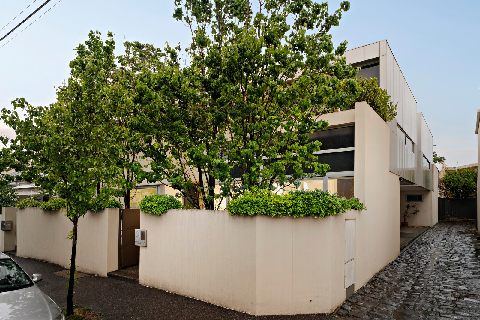 On a tranquil treelined street in a treasured South Yarra pocket, this architecturally designed contemporary residence features captivating proportions, vast expanses of glass and luxurious travertine appointments to create a compelling inner urban haven. Minutes from Fawkner Park, the Royal Botanic Gardens and Toorak Road’s shops and cafes, walk to the Prahran Market with ease and easily access trams and trains via South Yarra station. Step inside the wide entrance hallway that precedes three generous bedrooms including the luxurious primary bedroom complete with a wall of robes, luxe ensuite and a gorgeous picture window and garden outlook. The main family bathroom comes with a bathtub and walk in shower. A peaceful monochrome palette defines the first floor open plan living zone where north facing glass connects to a divine alfresco terrace with city views and vistas of the South Yarra skyline. Gas plumbing for a barbecue, irrigated planters and a view of the leafy streetscape create a restful haven, and an idyllic settling for memorable entertaining. The kitchen is superb featuring an integrated dishwasher, a suite of Gaggenau appliances, Liebherr French door fridge and freezer, Zip HydroTap, ample storage and a striking stone island. Attributes include double glazing, a powder room, Euro laundry, ducted heating and cooling, video intercom, security system and a double garage with remote access and internal entry.