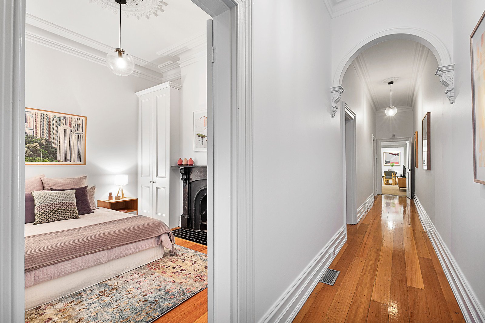The stylishly renovated interior features preserved period attributes including ceiling roses and a long arched hallway flanked by three bedrooms, or two plus a study if desired. Through to a full-width living room, light & bright kitchen/dining fitted with 2-pac cupboards and Euro appliances; plus a pristine bathroom, separate WC and laundry. All opening to a deck and paved courtyard - perfect for outdoor dining and entertaining. Other features of this very desirable home include fireplaces, low maintenance gardens and rear lane access with remote gate and optional off-street parking.