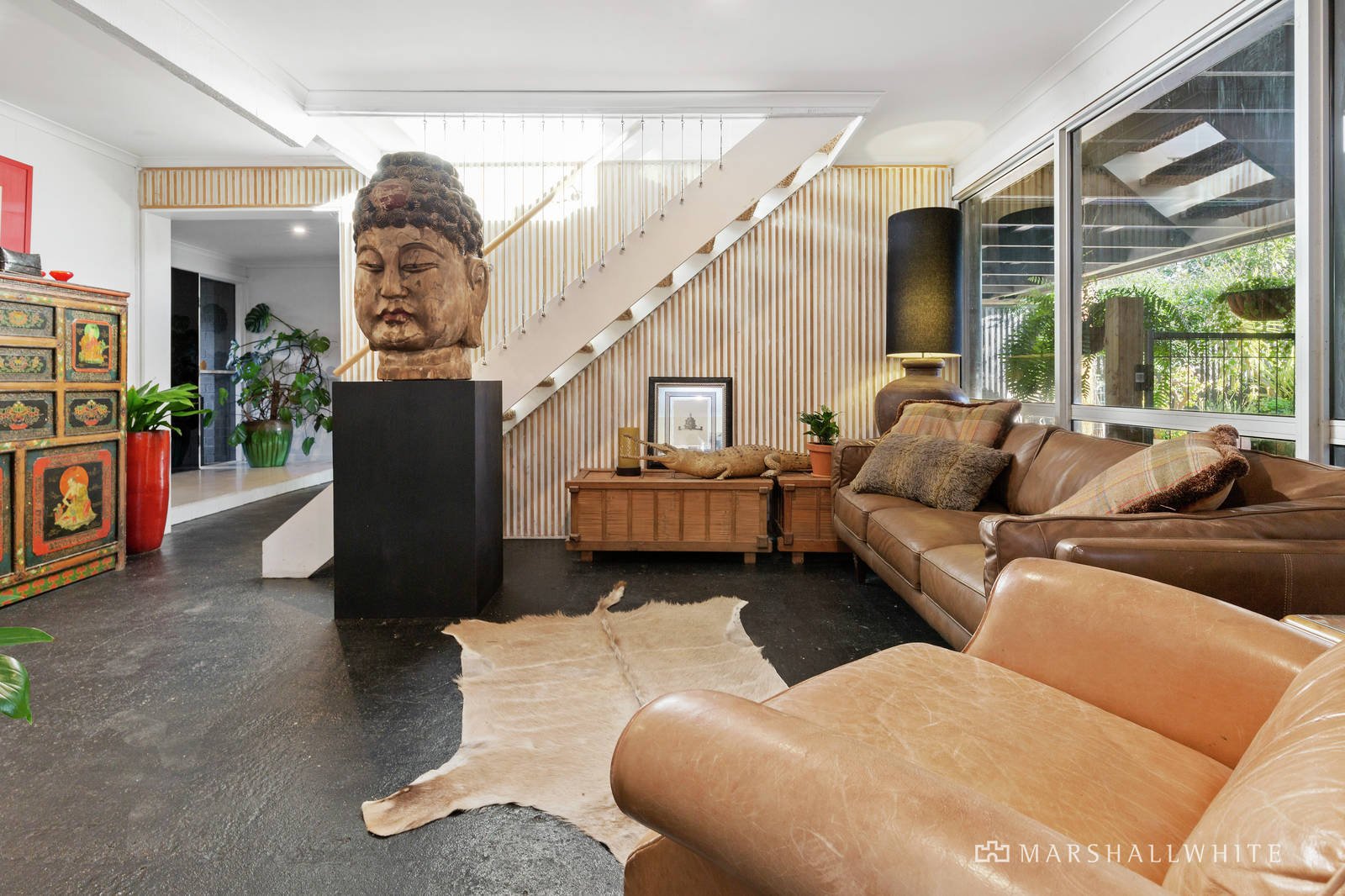 This double storey brick residence has been gifted with an industrial style renovation that integrates stylish cool and warm finishes. This combined with uninterrupted bay views and the stunning private gardens presents a tantalizing package that is a must to inspect.