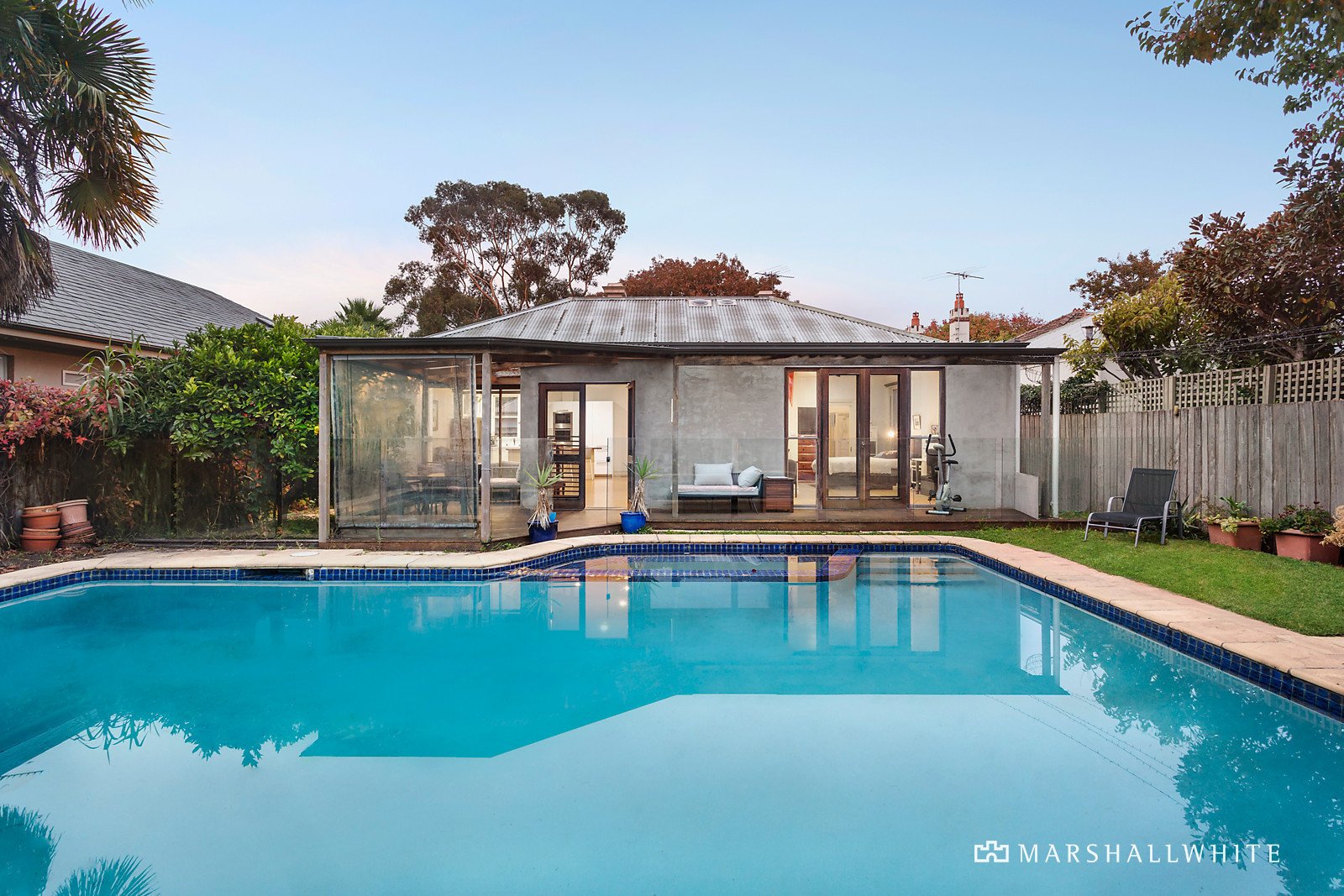 The large, concrete in-ground swimming pool is solar-heated and has a gas-heated spa, and is set in sandstone paved surrounds. The outbuildings, with plumbing and electricity, offer multi-purpose usage possibilities, and currently serve as a pool house, with wet bar facilities, and a studio/bungalow with home office/gym facilities. The rear lane access amplifies the possibilities for separate accommodation, rear garage or as a comfortable family retreat while renovating the main house.