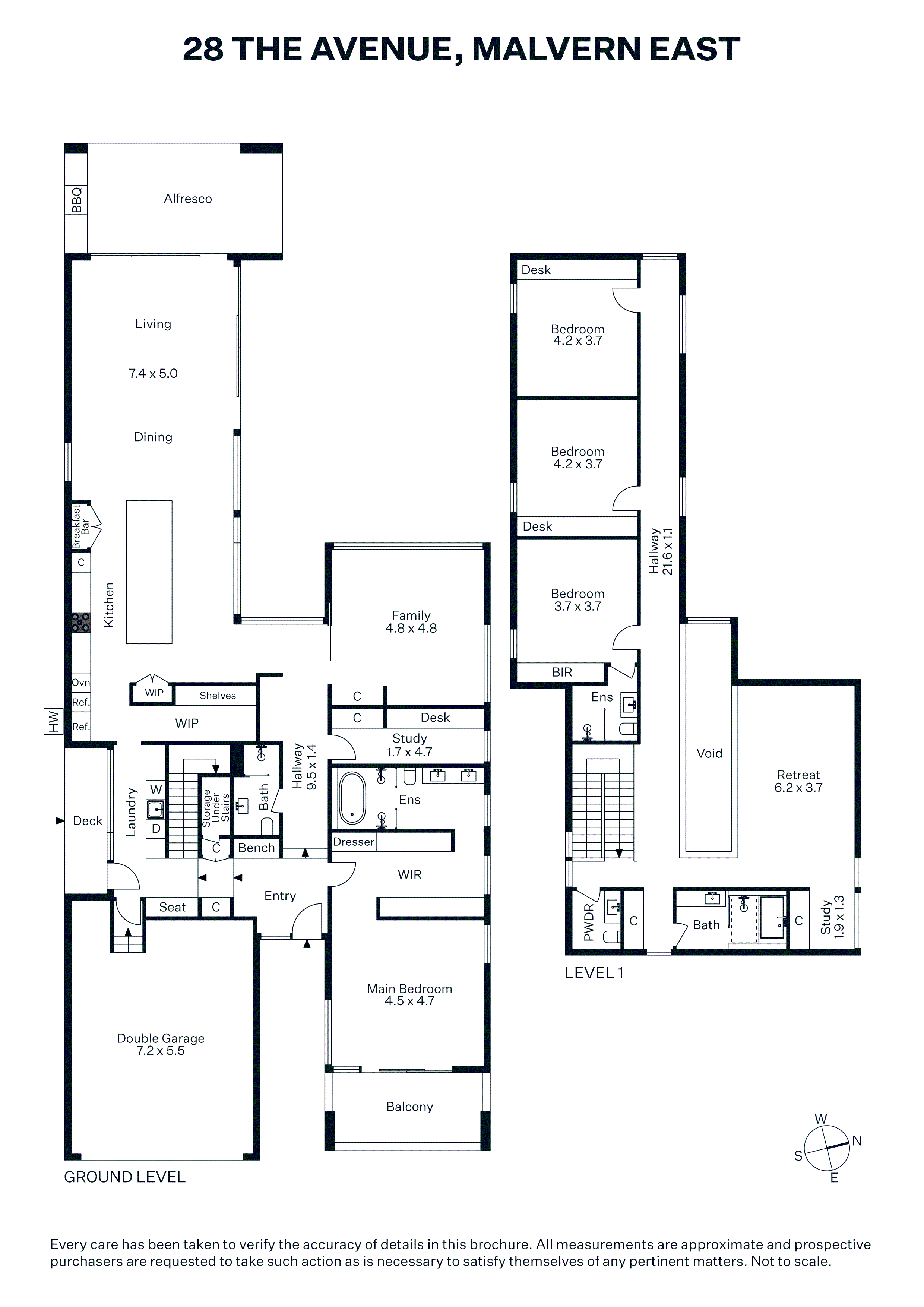 The palatial main bedroom with dressing room and lavish ensuite with freestanding bath opens to its own private deck overlooking the garden. A purpose designed children’s zone upstairs comprises a second bedroom with robes and designer ensuite, two double bedrooms with robes and desks, a stylish 4th bathroom and spacious retreat.