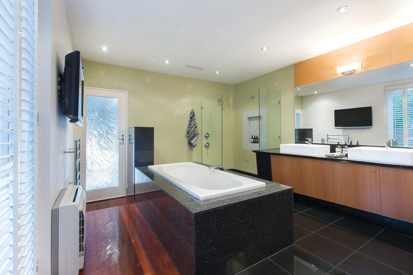 Retaining all the hallmarks of its Victorian origins, this architecturally transformed residence, one of St Kilda's finest, occupies a privileged landmark position adjacent St Kilda's foreshore, iconic Luna Park and The Palais Theatre. Three stunning bedrooms, two with French doors to a side courtyard including a striking main bedroom with dressing room and six star ensuite featuring freestanding bath. Upstairs front living and dining domain with balcony showcasing Bay views precedes a central kitchen boasting granite benchtops and a full complement of Gaggenau appliances and family living room opening at the rear to a covered entertaining deck and heated horizon edge pool. Soaring ceilings, glossy floorboards, three open fireplaces, efficient heating /cooling, powder room, monitored alarm, secure video intercom, plantation shutters and extra large double garage via rear ROW.