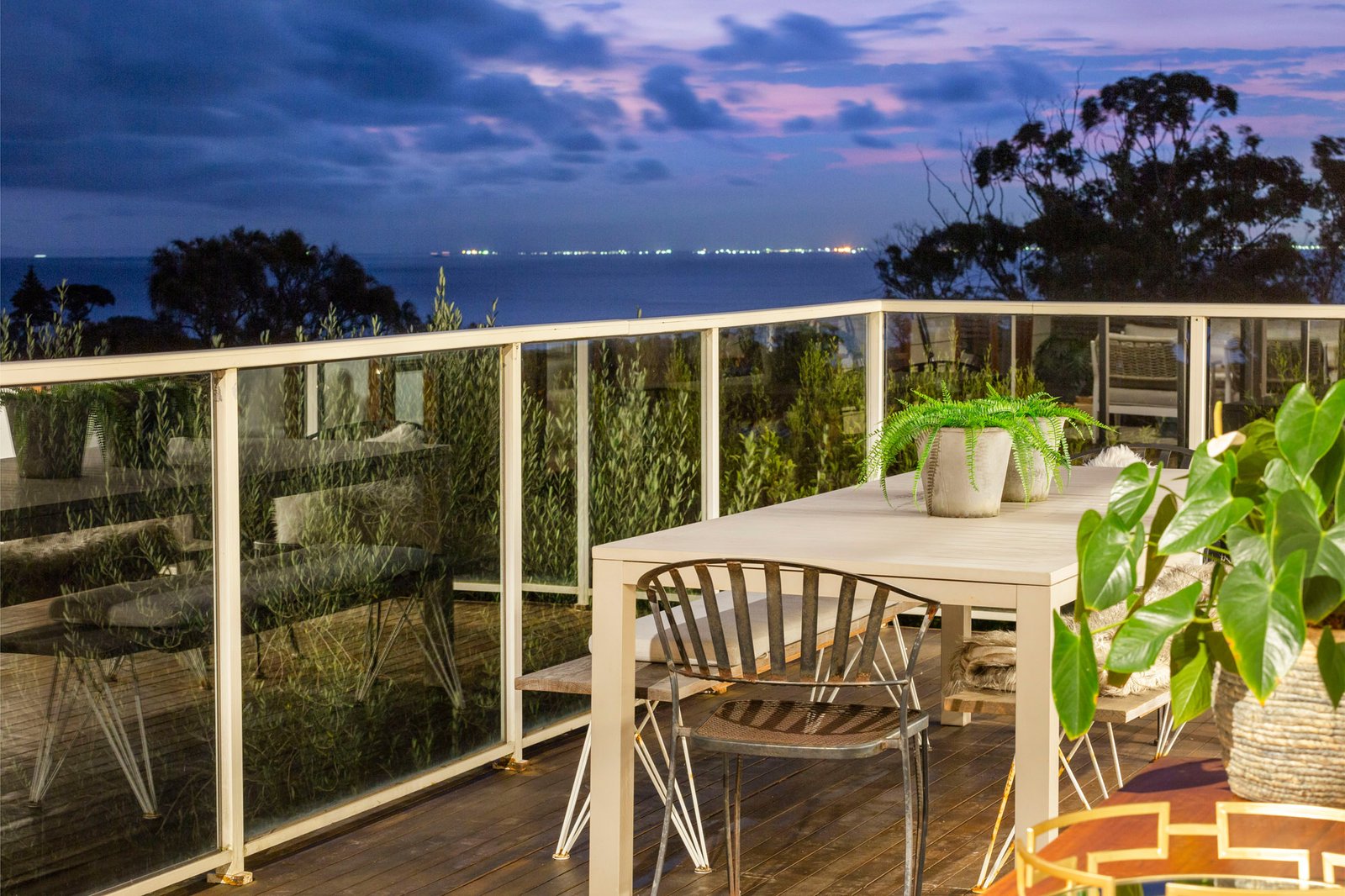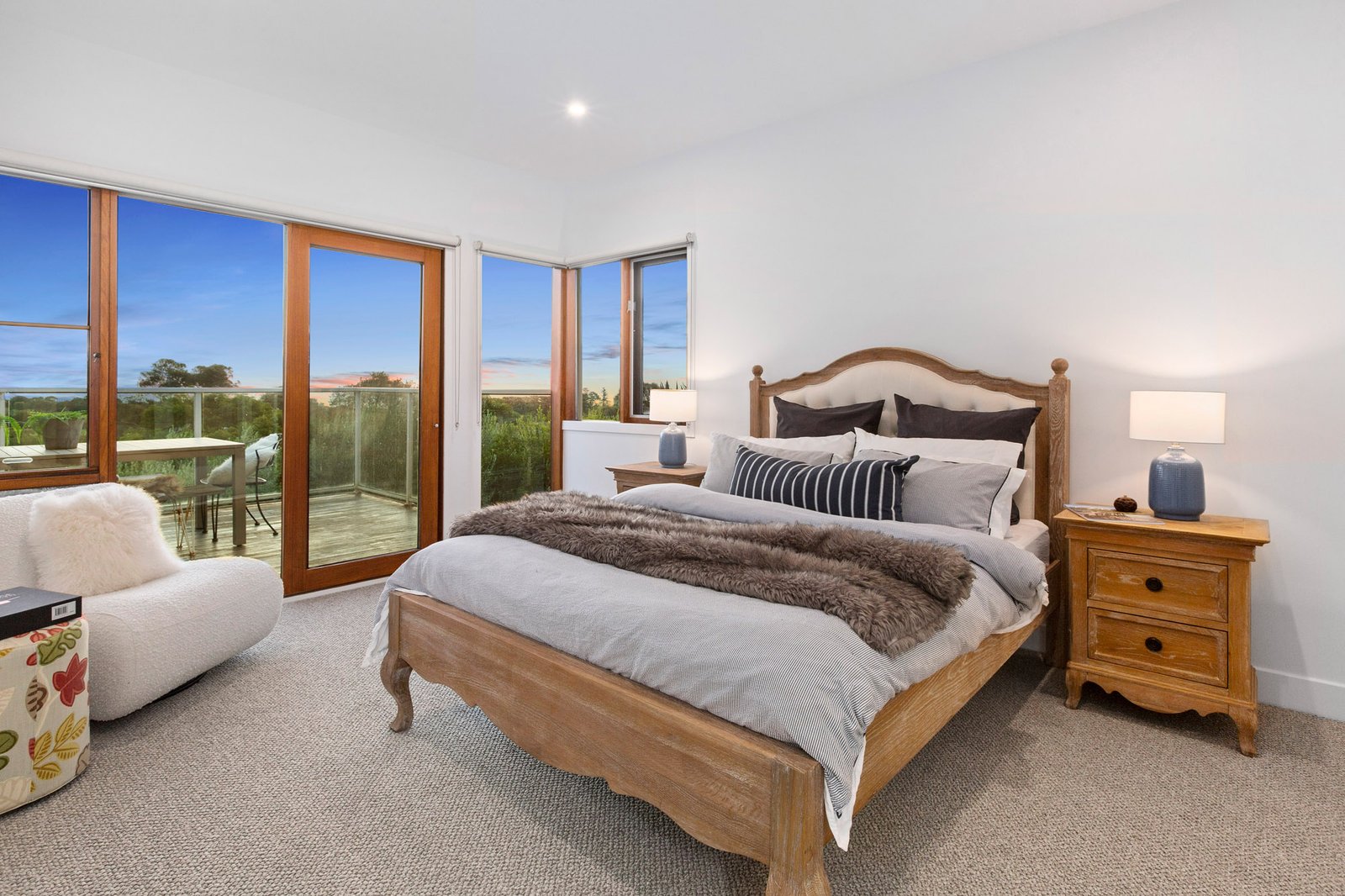 Upstairs, the amazing views are on show from all aspects including the stone gourmet kitchen equipped with a 900 mm Kleenmaid cooker, the spacious living and dining area with gas log fire heater, and the broad, full-width alfresco entertaining deck, with undercover zone. Also designed to celebrate the elevated vistas, including epic autumn sunsets and winter storms rolling across the Bay, is the zoned main bedroom suite, with a large fitted walk-in robe, and ensuite with built-in bath, walk-in shower, and twin vanity.