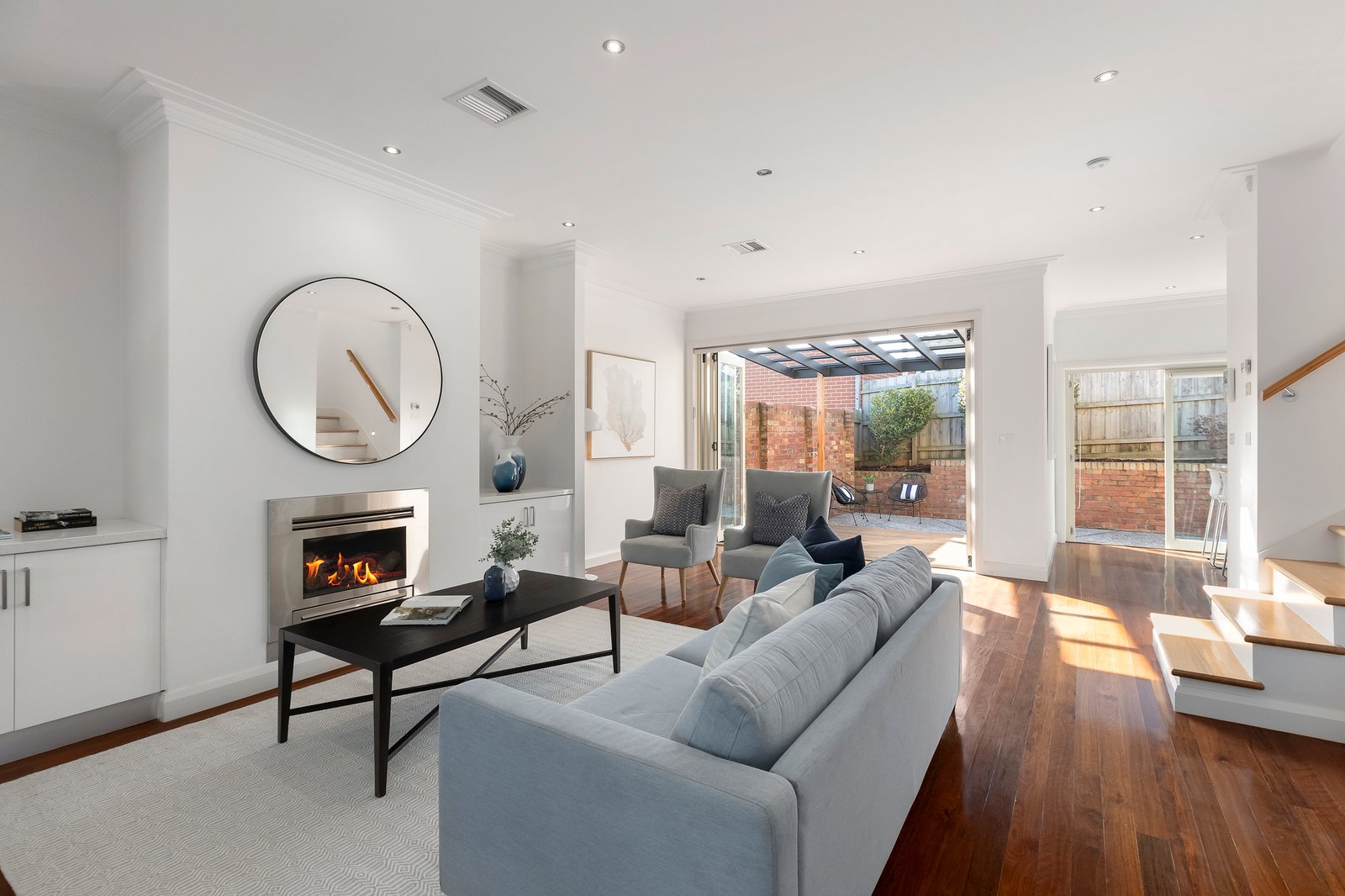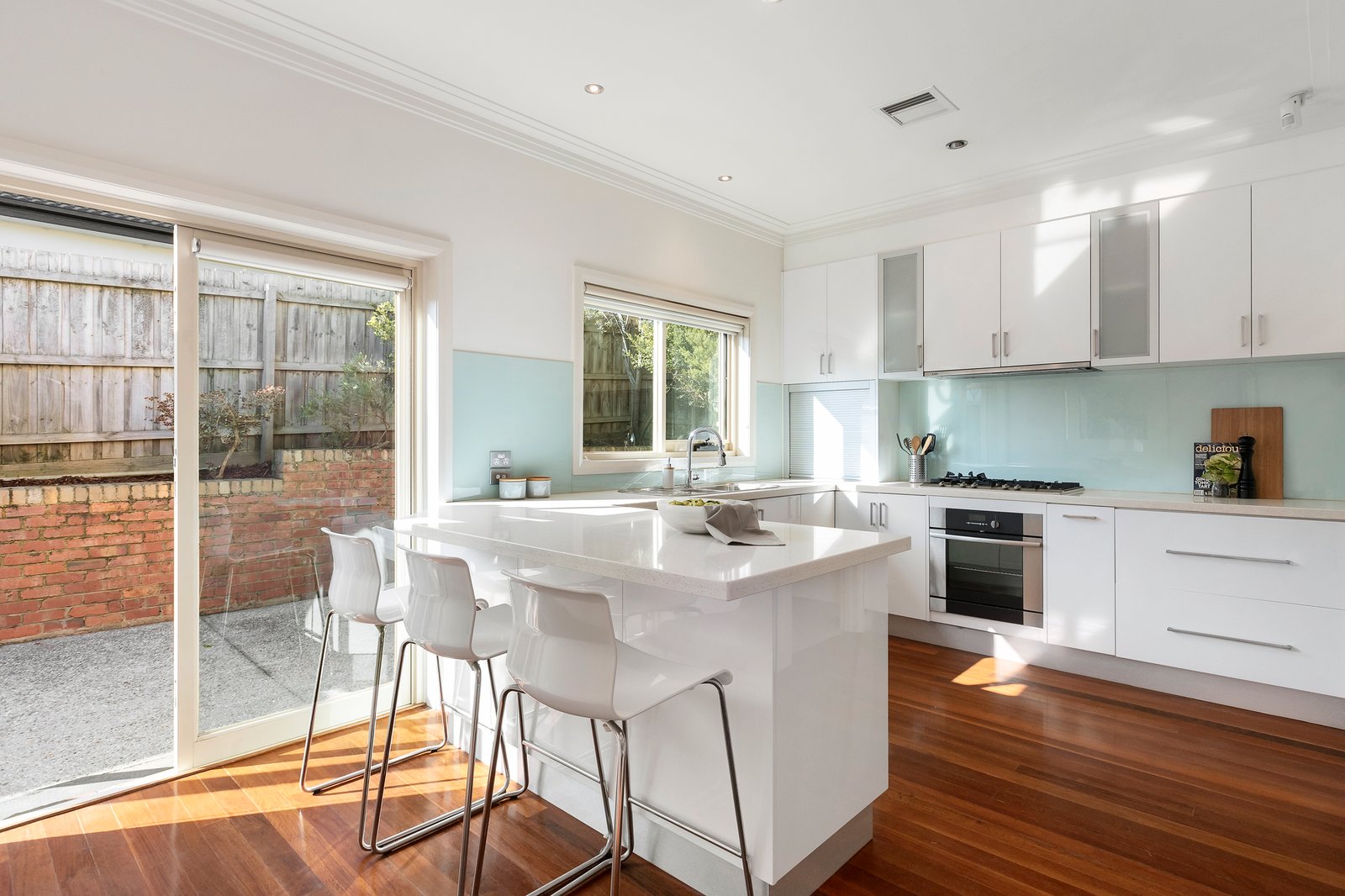 The existing town residence features a stylish contemporary interior with a preferred northern rear aspect, plus both tall and large windows delivering an abundance of natural light to the interior spaces. With highly polished hardwood floors flowing to a downstairs main bedroom including built-in robes and a pristine ensuite; a further two bedrooms are located upstairs alongside a study area, powder room and family bathroom. In addition, downstairs features a spacious living and dining room leading to a sleek kitchen equipped with caesarstone bench tops, 2 Pac cabinetry and Asko appliances with an adjacent powder room and a separate laundry. All opening through bi-fold doors to a deck and sunny northern courtyard – ideal for alfresco dining or entertaining. Other features include video intercom entry, alarm, ducted heating, cooling and vacuum, quality fixtures and fittings, fully-tiled bathrooms, solar panels, under house storage, low maintenance gardens and a remote garage with rear access.
