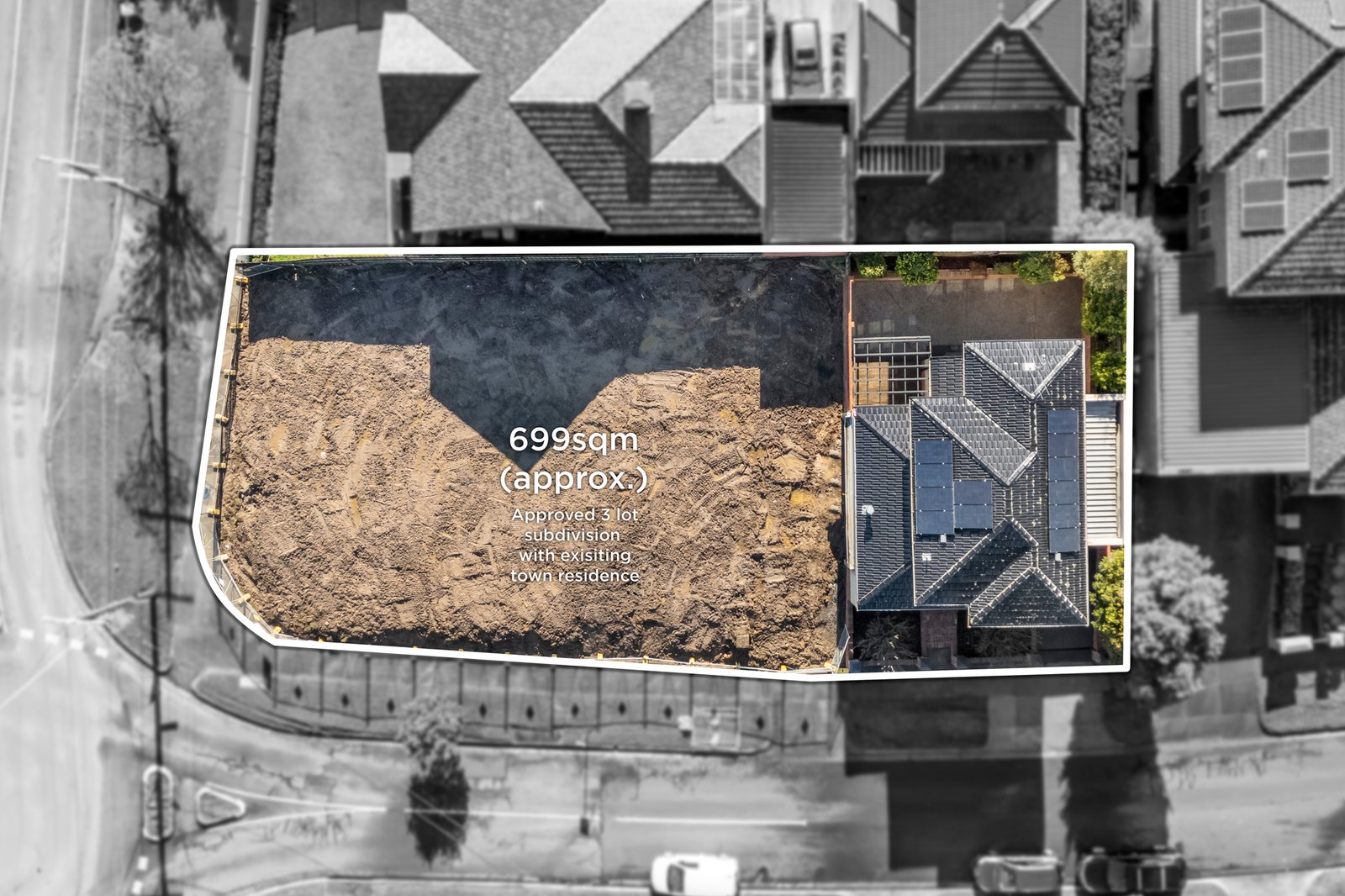 A rare offering of a family town residence combined with an elevated corner allotment spanning a total land area of 699sqm overlooking the leafy Ashwood Reserve and Waverley Hockey Club. The offering includes an approved permit for a three-lot subdivision; including the existing two-storey town residence and two vacant, already cleared allotments. Given the demolition has been done, the development is ready for immediate commencement of additional builds (STCA).