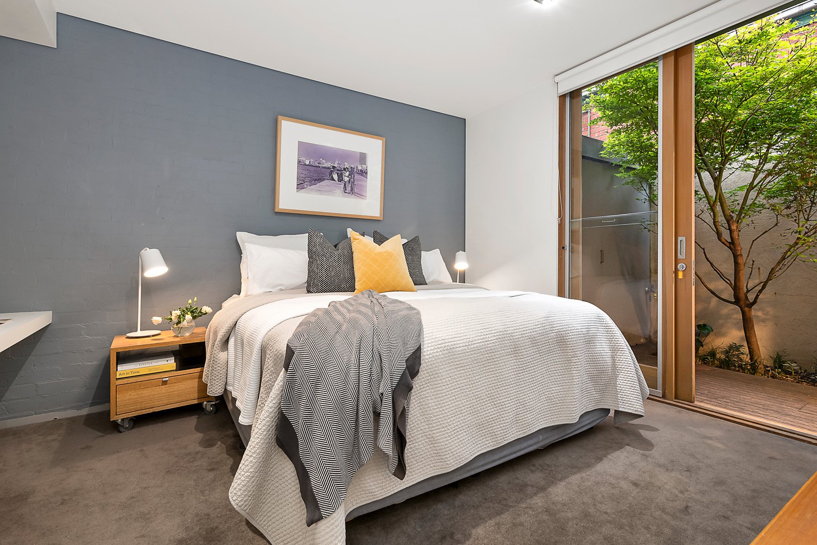 Showcasing signature Neo Metro design and quality, this sensational warehouse inspired contemporary residence delivers a sophisticated, versatile and spacious inner bayside lifestyle walking distance to the market, light rail, Albert Park Village and schools. Terrazzo style polished concrete floors set the tone in the wide entrance hall where timber stairs ascend to a clever fitted study and the generous light-filled living room (gas log fire) beneath a raised ceiling. The sleek gourmet Miele kitchen appointed with marble and stainless steel benches and an inviting dining area open to a lovely private Bougainvillea covered north-facing deck offering city glimpses. On the level above, the main bedroom with chic en suite, built in robe and a second fitted study enjoying spectacular city views. Two additional double bedrooms with built in robes and a stylish bathroom are on the ground level with a private courtyard/light-well. Finished with impeccable style, it also includes video intercom, ample storage sun-awning, laundry, storage and secure off street parking for two cars.