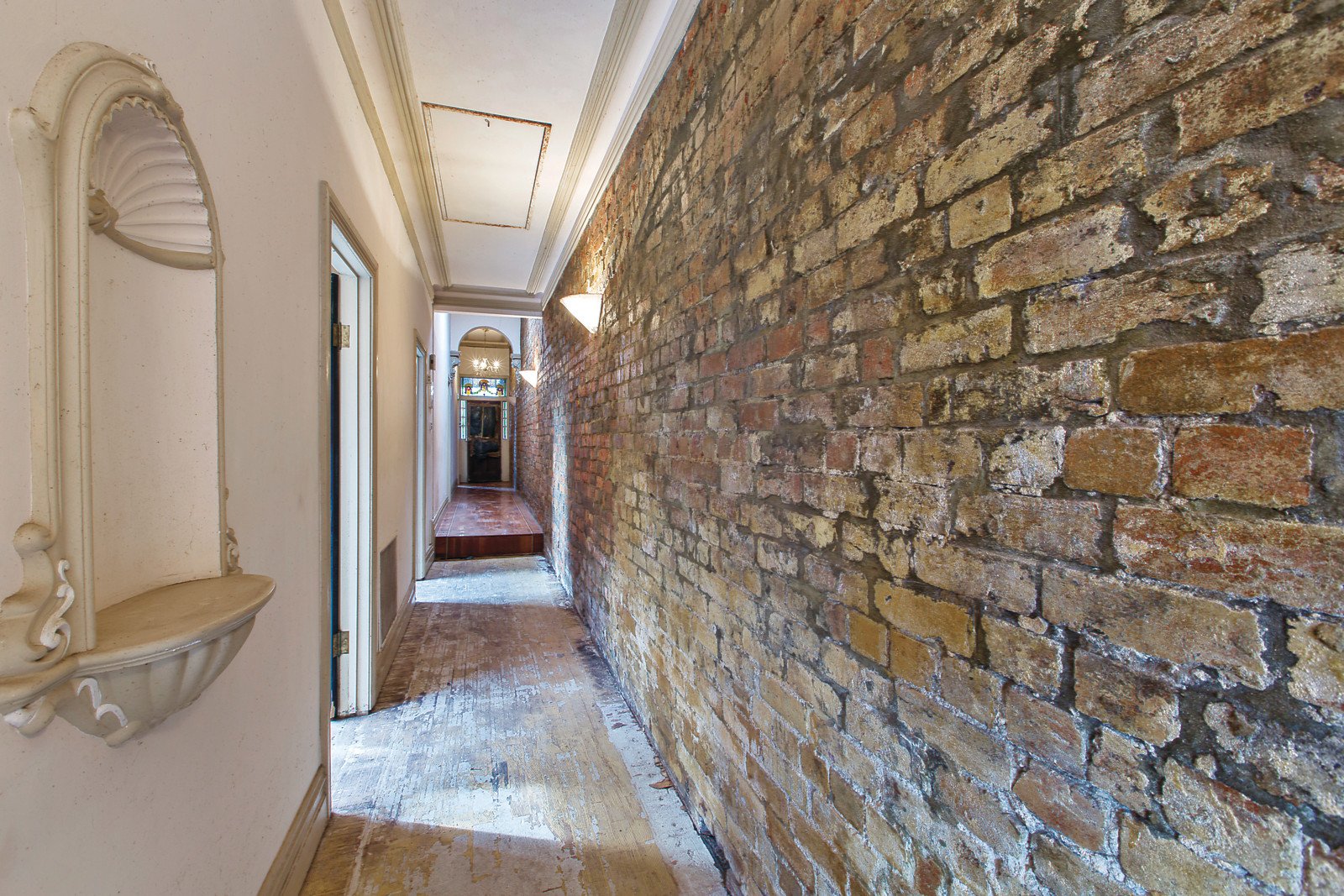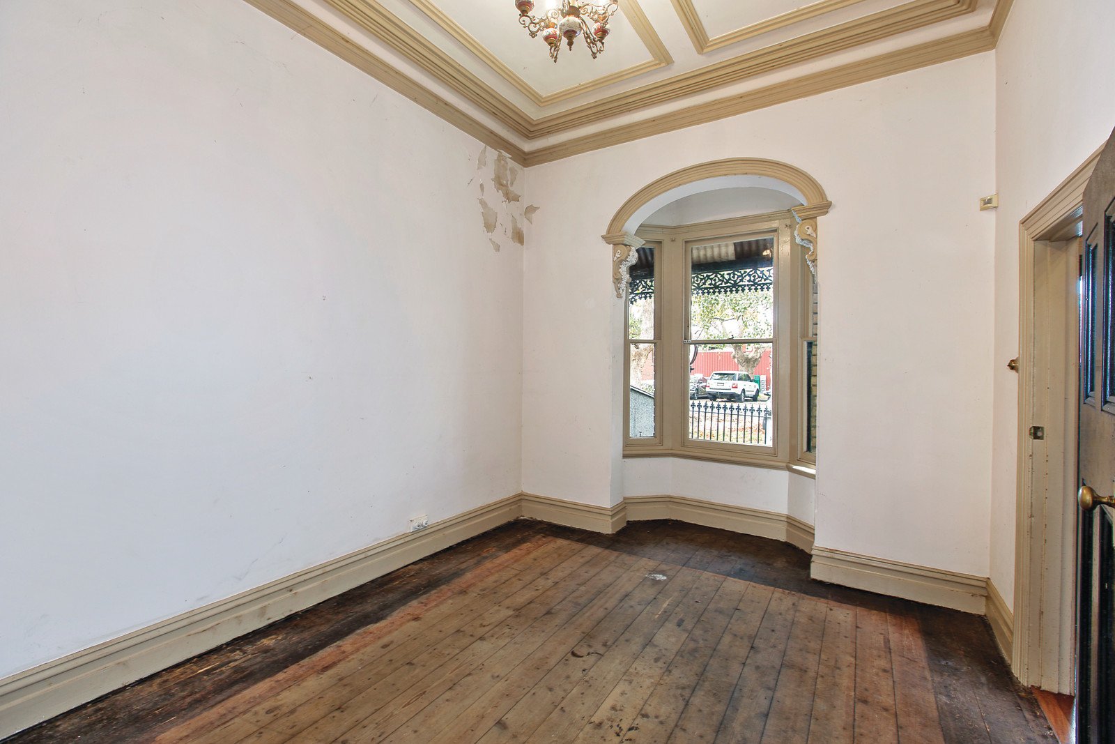 An exposed brick wall and parquetry floors distinguishes the arched hallway. A large main bedroom with marble open fireplace, ornate ceiling and Baltic pine floors is accompanied by a second double bedroom also with Baltic pine floors, open fireplace and built in robe, a third bedroom and bright bathroom opening to a light-well. The capable sky-lit kitchen featuring stone benches and a generous living and dining room open to the deep sunny garden with garage accessed via Neville St. Land size: 250sqm approx.