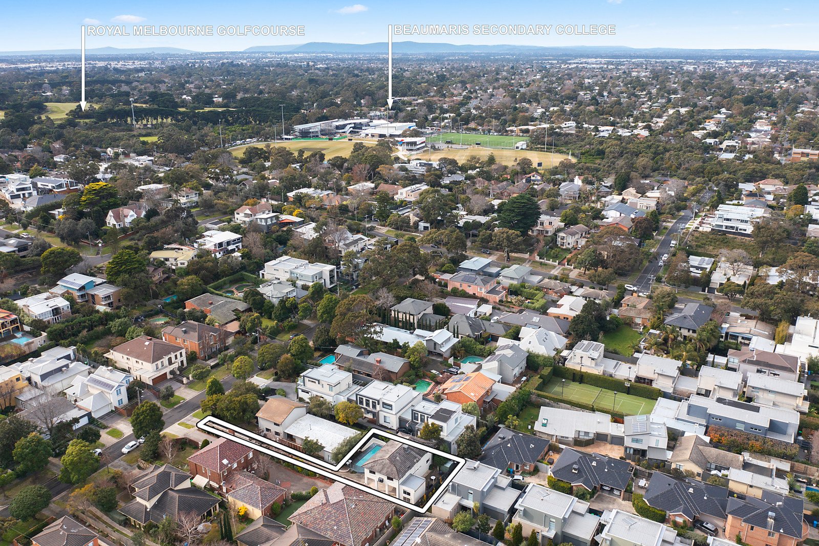 Discover the ultra-private location, the luxe new look and the spaciousness of this five-bedroom hidden wonder with separate guest accommodation. In this first class location, experience the peace and tranquillity of this beachside home, with zoning for Beaumaris Secondary College, Sandringham Secondary College and Mentone Girl's Secondary College, and just moments from Donald McDonald Reserve, local shops, cafes, boutiques and restaurants of the Concourse and public transport. Set well back from the street at the end of a gated driveway, the sense of privacy is superb. Recent renovations have transformed every room, including living zones and bedrooms on both levels, the marble kitchen, and two beautiful bathrooms. The light-filled family room and dining room are stylish spaces with a gas log fire and solid timber floors, and the gourmet kitchen has two Bosch ovens, induction cooktop and contemporary black tapware. Luxuriously appointed family bathroom with laundry option features a twin-head shower, pendant lighting and marble-inspired tiling, and the ensuite is a sumptuous retreat with a bath, oversized sink and plenty of storage space. Love the glass-fenced pool in summer, the convenience of a self-contained guest suite or teenage retreat with a lounge and loft bedroom, and the family-friendly zoning with a separate lounge. Feature-rich for easy living, with a remote-control entry gate, ducted climate control, leafy views, and low-maintenance landscaping.