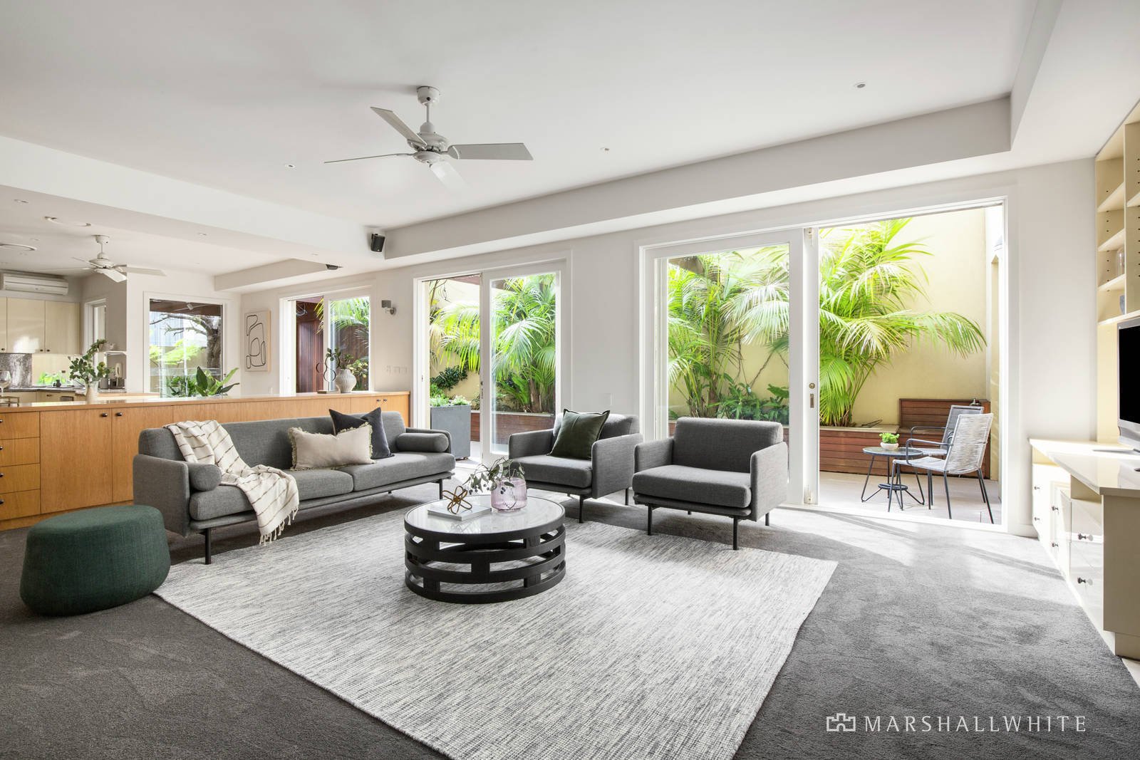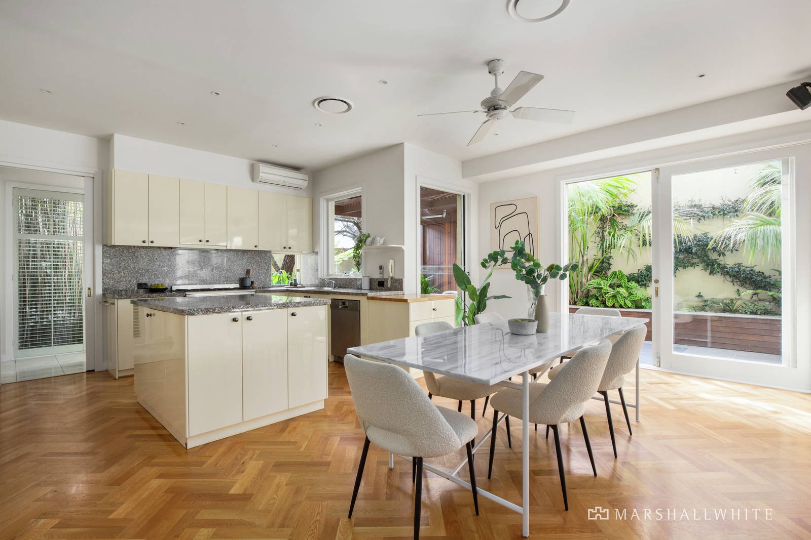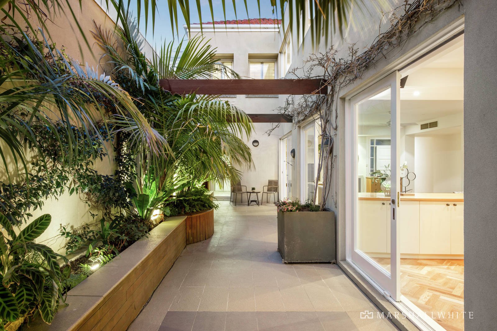 Large and luxuriously appointed townhouse has the perfect lifestyle address, with the beach at the end of the street, direct access to Elsternwick Park, and Elwood's cafes close by. Tucked away in the popular Brighton Gate complex, the north-facing orientation, quality interior and private outdoor living are outstanding. Every room and landscaped space is light-filled, including the open-plan living and dining zones, entertainer's kitchen, and party-size courtyard garden. The three-bedroom spaciousness includes a main bedroom with a walk-in wardrobe, additional built-in wardrobes, ensuite and a bal-cony. Precision planning is at the heart of the kitchen, featuring 60cm and 90cm ovens, wine storage and plenty of bench space. You'll love cooking outdoors in the fan-cooled and heated barbecue area, relaxing inside in the large living zone with a gas fireplace and custom-made cabinetry, and the convenience of the double garage's direct house access. Move in and appreciate having reverse-cycle and split-system air conditioning, ceiling fans, herringbone parquet floors and new carpet, garden lighting and a watering system, and onsite guest parking.