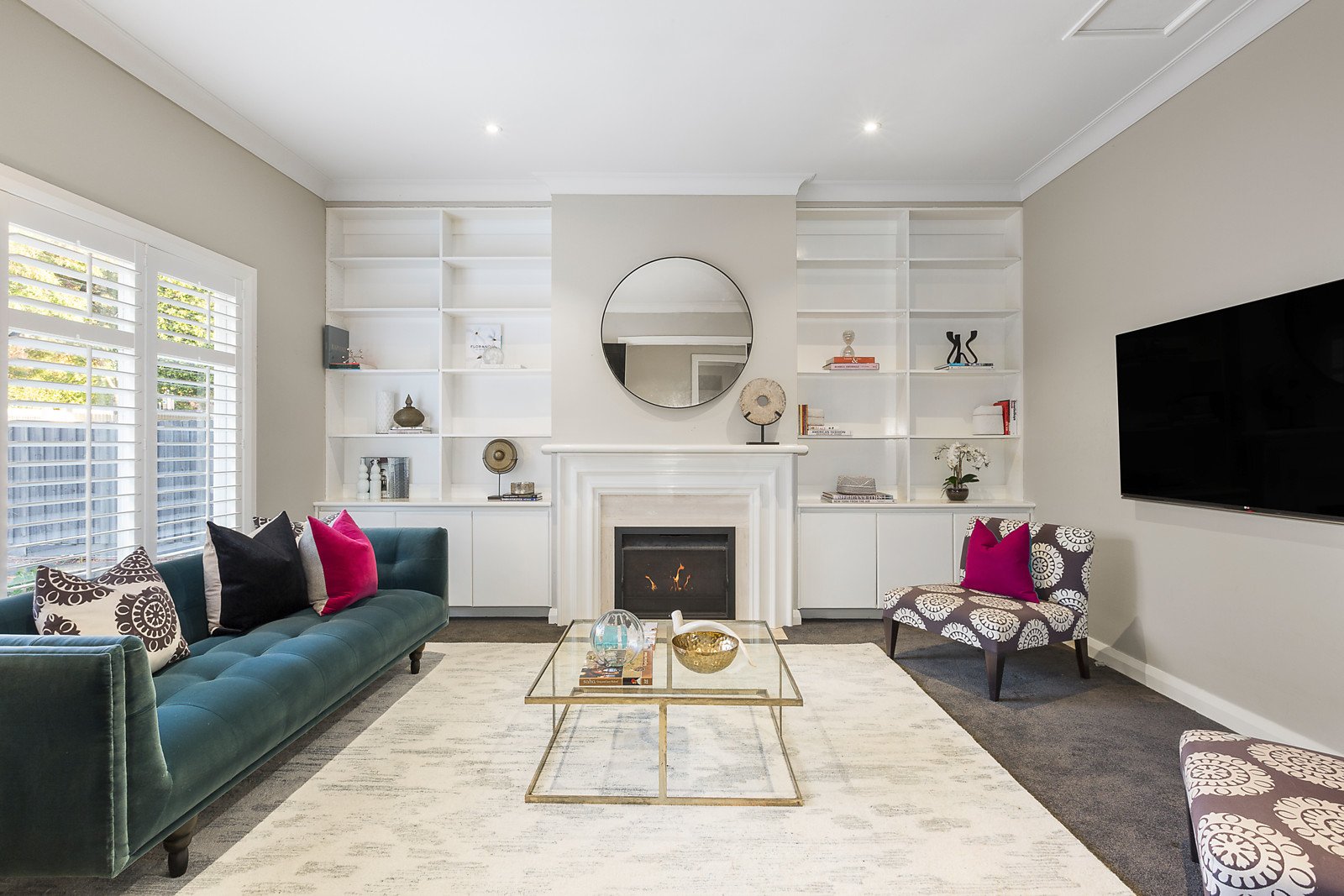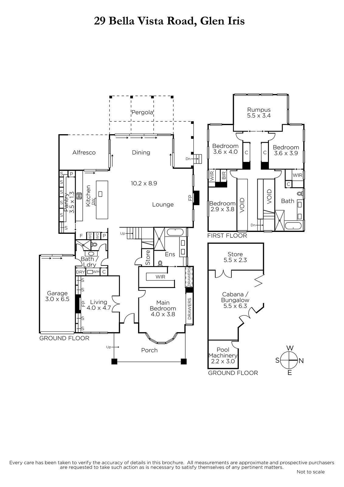 Behind the classic façade, wide oak floors add a contemporary edge to the imposing central hall leading to a fabulous media or sitting room with open fireplace and to the expansively proportioned living and dining room with gas fire and a sleek white stone gourmet kitchen appointed with premium V-Zug Swiss appliances and a butler's pantry. Huge glass sliders open the living spaces completely to the landscaped northwest private garden with covered al fresco deck, picturesque pool and spa and a versatile cabana/gym or entertainment room. The beautiful main bedroom with bay window, walk in robe and designer en-suite and a 2nd chic bathroom are serenely set downstairs while a children's zone upstairs comprises three additional bedrooms with walk in robes, a lavish bathroom and large retreat.
