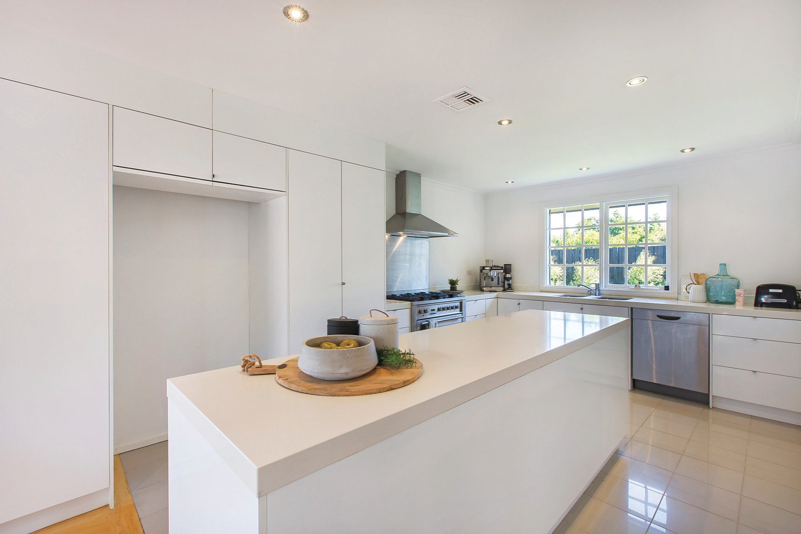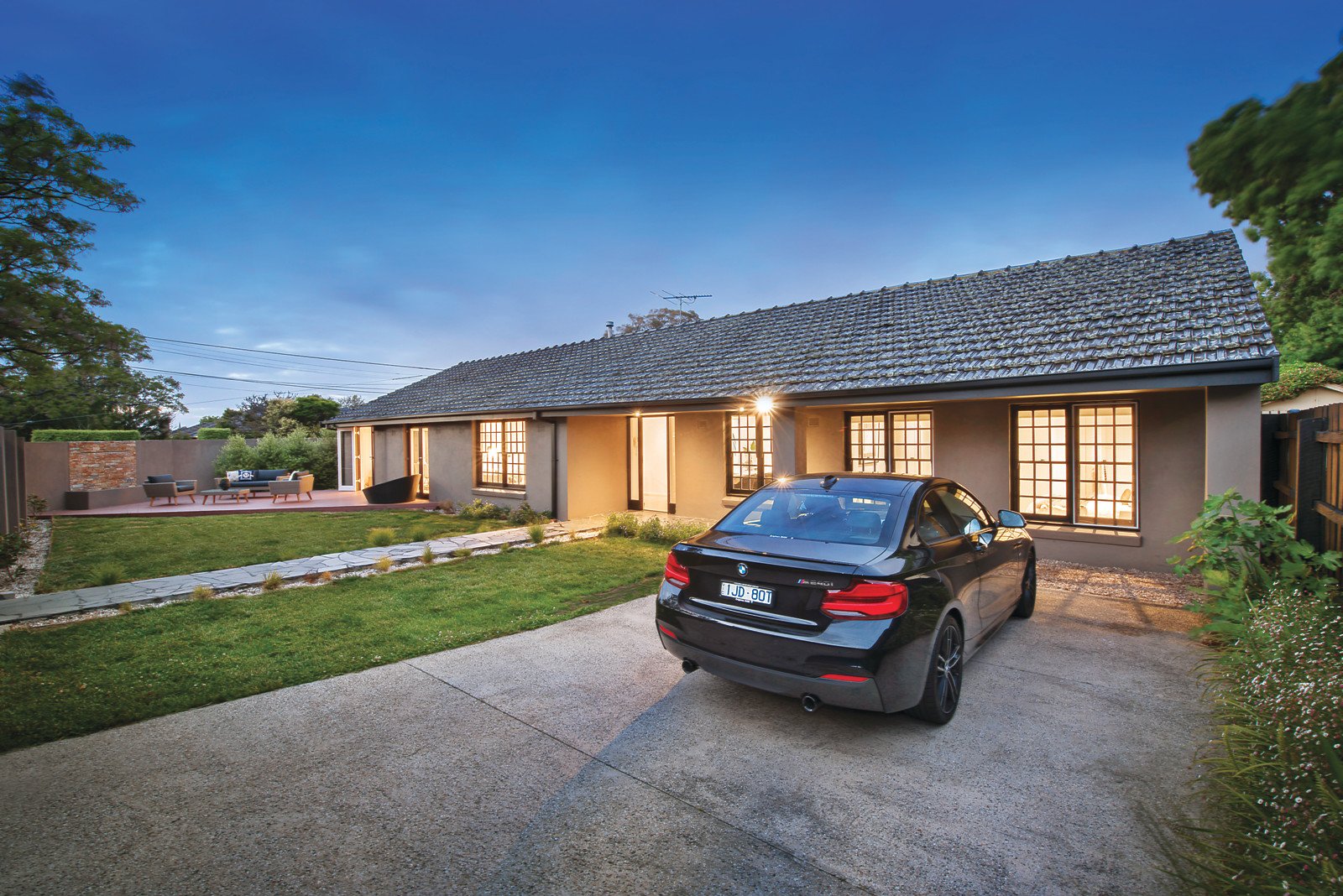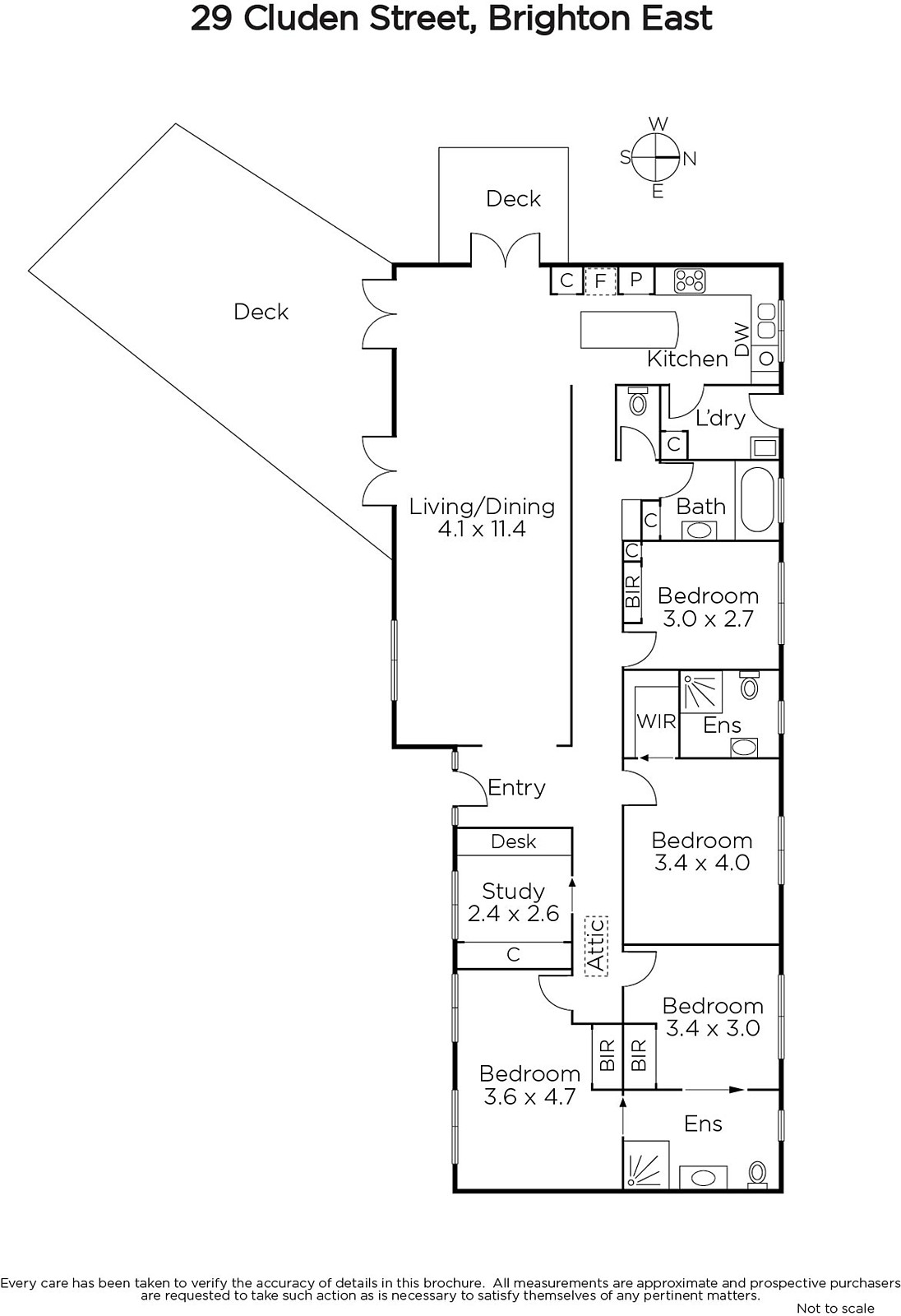 A private world of single-level living offers relaxed style close to the cafes, shops and supermarket that make Brighton's Bay Street so popular. Hidden away on a north-facing corner block of 561 square metres approx, the four-bedroom and study home makes the most of garden views from every main room. Appreciate the way you can open up the large living and dining zone to the walled garden and two decks, enhanced with a stackstone water feature. Three bedrooms have ensuite access, the study is perfect for working from home with a built-in desk and storage, and a pull-down ladder leads to roof storage space. Stone benches, a large Technika oven range and Asko dishwasher have enhanced the generous kitchen. Features include remote-control driveway gate, intercom entry, garden storage area, ducted heating and split-system air conditioner, timber floors, and contemporary grey render. Cluden Street is a short walk to Bay Street, it's in the Brighton Primary School zone, and you can walk to North Brighton railway station, Firbank and Brighton Grammar in minutes.