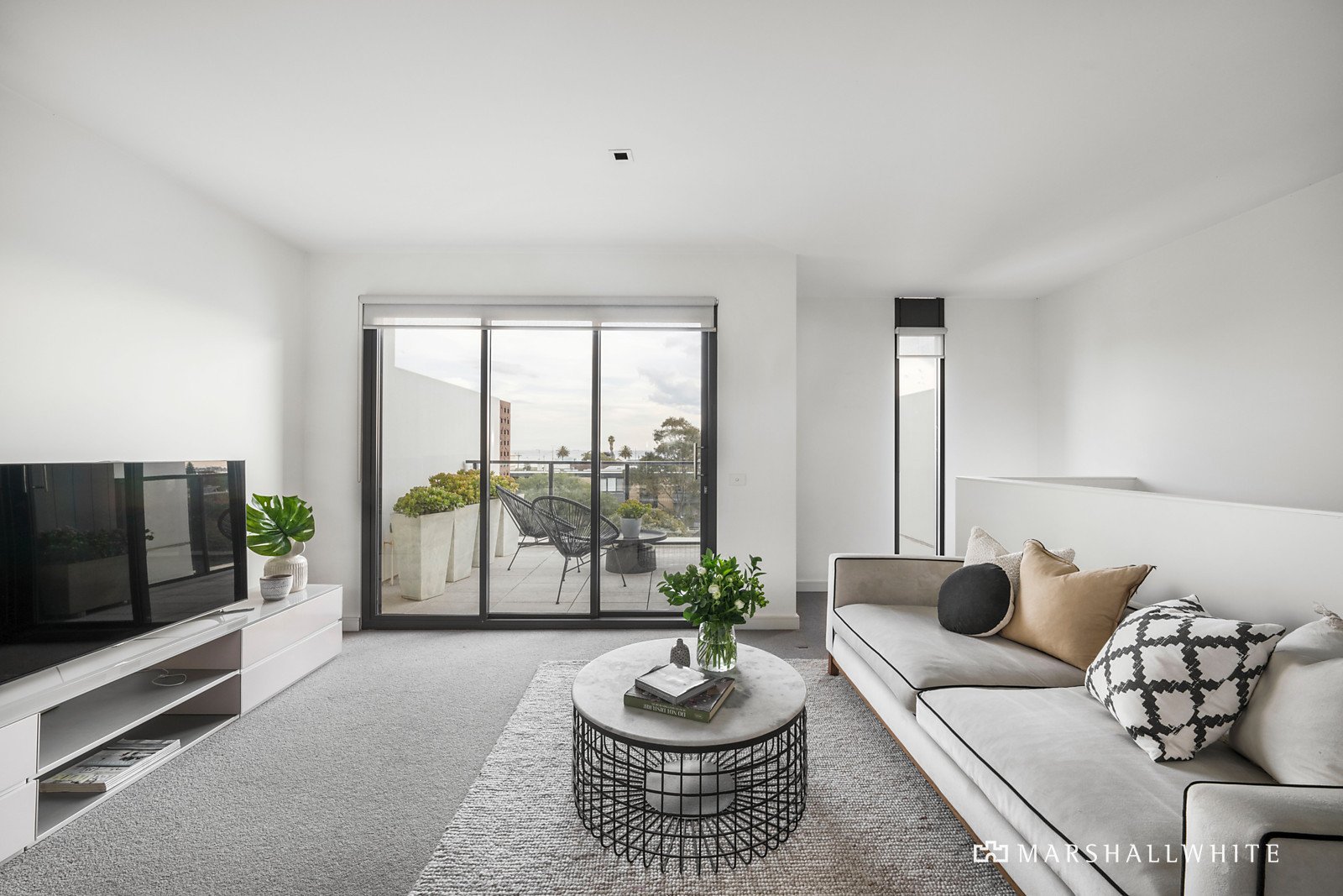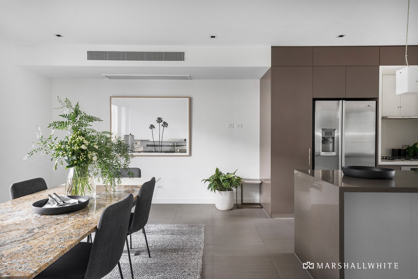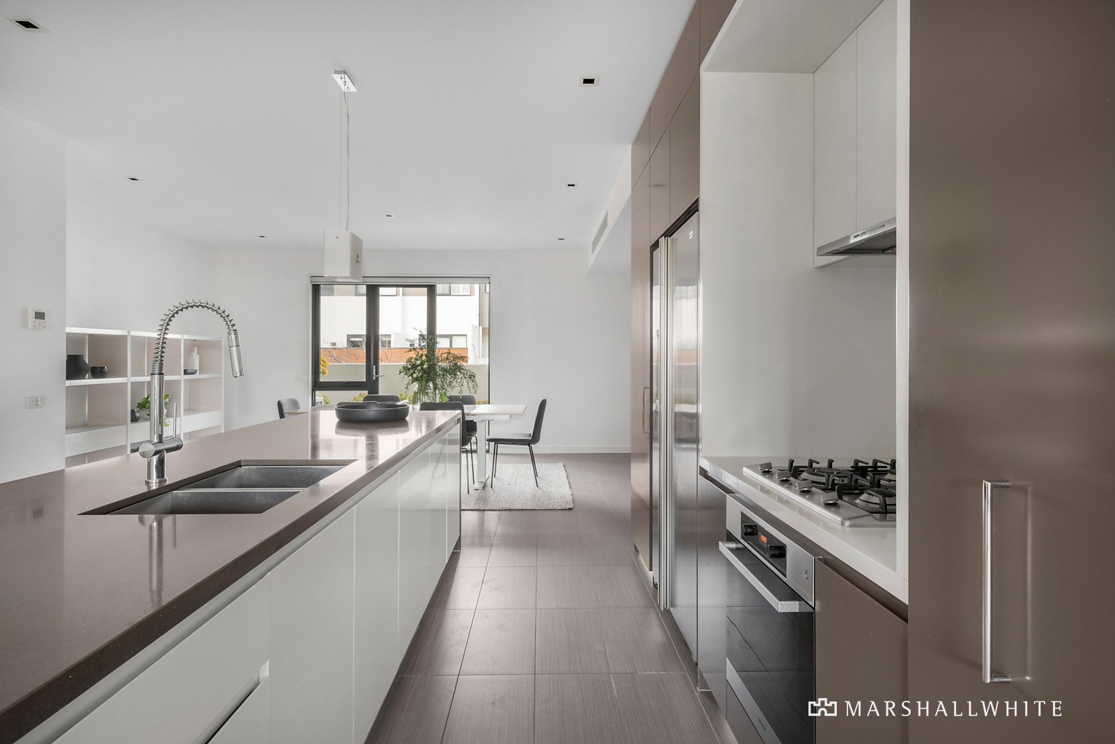 Superbly positioned within metres of the beach, this architect-designed town residence on the edge of Albert Park Village offers an executive lifestyle of peace, privacy and alfresco living over four generous levels. Stylish, light-filled living spaces offer privacy combined with practicality with exceptional bay views offering an elite backdrop to relaxed entertaining on the top floor terrace.