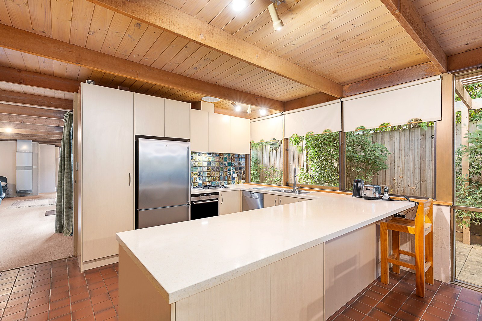Oriented around a central north-facing courtyard to maximize year round light, the exceptionally spacious sitting room with open fire and formal dining room feature timber lined and raftered ceilings and bagged solid brick walls. An equally generous living and dining room with a stylishly refurbished gourmet kitchen boasting stone benches and Miele/Siemens appliances opens to the private northeast leafy garden with large covered terrace. Intelligently zoned accommodation positions the main bedroom with en suite and built in robe and a home office or 4th bedroom at the front of the house while a separate children's wing comprises two additional bedrooms with built in robes and bathroom.