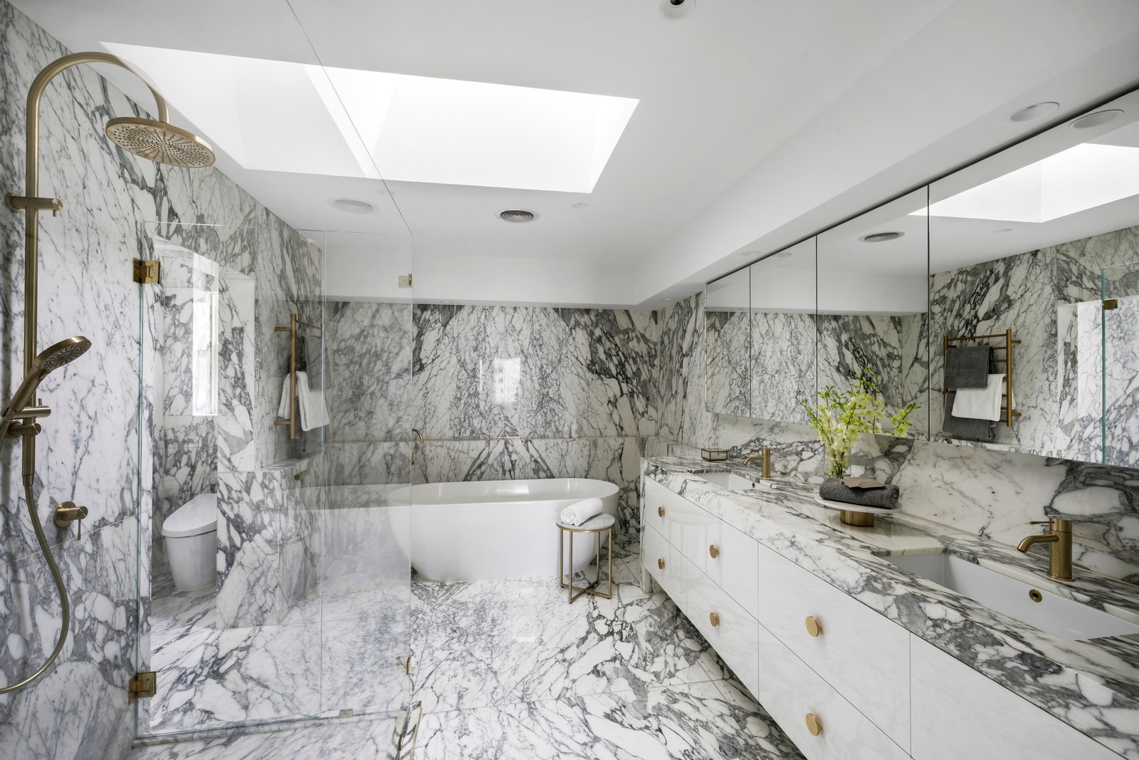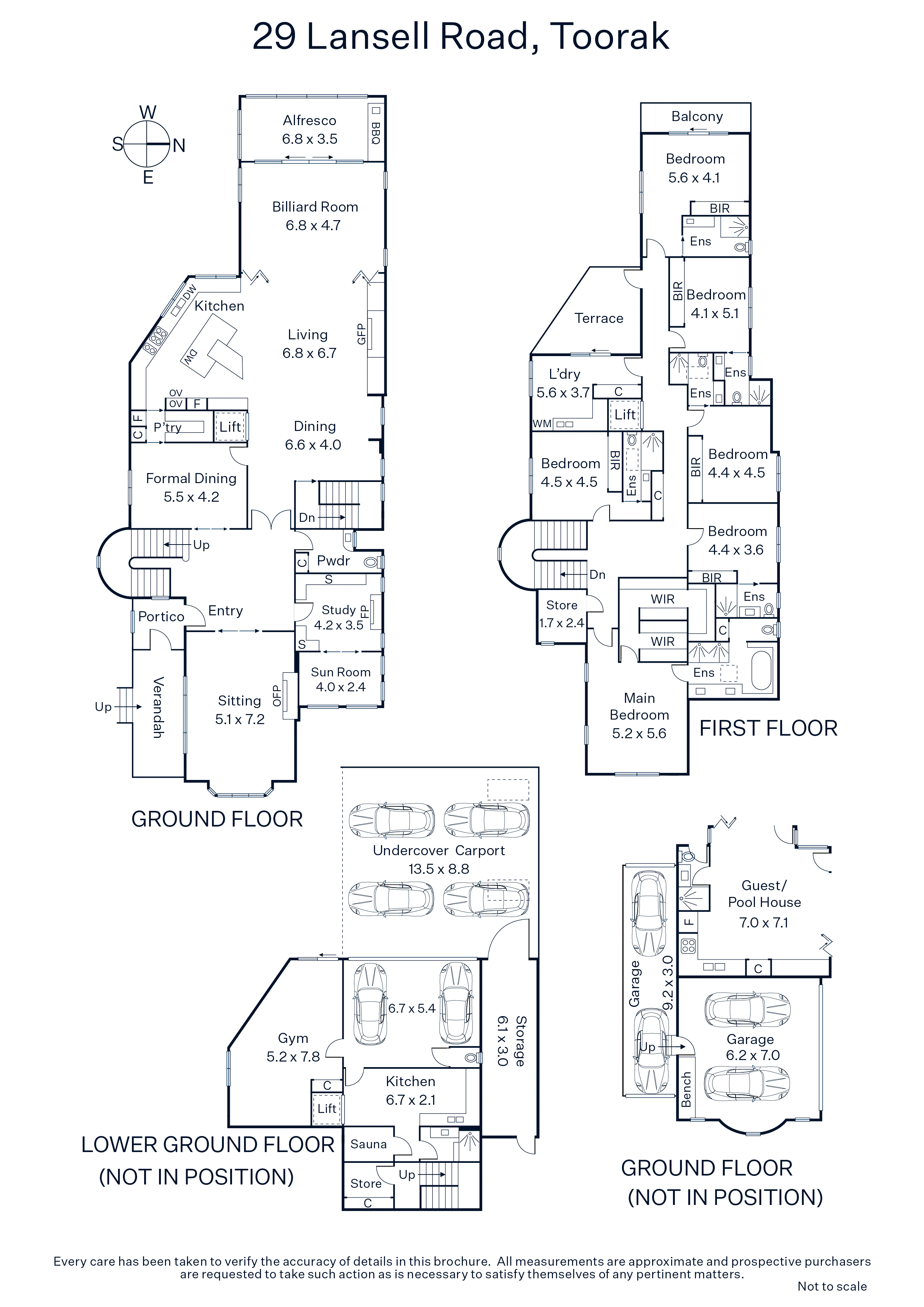 A grand staircase ascends to six bathrooms and six generously sized bedrooms, all with their own en-suites, including a luxurious main bedroom suite with a lavish Arabescato marble bathroom and fitted dressing room. Modern infrastructure underscores its capacity for family living, featuring an internal lift, powder room, gym, sauna, and kitchenette that cater to casual al-fresco dining. Prestigiously positioned within moments of Heyington Station, trams and Melbourne’s leading schools and within moments of Kooyong Lawn Tennis Club and M1 access, it offers peerless amenity in one of Toorak’s most revered settings. Comprehensively appointed with ducted reverse-cycle air conditioning, gas fireplace, comprehensive security, garden irrigation, abundant storage, garages/workshops and sheds, plus ample vehicle accommodation beyond dual automated gates, with two double garages plus broad undercover parking for six.